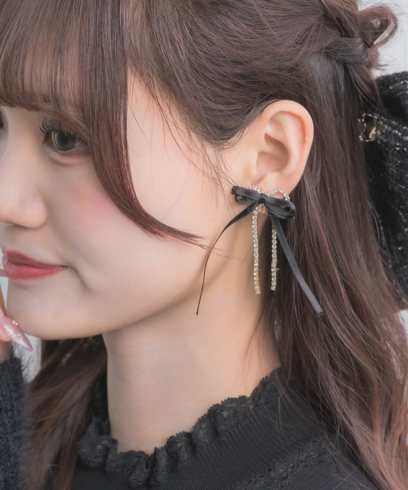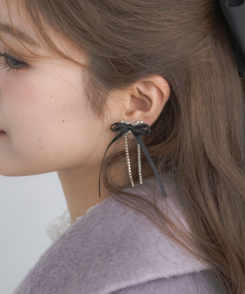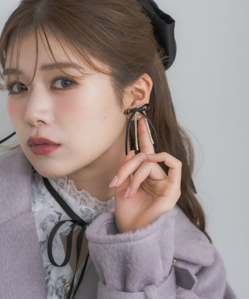 しなやかなロングデザインで、スタイリッシュな印象も引き立てるリボンイヤリングのお目見えです。動く度に揺れる華奢なチェーンが顔回りを華やかにしてレディライクな雰囲気を演出してくれます。 ※照明の関係で実際のお色味と若干異なる場合がございます。 ※表示のサイズ感と実物は若干異なる場合がございますので、予めご了承ください。