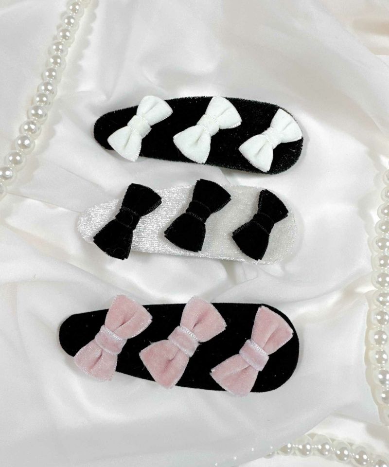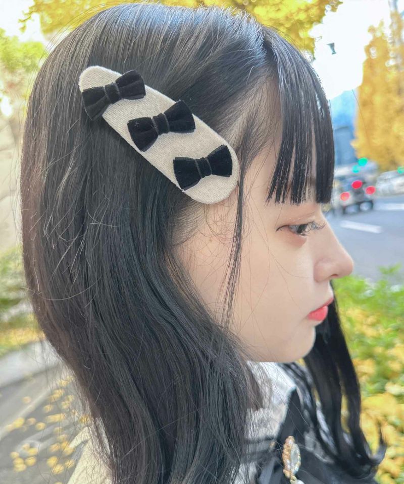 ベロア調で大人可愛いヘアピンのお目見えです。ヘアスタイル関係なく着用いただけ、簡単に装着できるのでデイリーユースに重宝すること間違いなし◎配色のリボンがアクセントになって、上品な印象を添えてくれます。