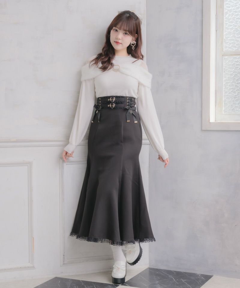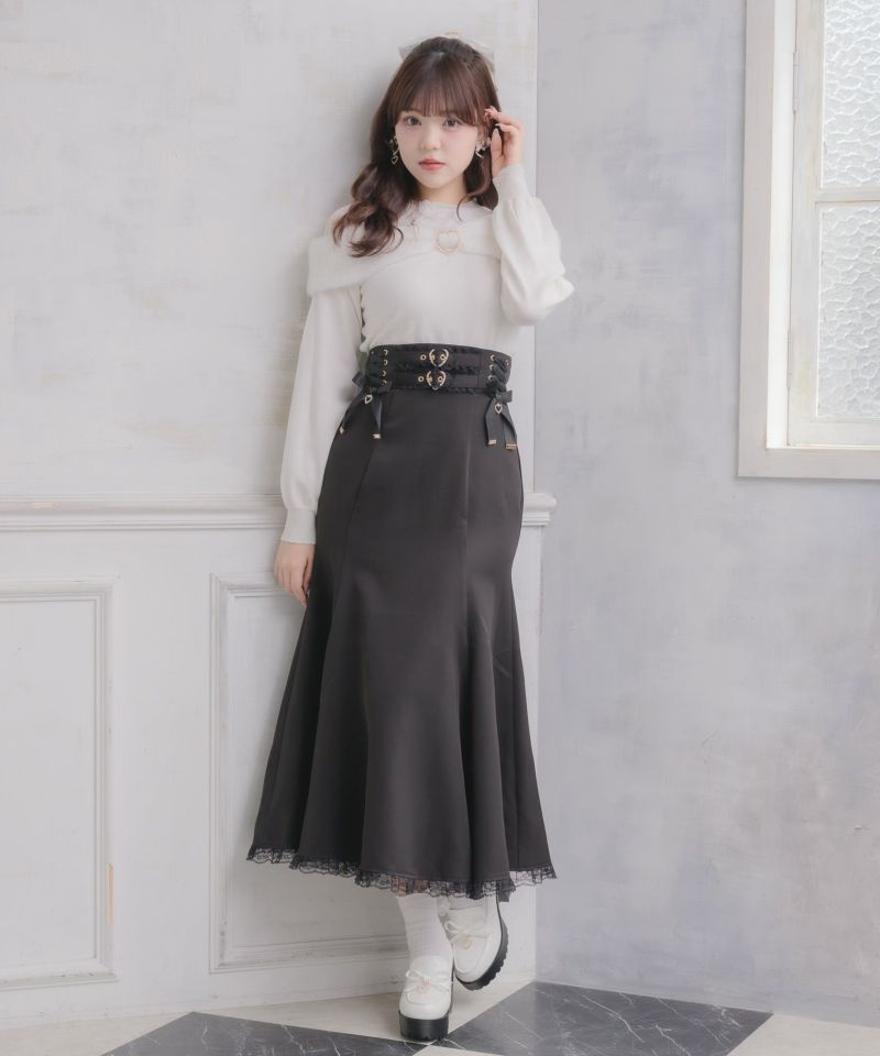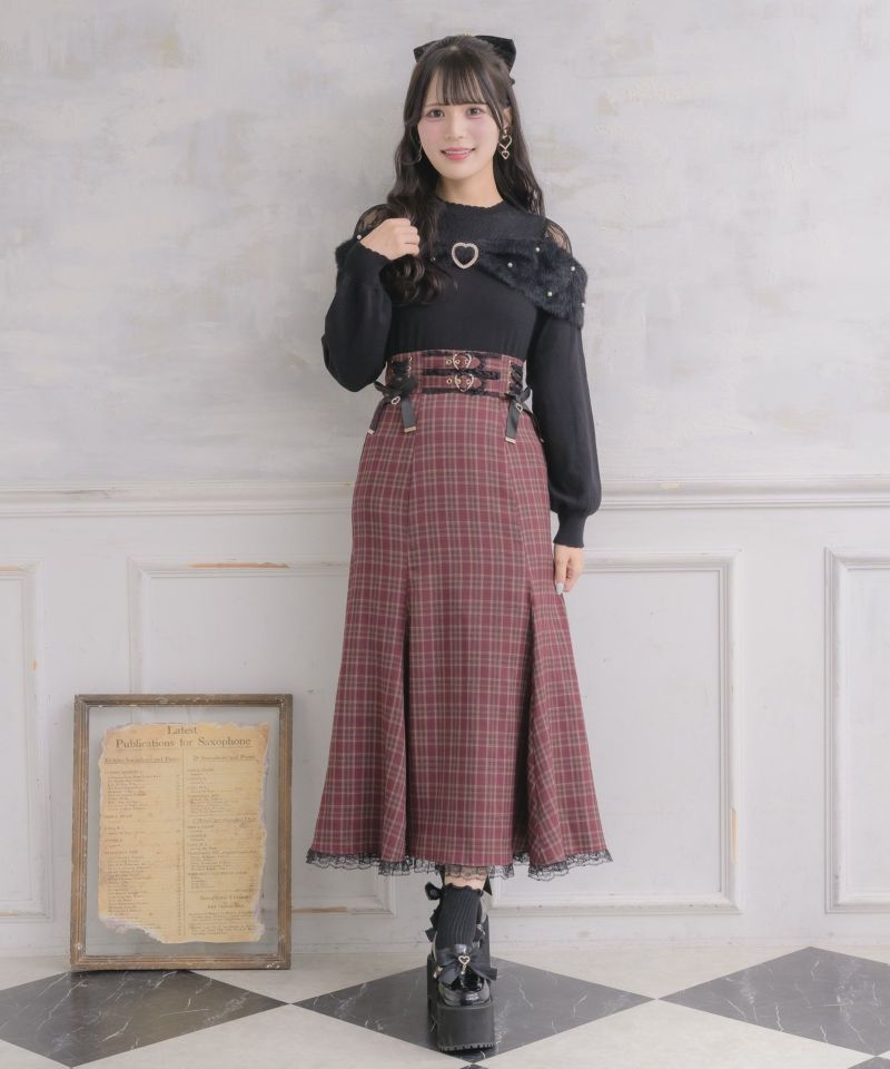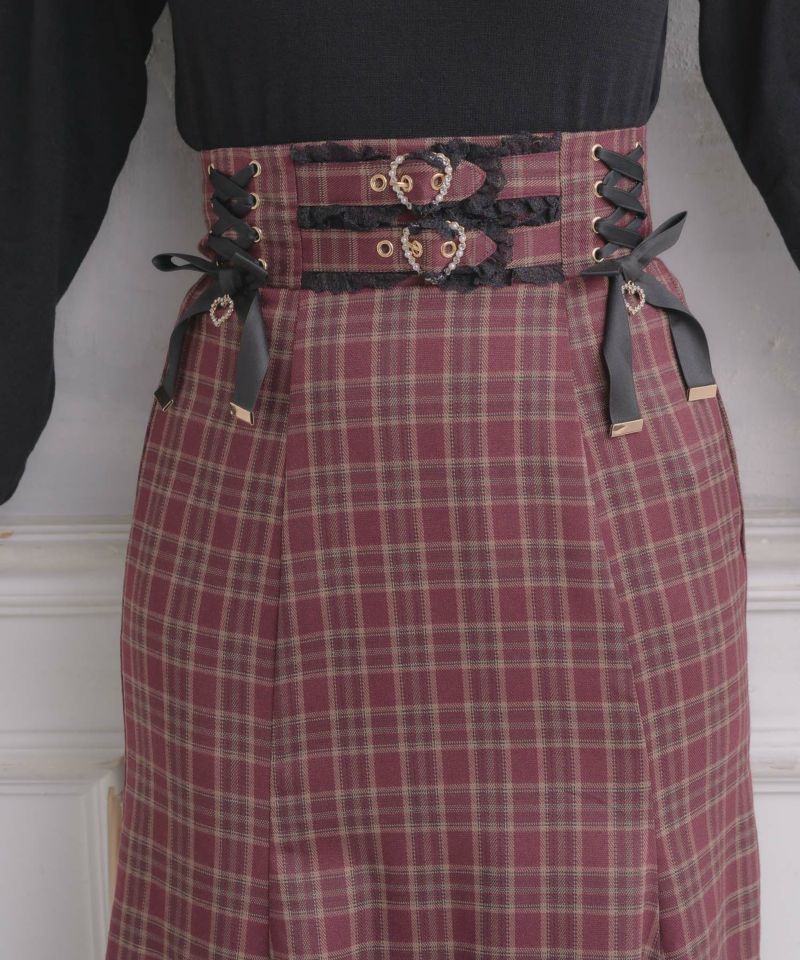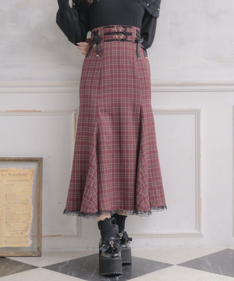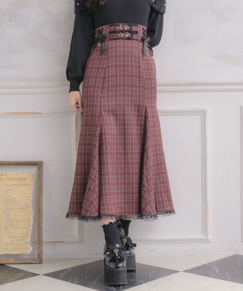 高めのウエスト位置とすっきりとしたマーメイドシルエットで、スタイルアップも叶える優秀アイテム◎トップスをINすればレースアップが主役に♡ブラック・グレーは無地仕様で上品な印象に、ボルドーはチェック柄で秋冬らしいクラシカルな可愛さを演出。 ※照明の関係で実際のお色味と若干異なる場合がございます。 ※表示のサイズ感と実物は若干異なる場合がございますので、予めご了承ください。 モデル身長ブラック163cm/グレー・ボルドー162cm