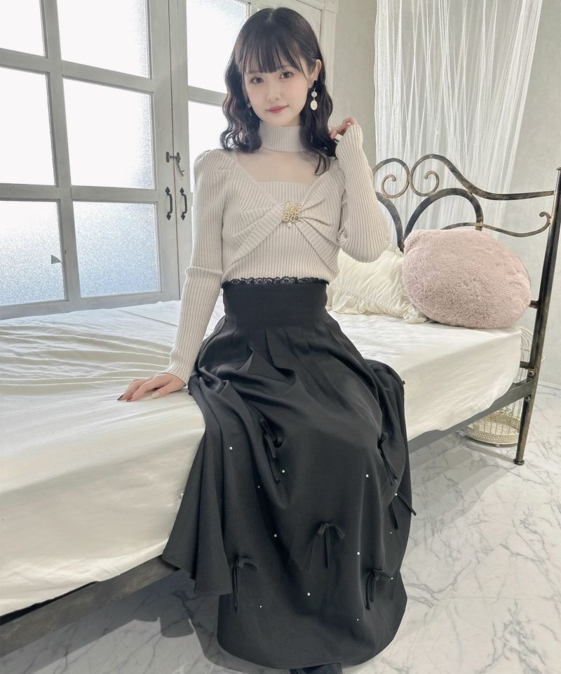 裾にかけて躍動感のあるフレアシルエットに、あしらったリボンとパールがトレンド感をプラス。シャープなウエストライン、高級感のあるディテール、秋冬らしい配色がお上品な印象をアップデートしてくれます◎バックウエストにあしらったゴムで着心地もフォロー。 ※照明の関係で実際のお色味と若干異なる場合がございます。 ※表示のサイズ感と実物は若干異なる場合がございますので、予めご了承ください。 モデル身長:160cm
