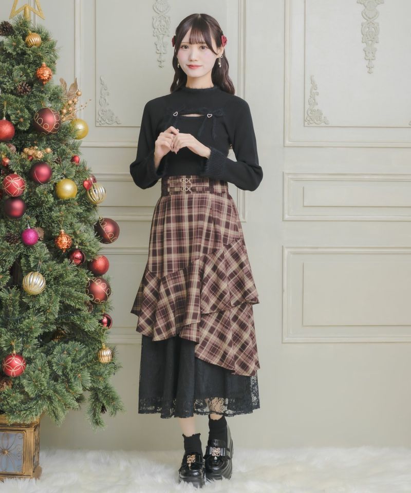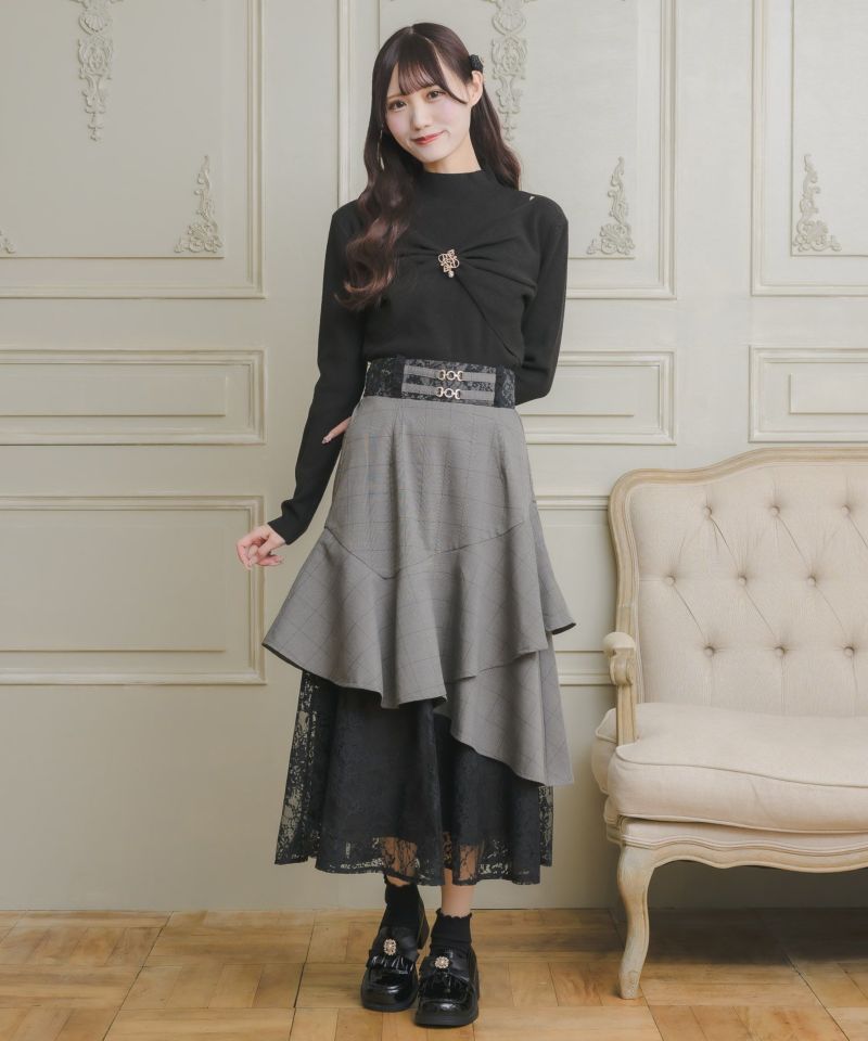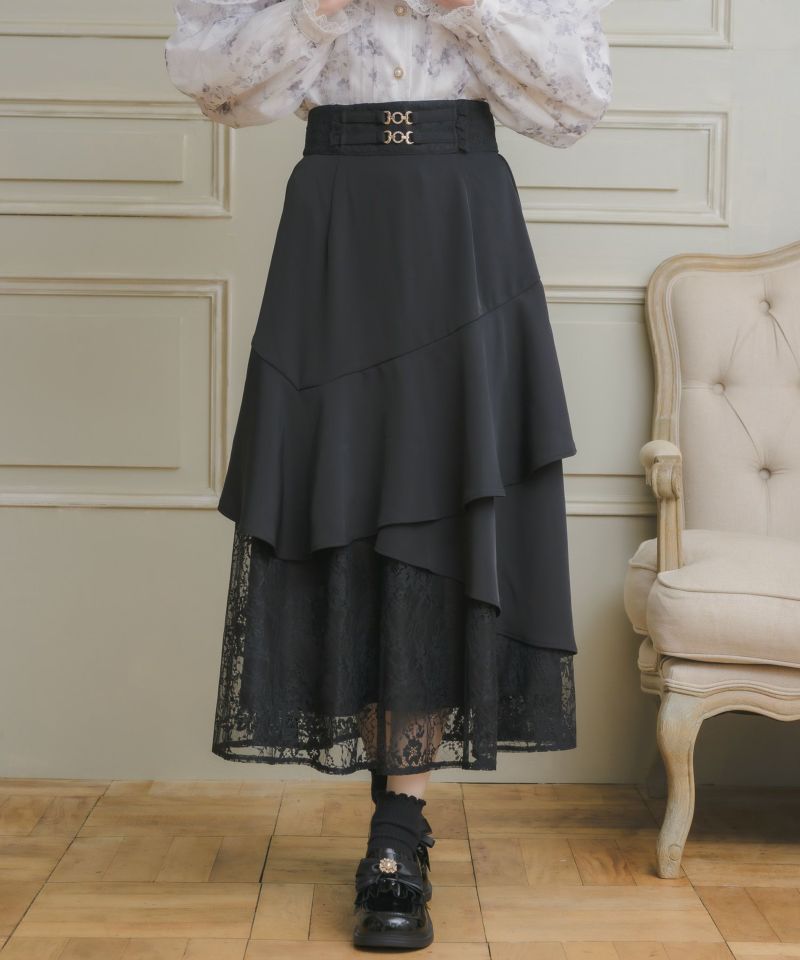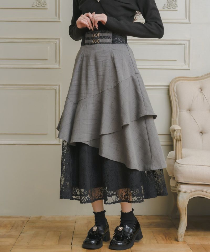 人気アイテムを冬仕様にブラッシュアップ♡モードなアシンメトリーデザインがトレンドライクなロングスカート。ティアードでボリュームのあるシルエットを作り上げ、綺麗なドレープの落ち感が品のある印象を与えます。ウエストマークでメリハリをON◎