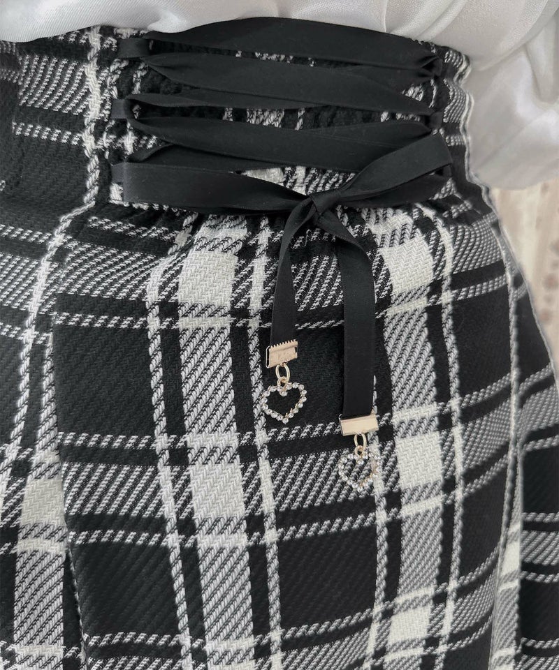 後ろ姿にきゅん♡レースアップリボンに付けたハートチャームがレディなムードをプラス◎ふわっとしたシルエットを作るボックスタックデザインが、よりドラマティックにアップデートしてくれます。ウエストをシェイプしてくれるハイウエストなので着膨れせず、脚長効果が◎ ※照明の関係で実際のお色味と若干異なる場合がございます。 ※表示のサイズ感と実物は若干異なる場合がございますので、予めご了承ください。 モデル身長:162cm