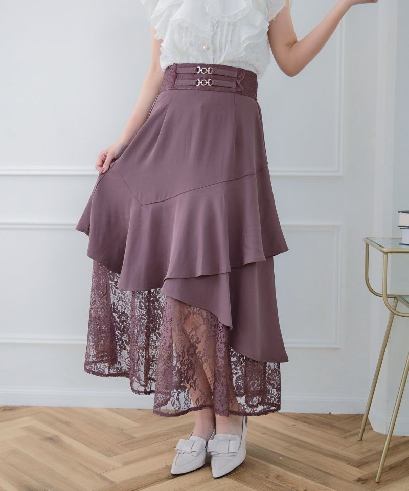モードなアシンメトリーデザインがトレンドライクなロングスカート。ティアードでボリュームのあるシルエットを作り上げ、綺麗なドレープの落ち感が品のある印象を与えます。ウエストマークでメリハリをON◎ ※照明の関係で実際のお色味と若干異なる場合がございます。 ※表示のサイズ感と実物は若干異なる場合がございますので、予めご了承ください。 モデル身長:160cm