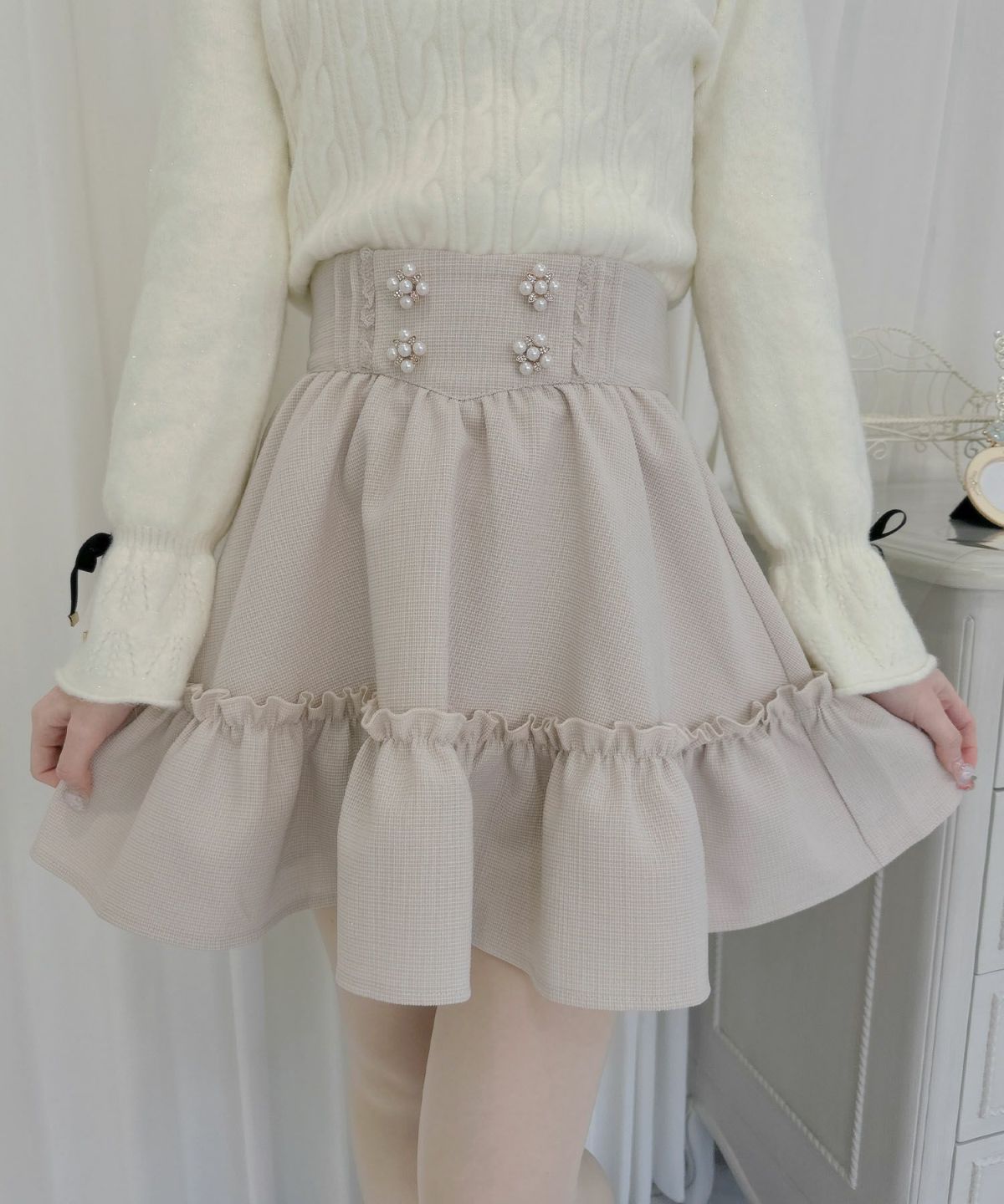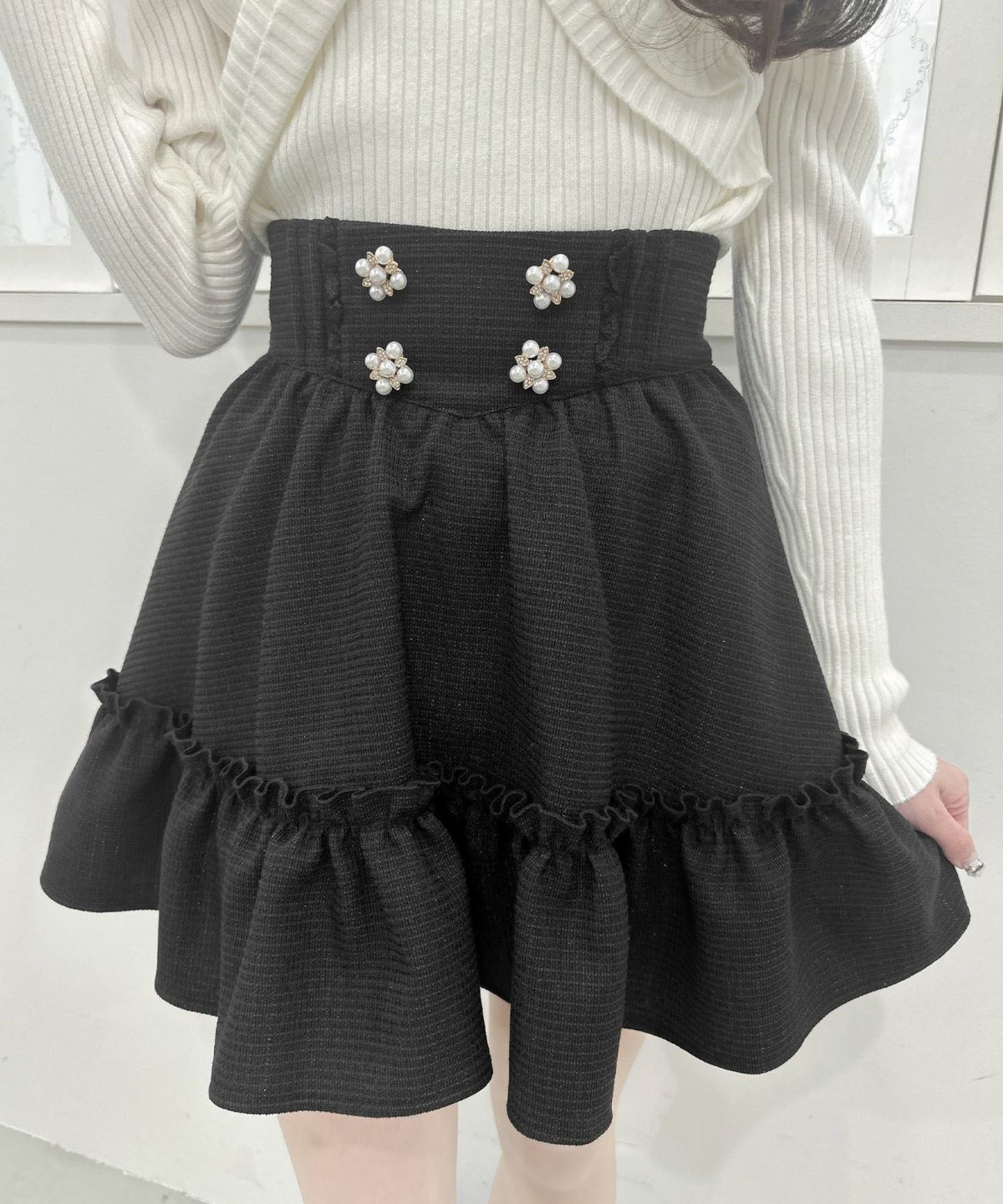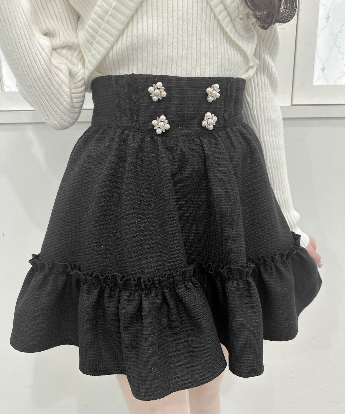 裾ボリュームフラワー釦スカート