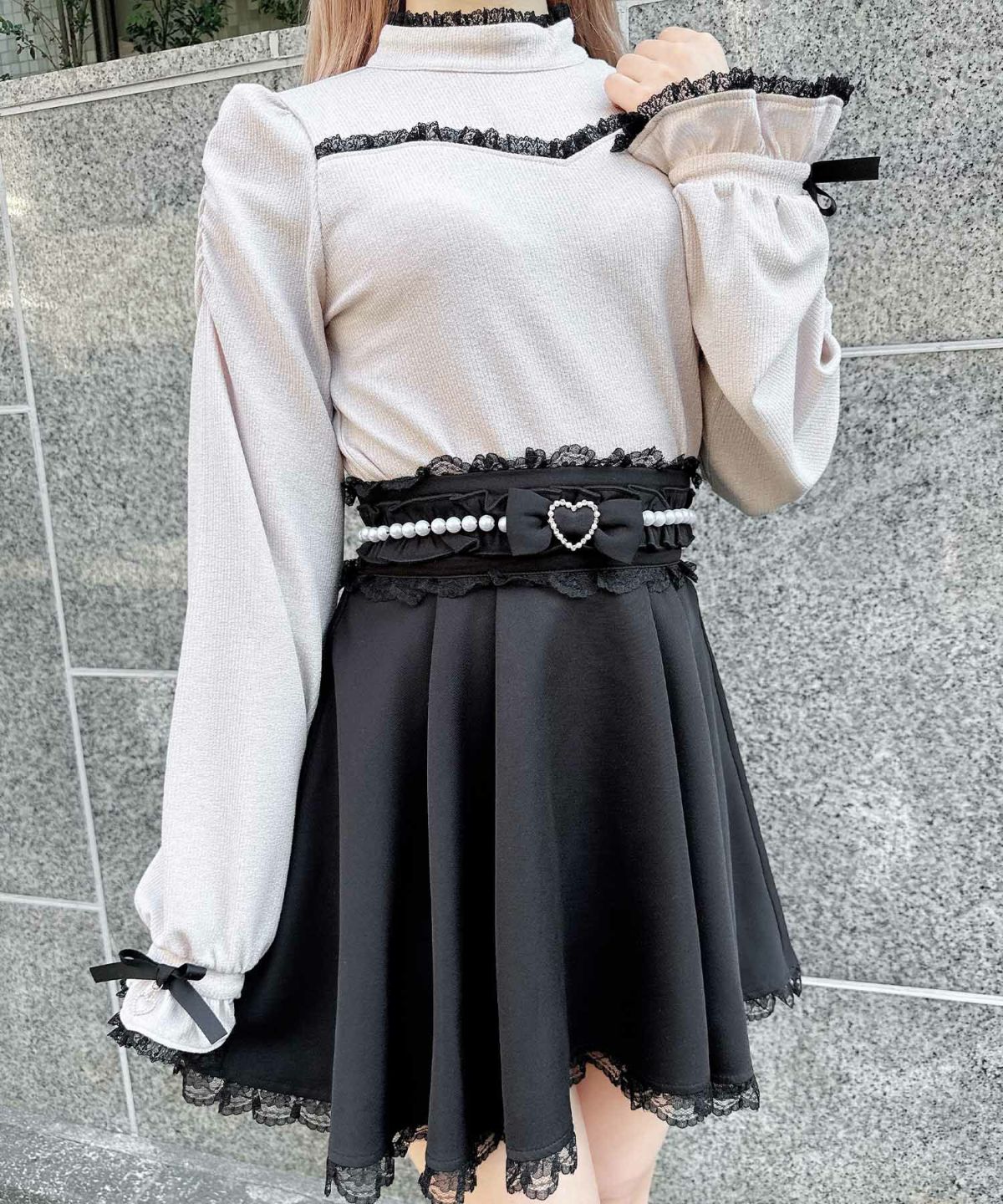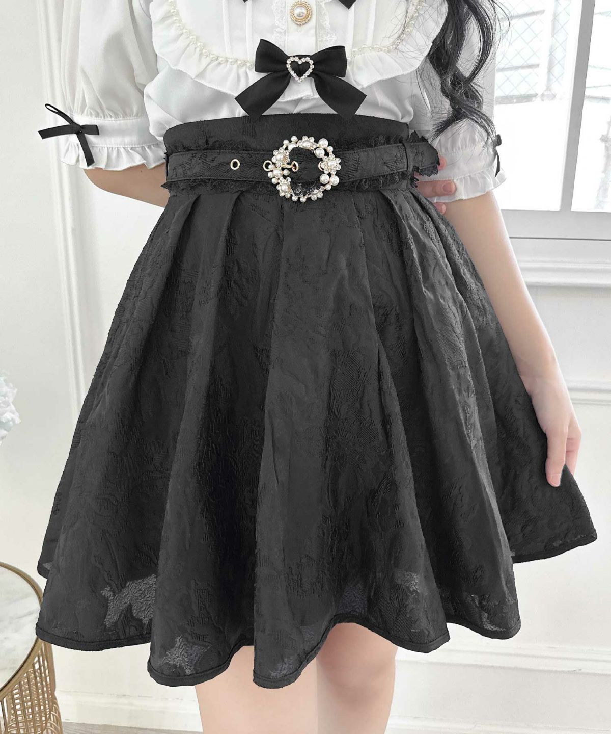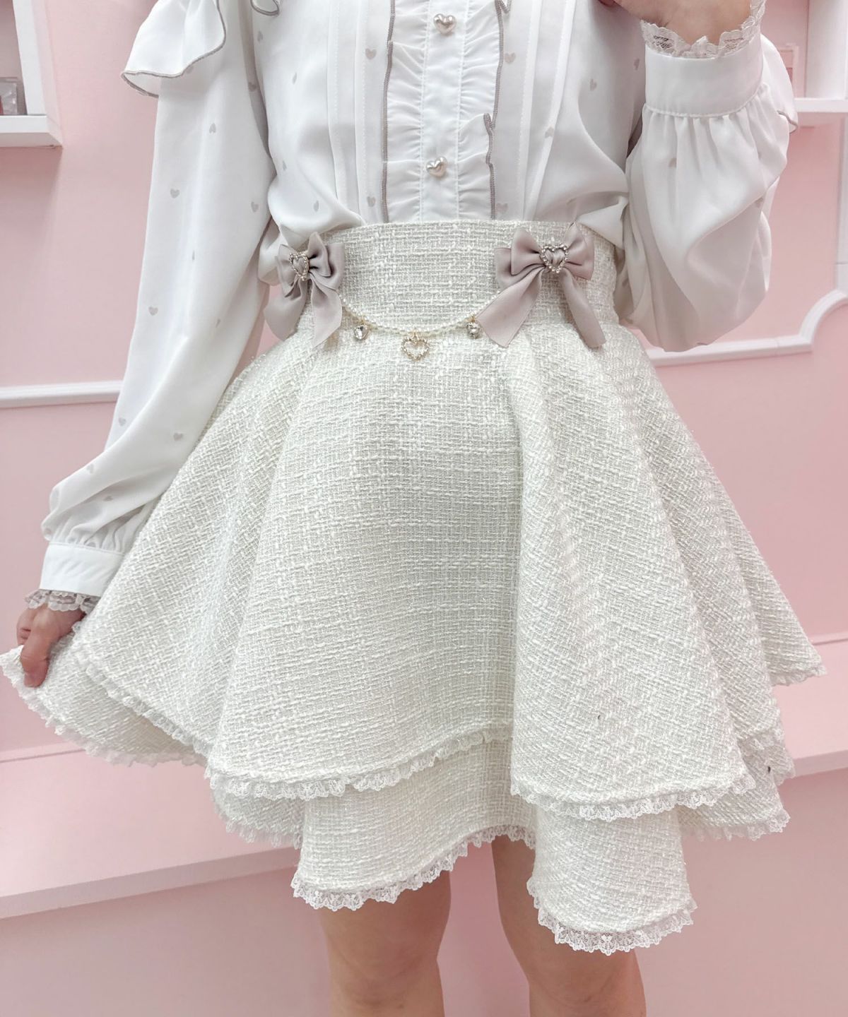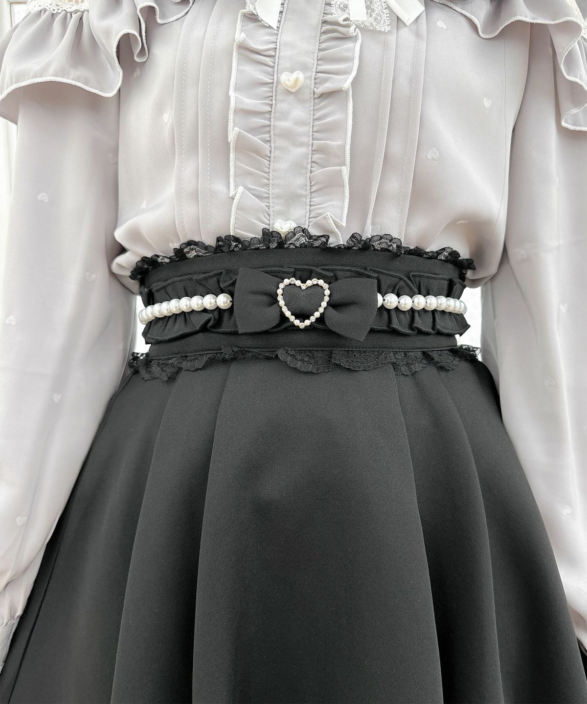 ハートバックルビジューダブルフレアスカート