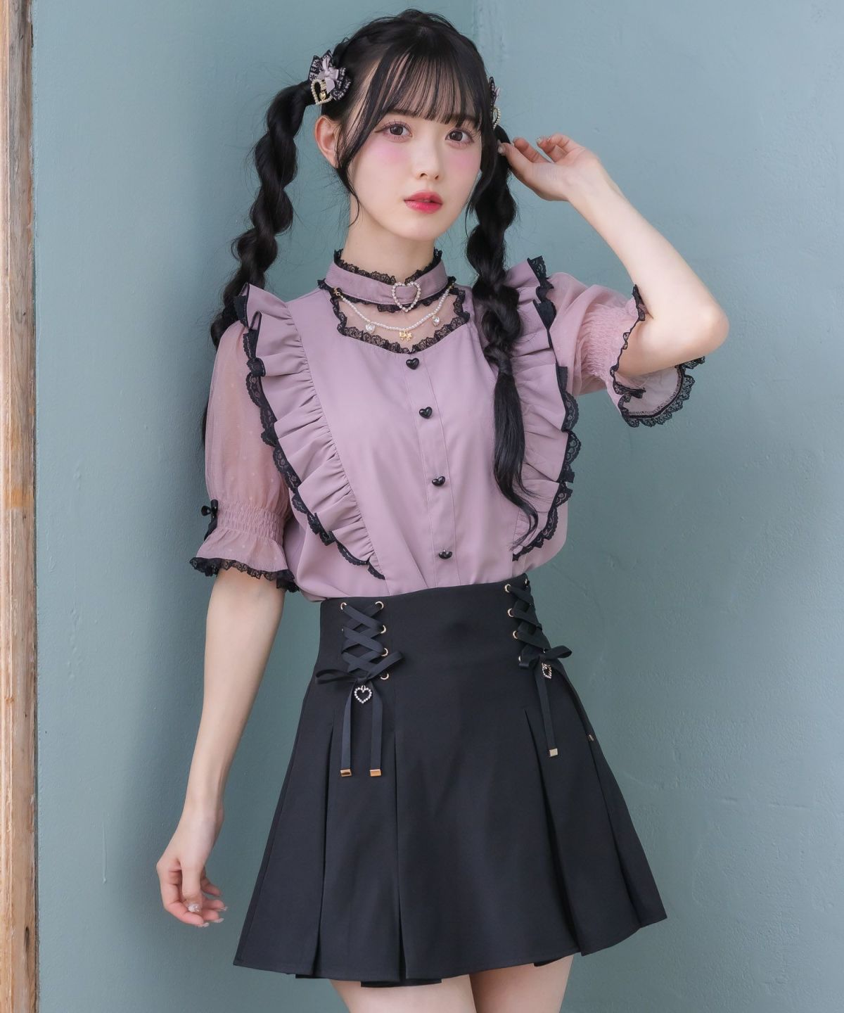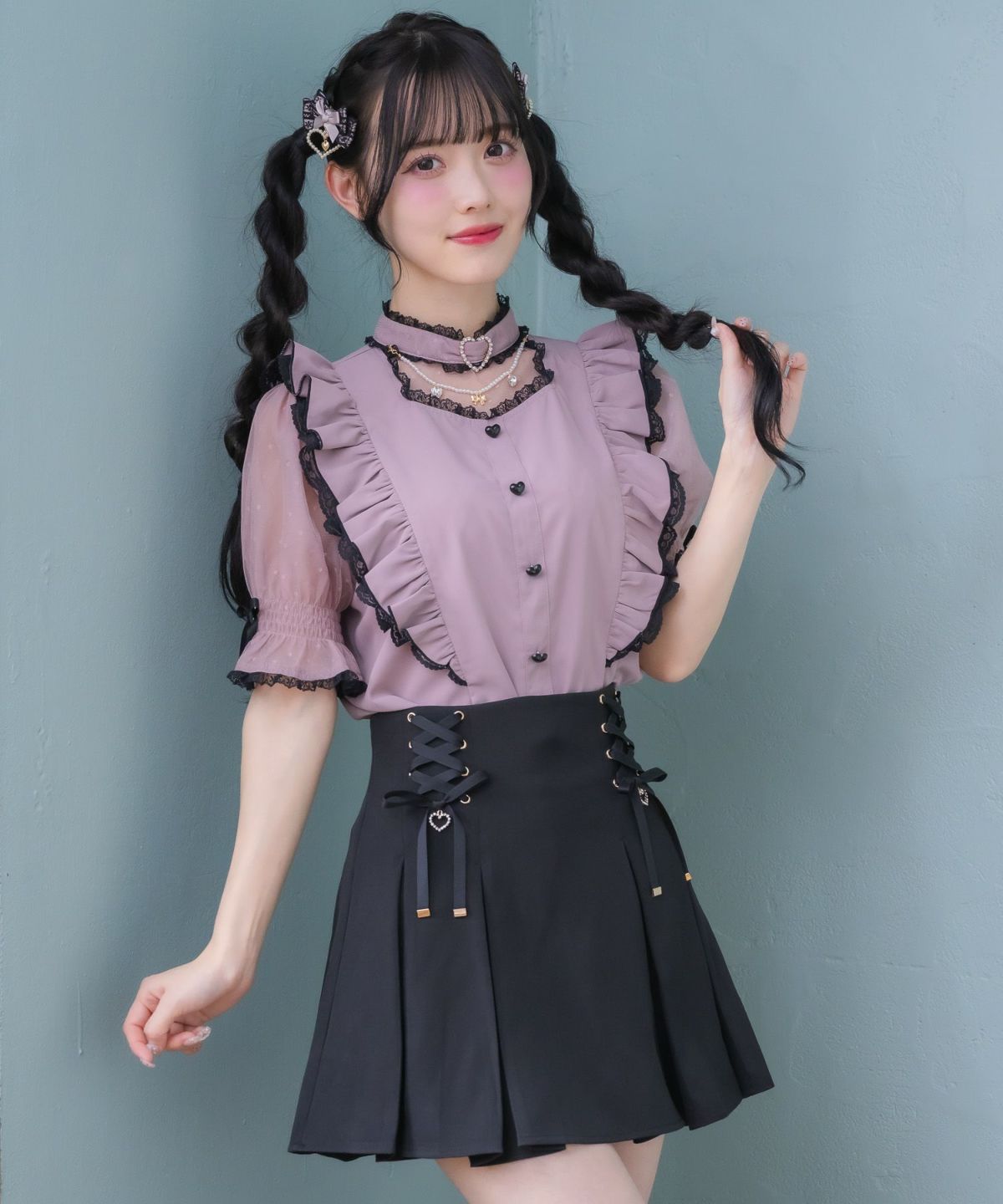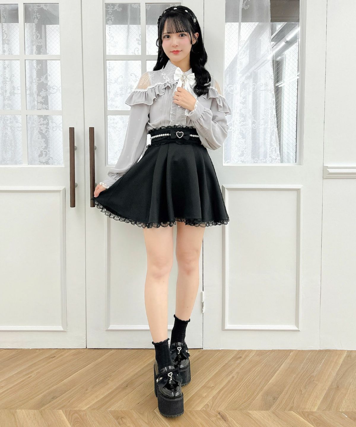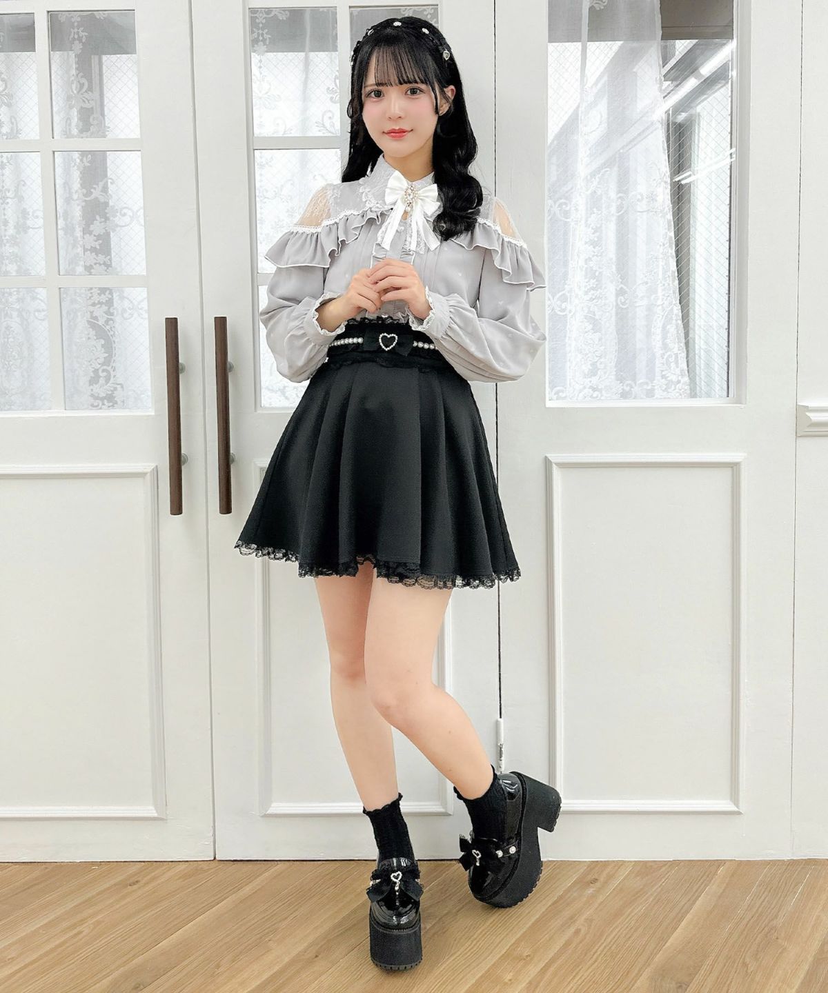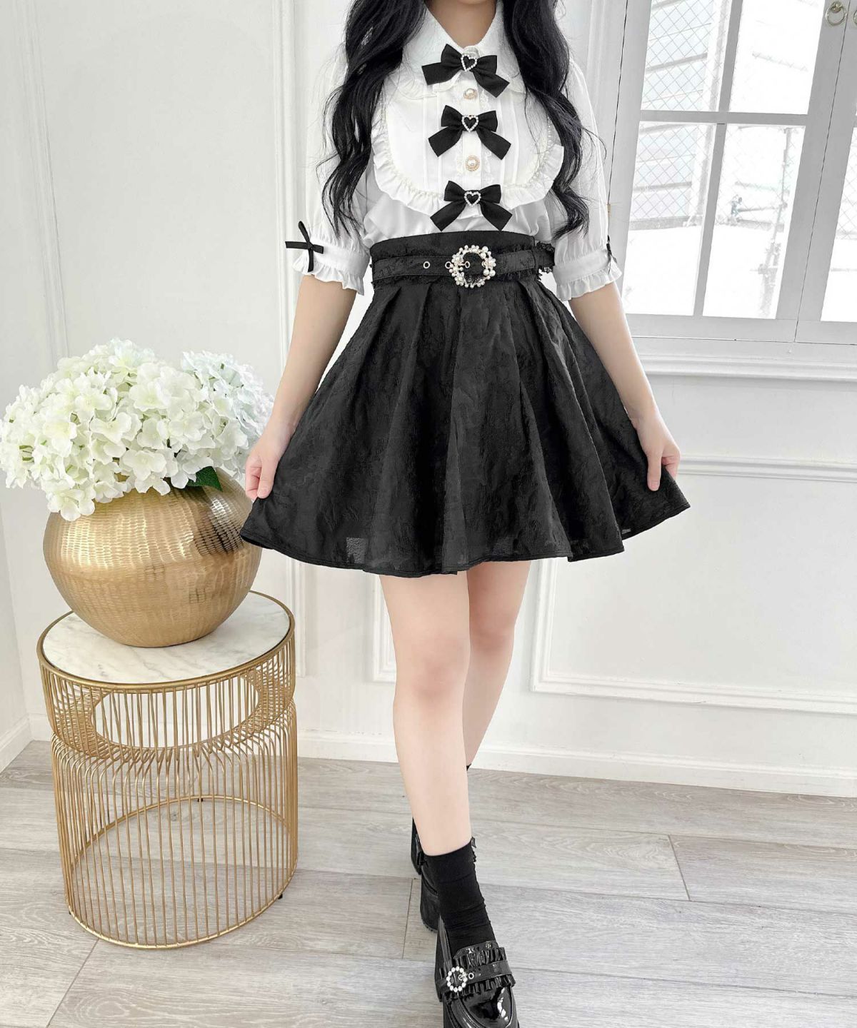 ハートバックルビジューダブルフレアスカート