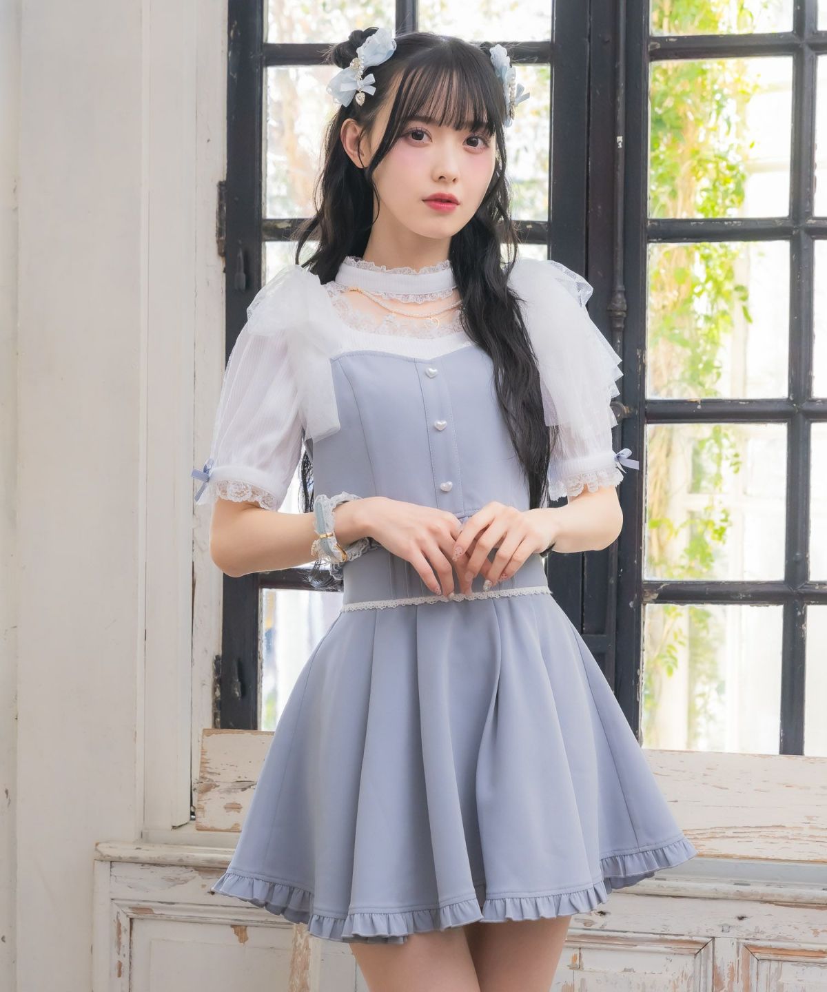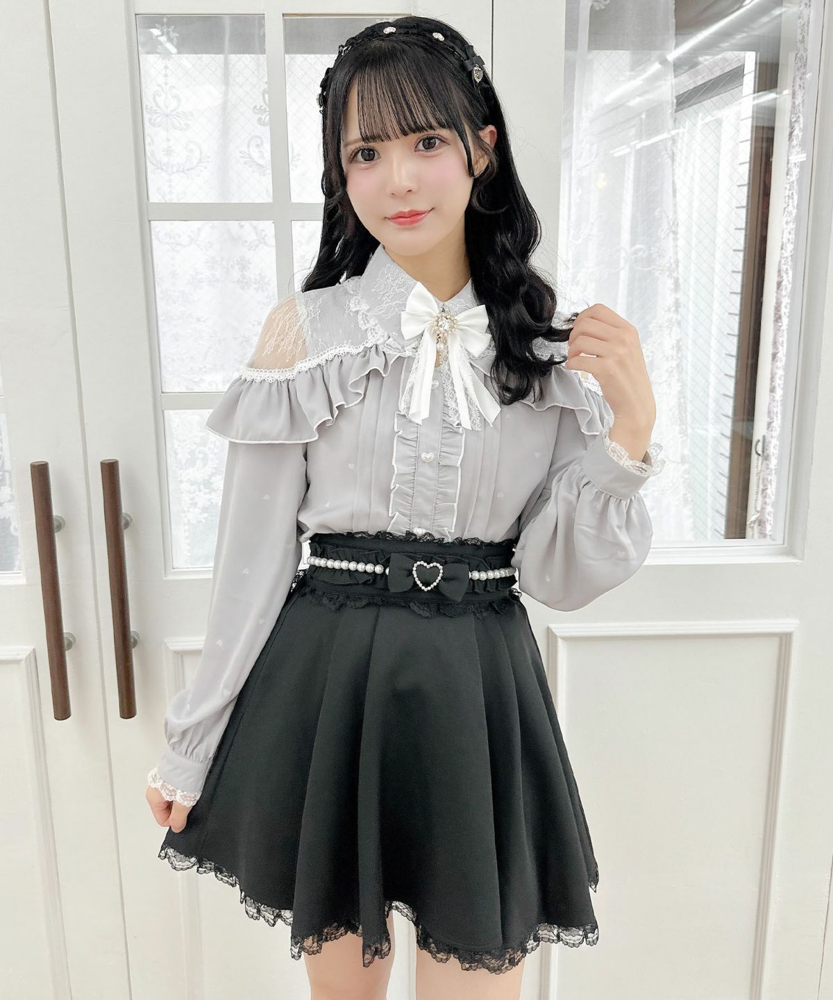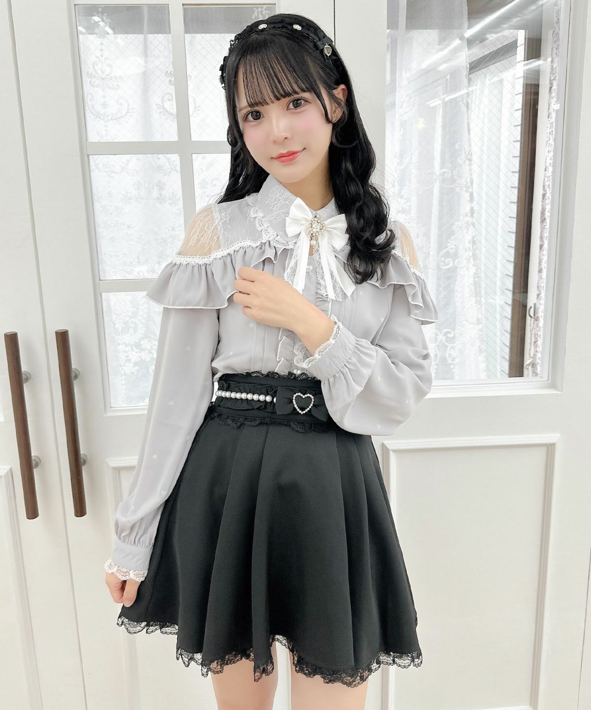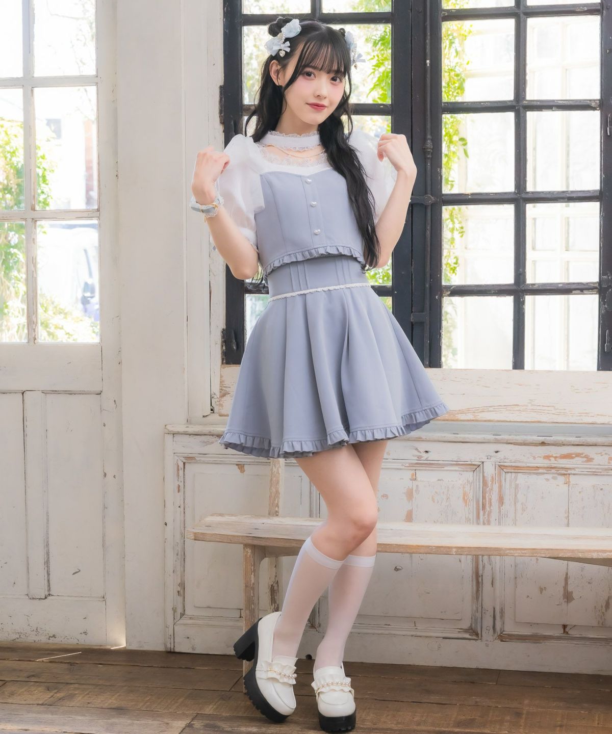 ハートバックルビジューダブルフレアスカート
