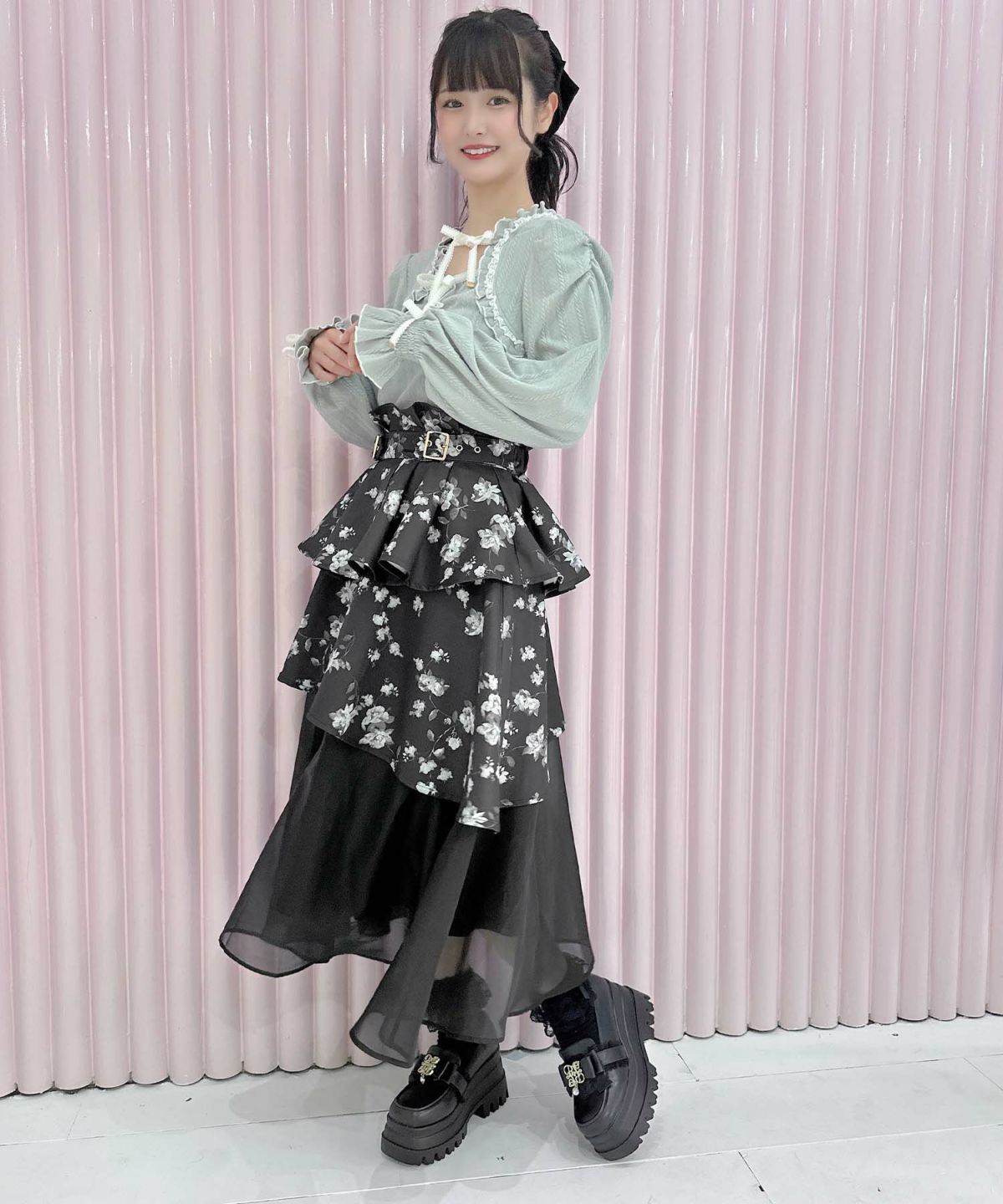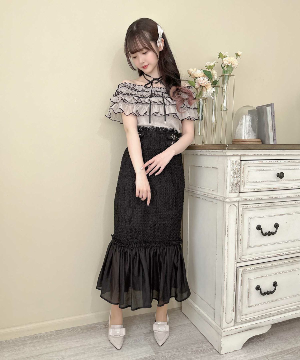 ランダムリボンラッフルティアードスカート