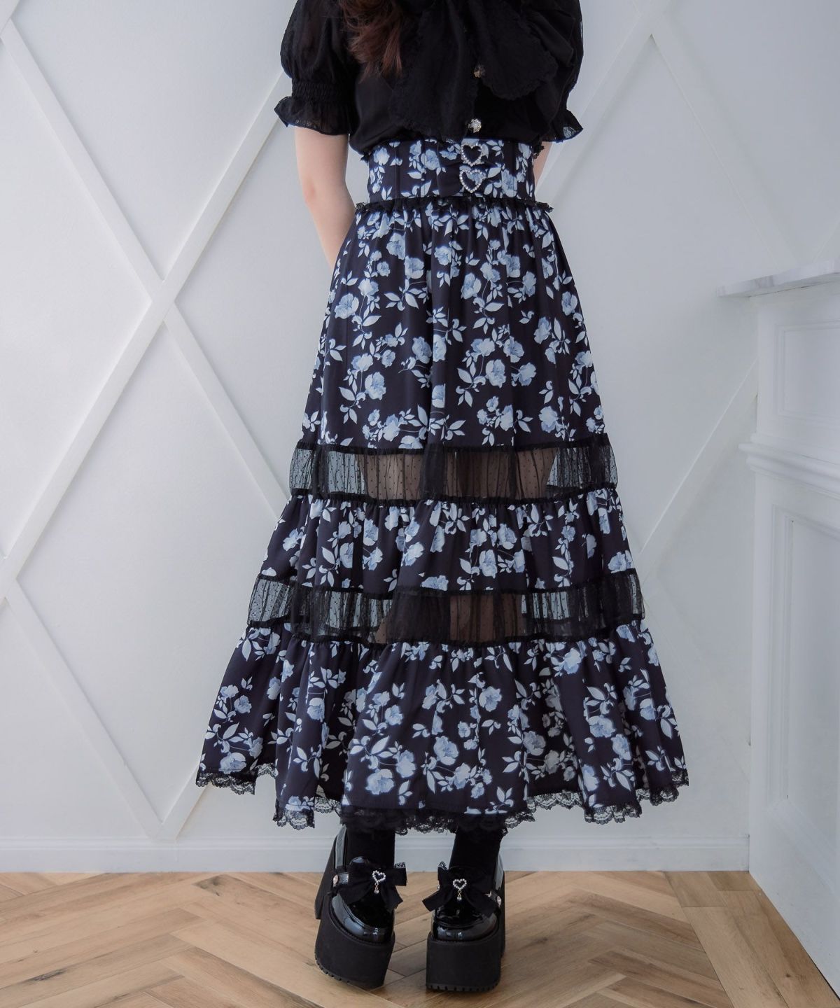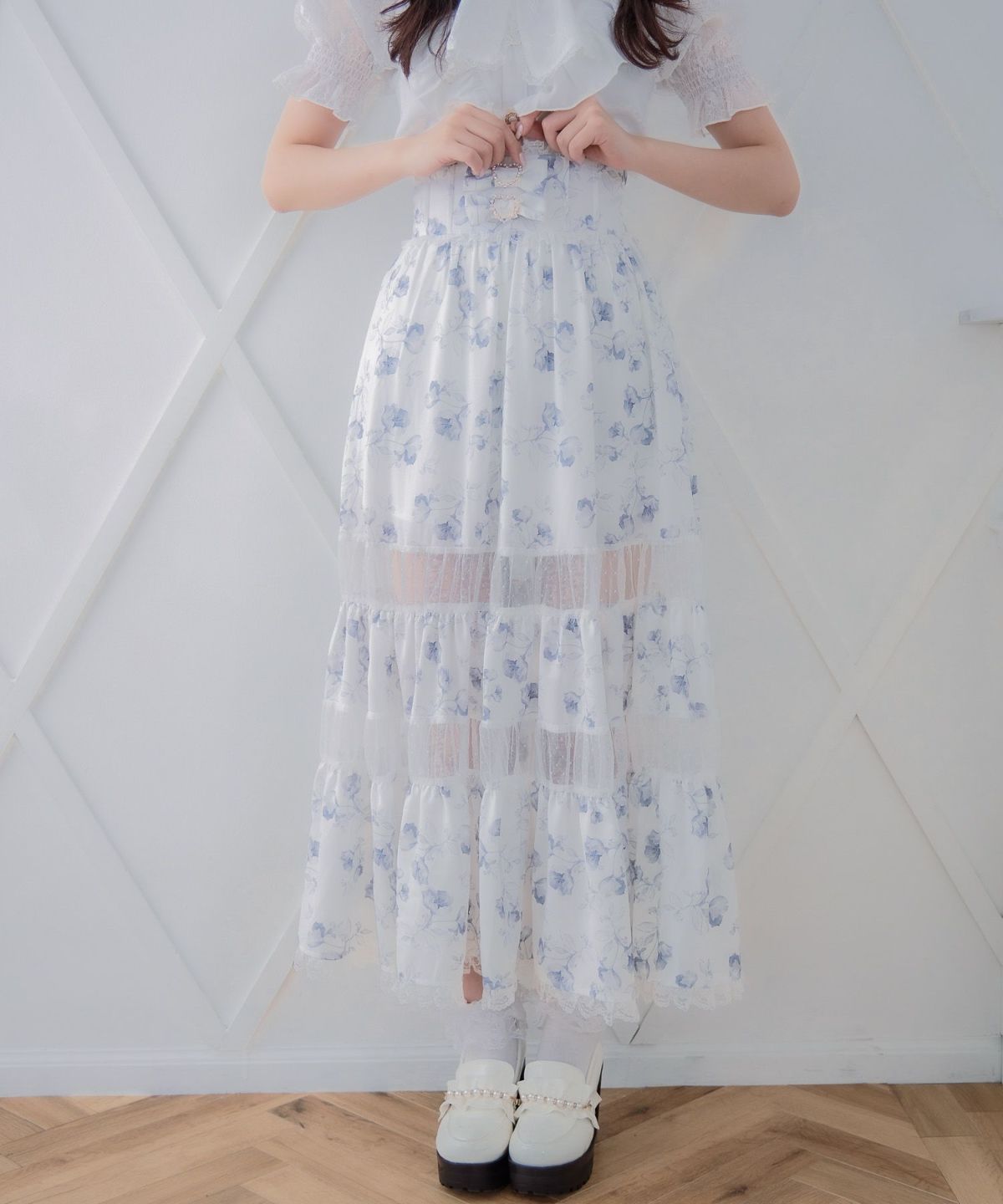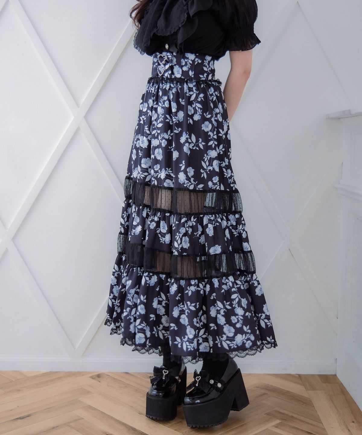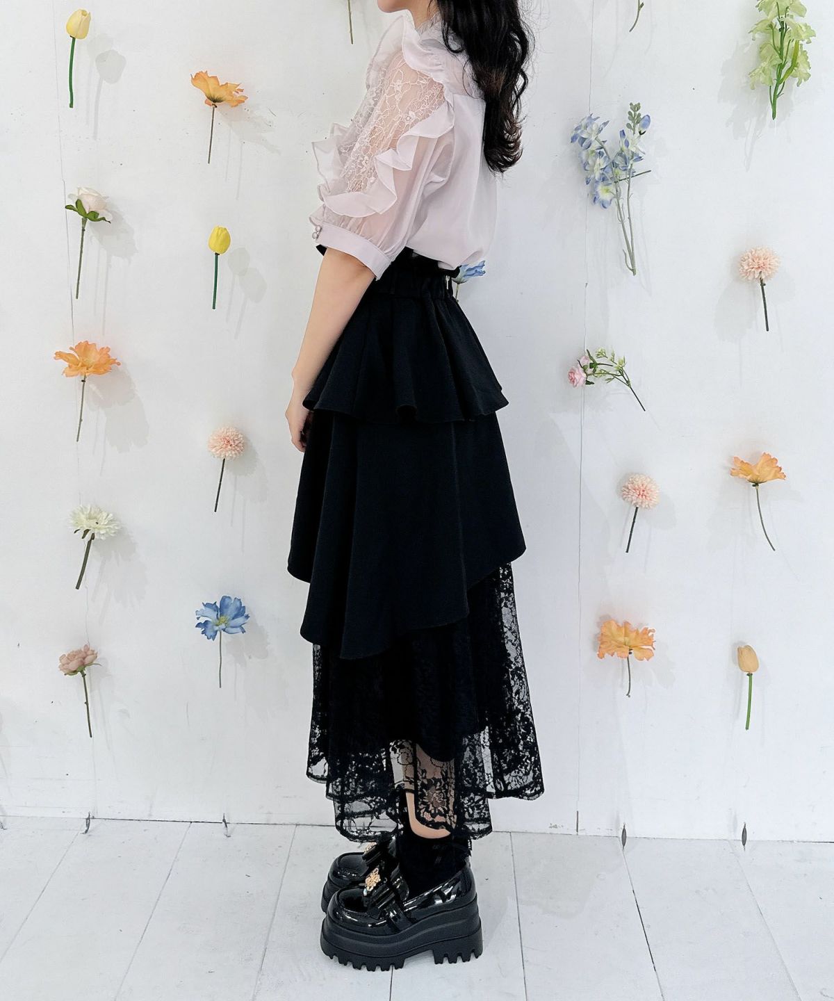 レースティアードロングスカート