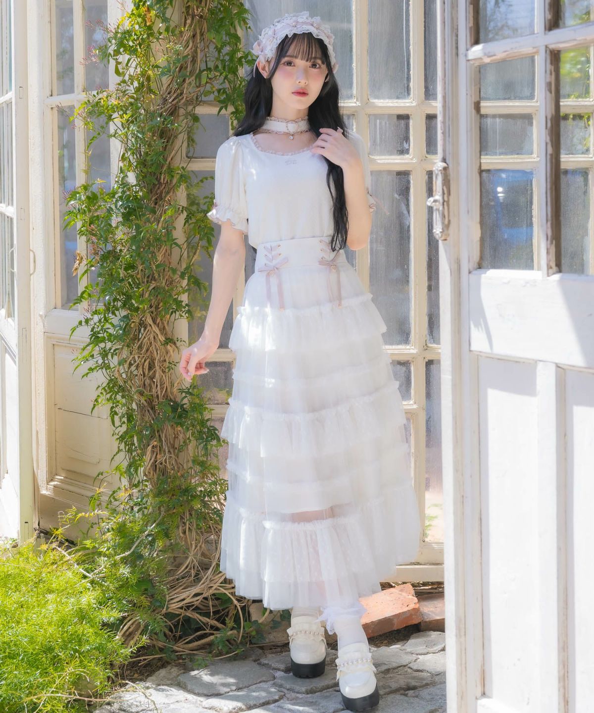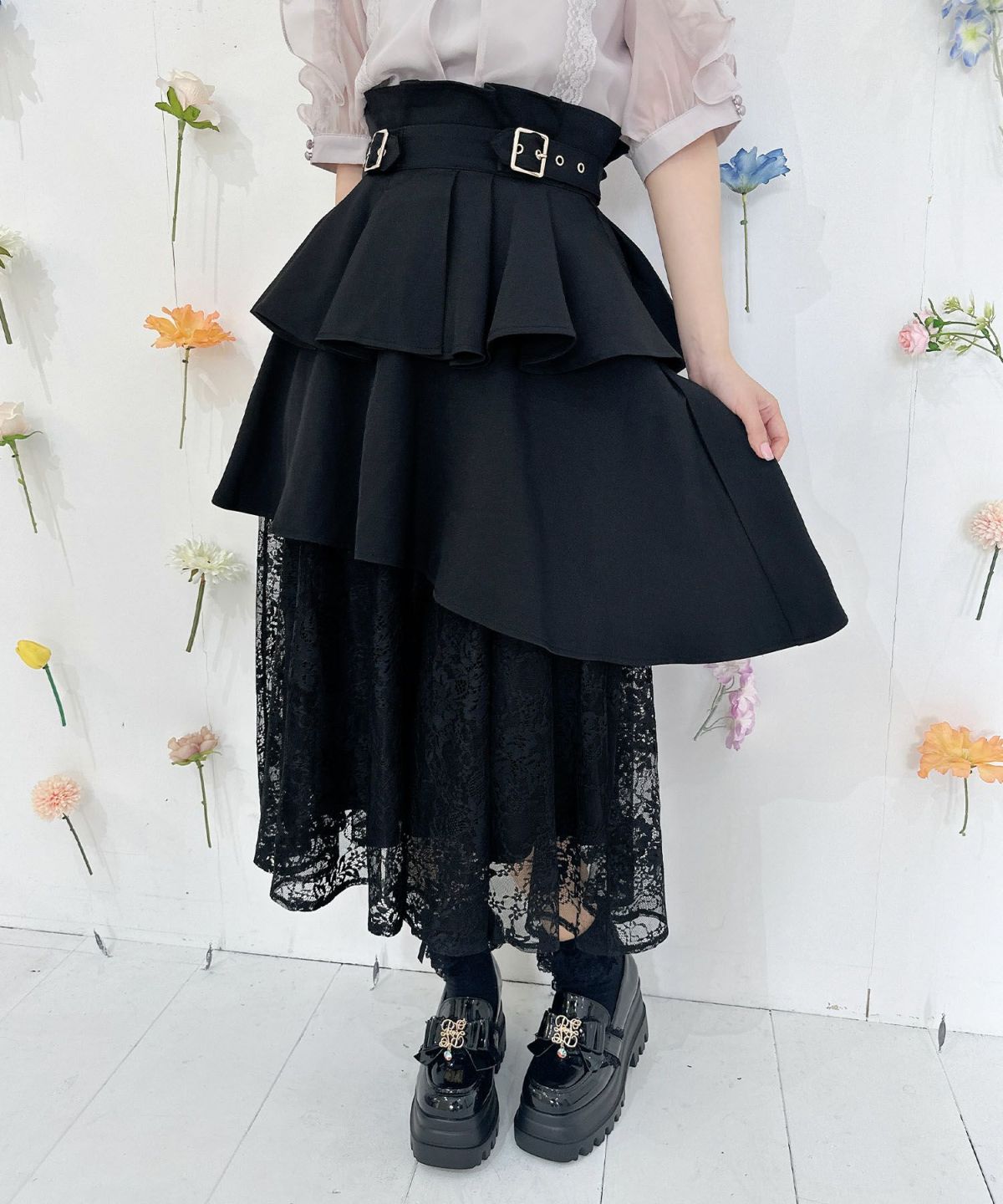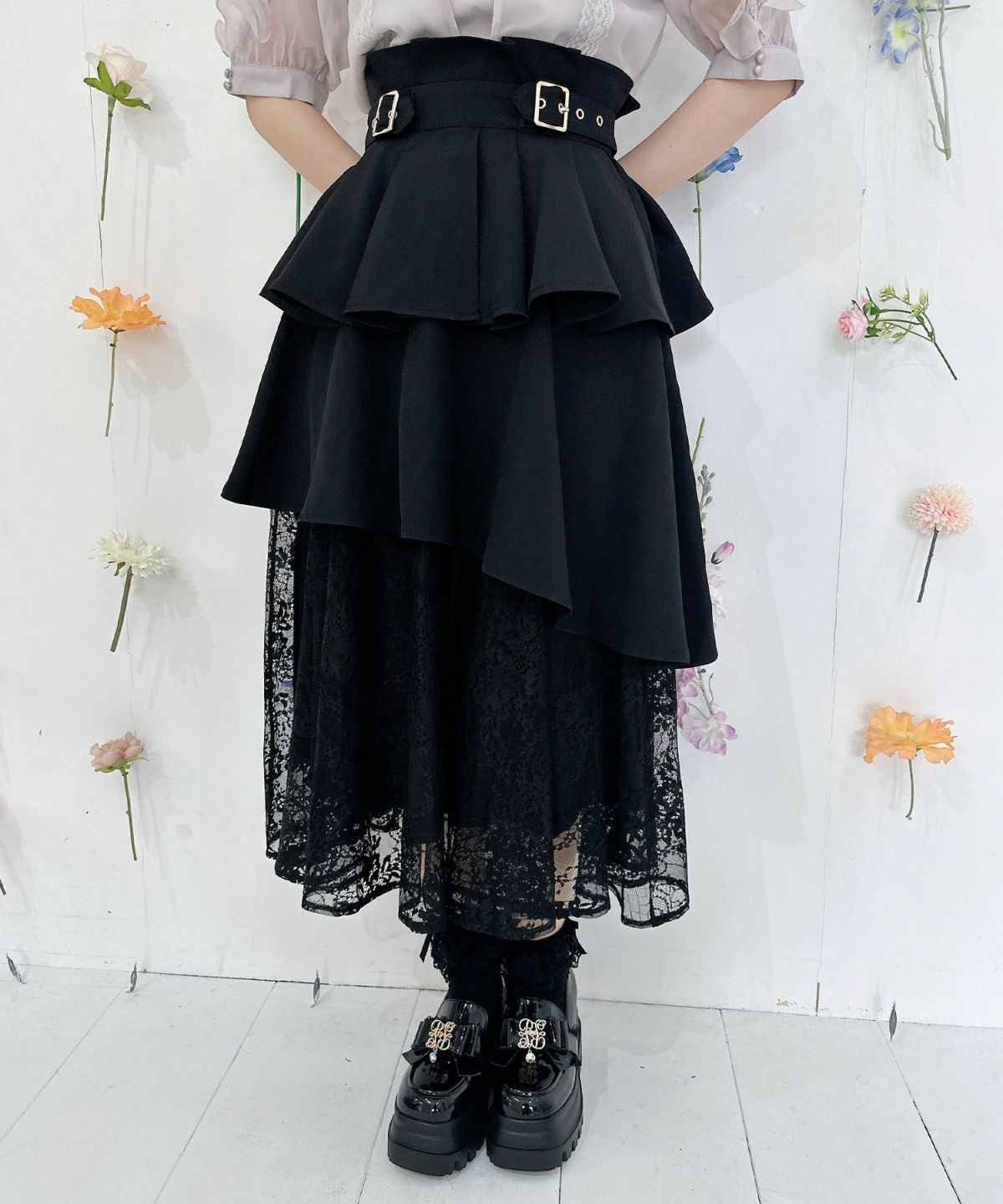 レースティアードロングスカート