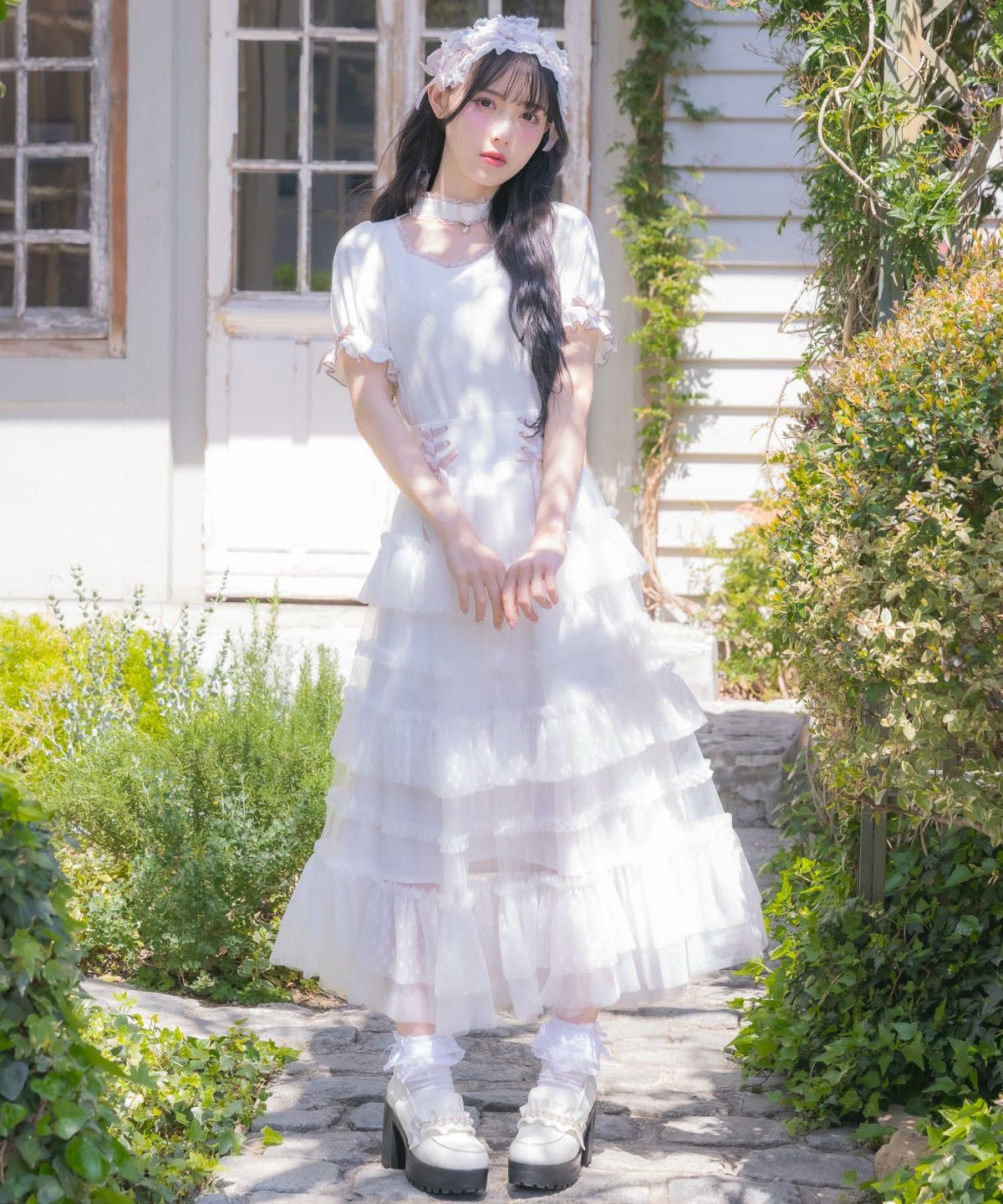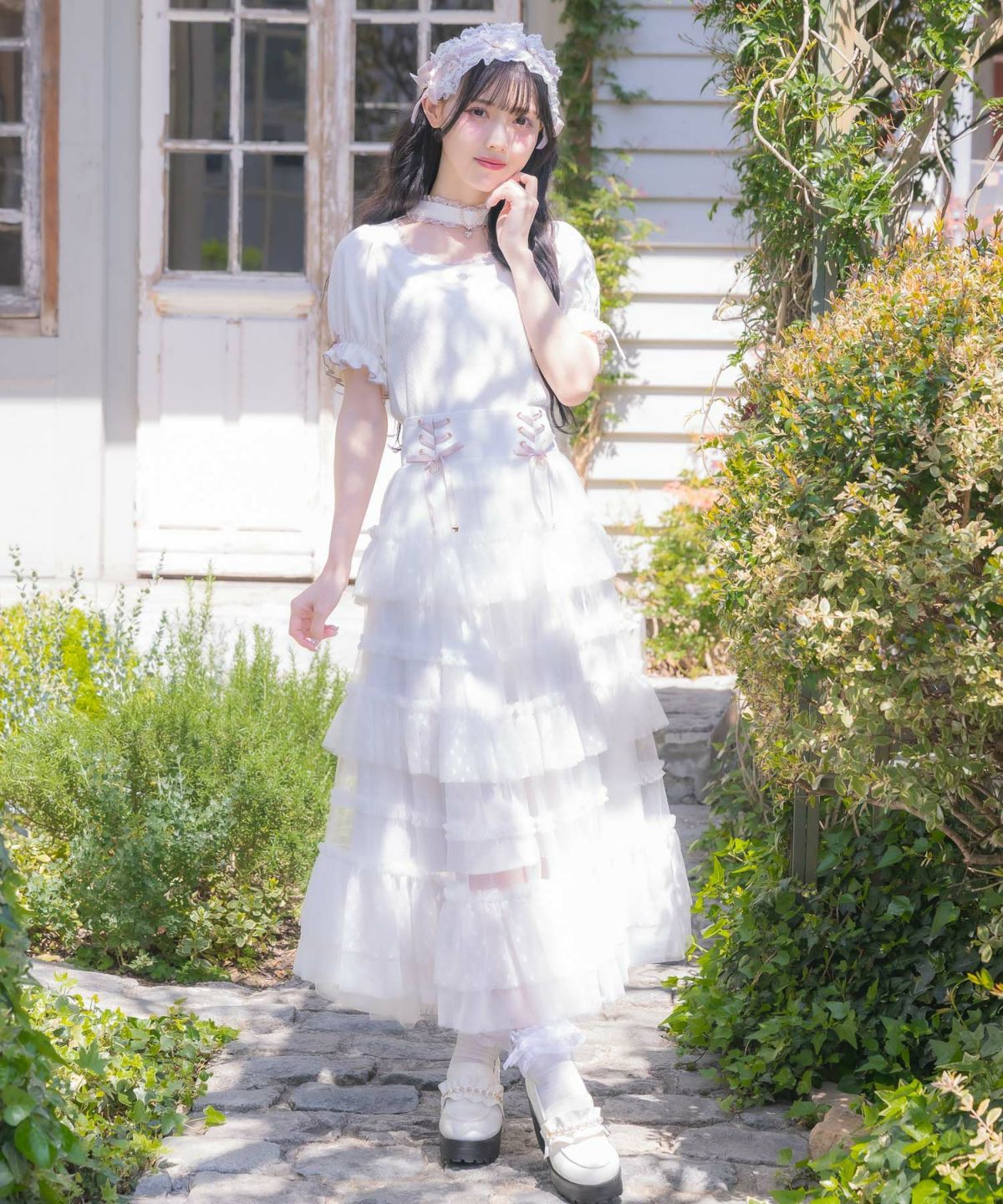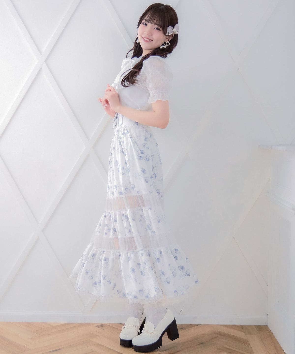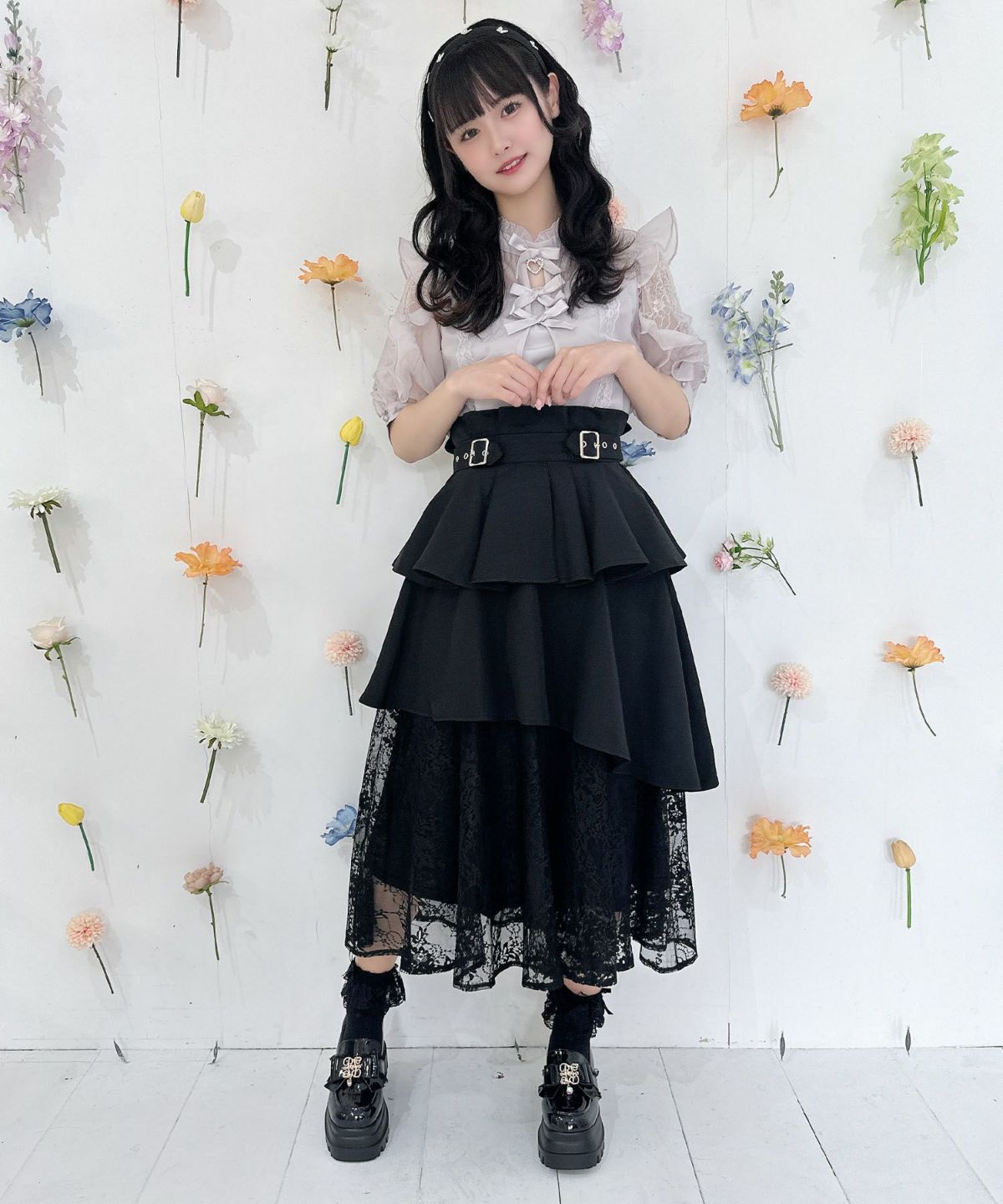レースティアードロングスカート
