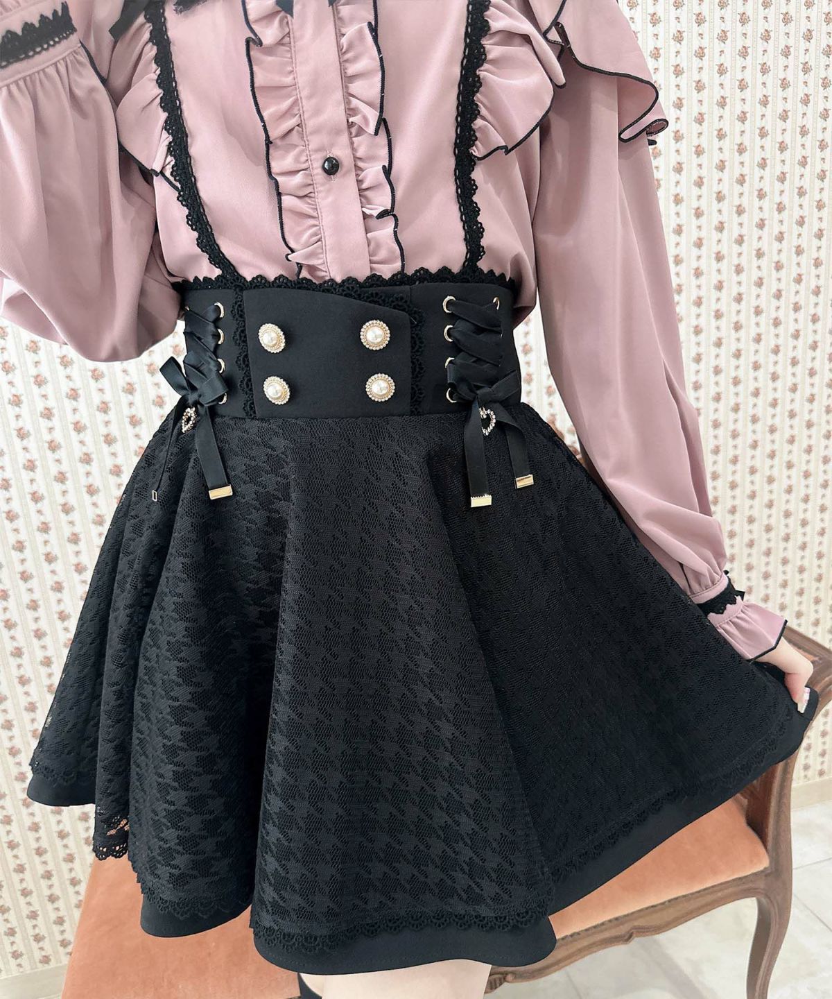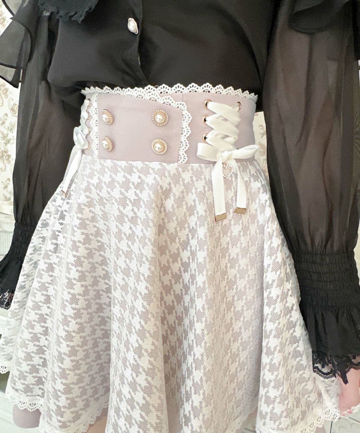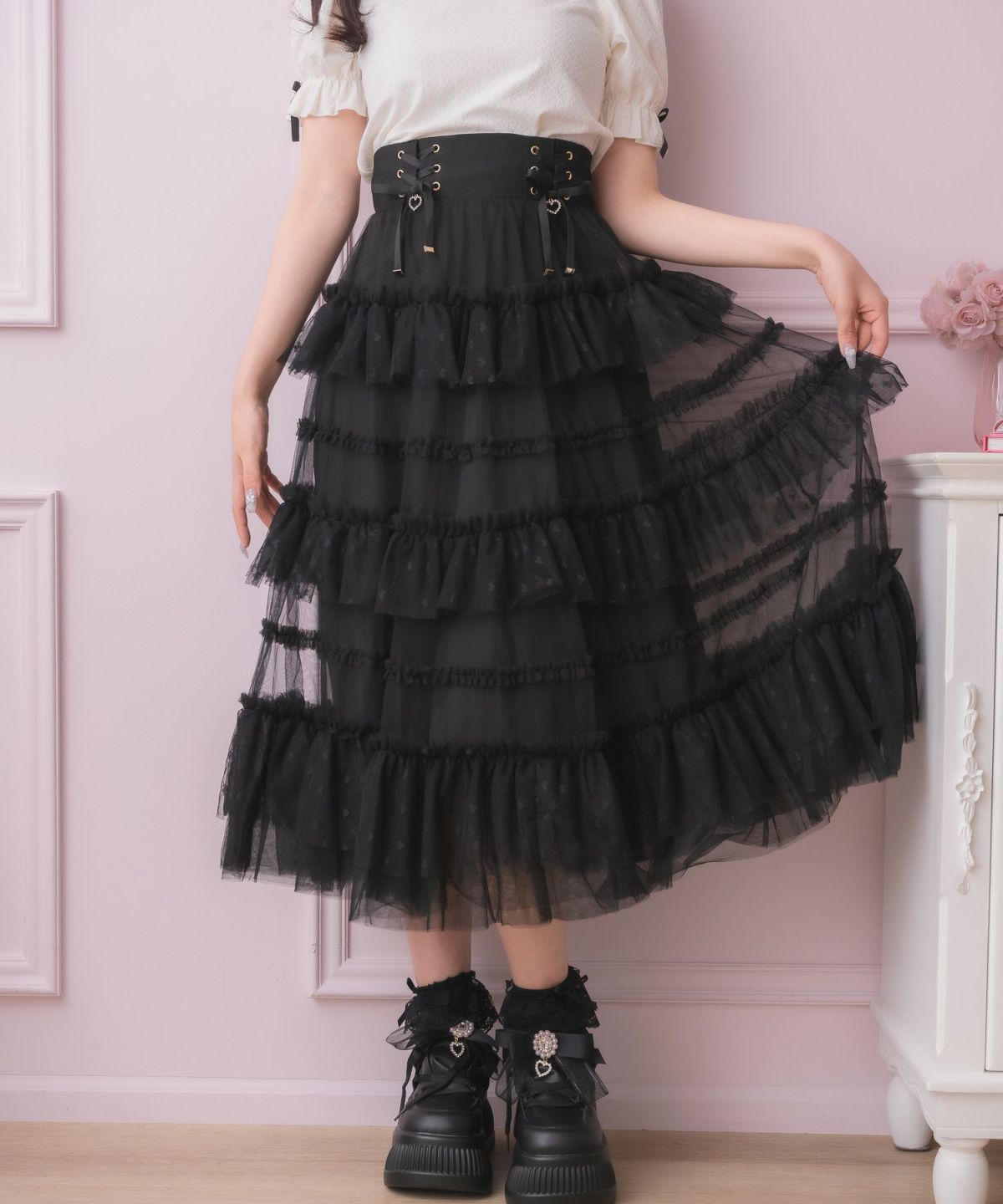 ウエストレースアップチュールスカート
