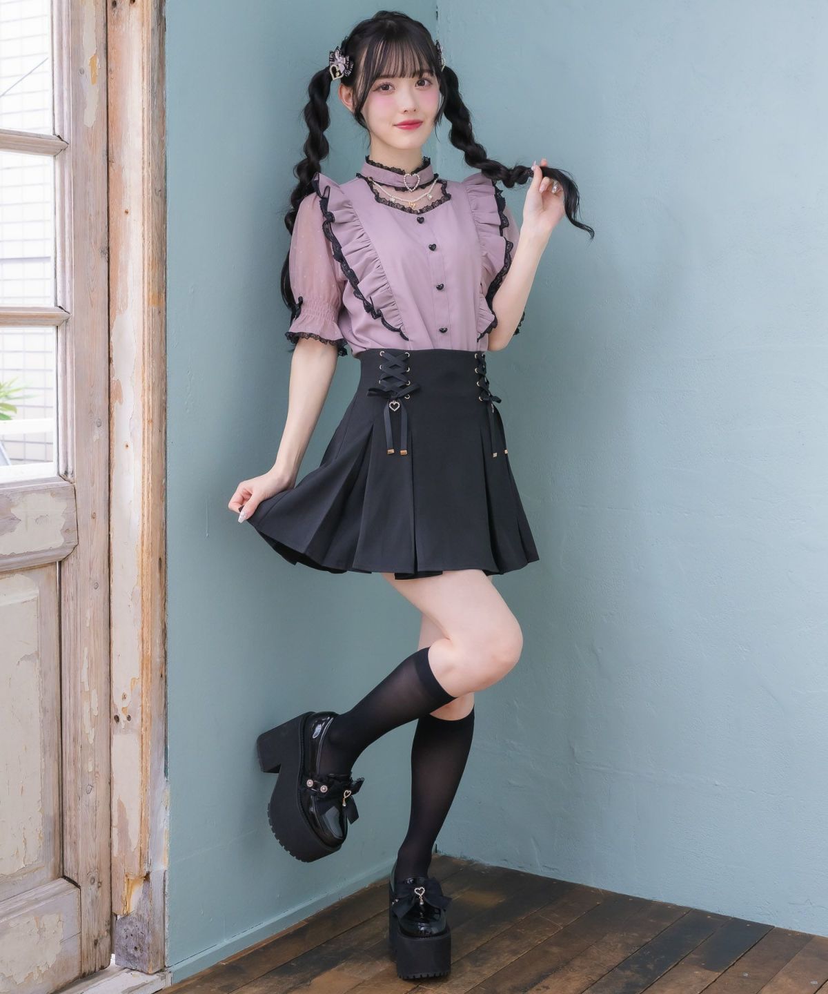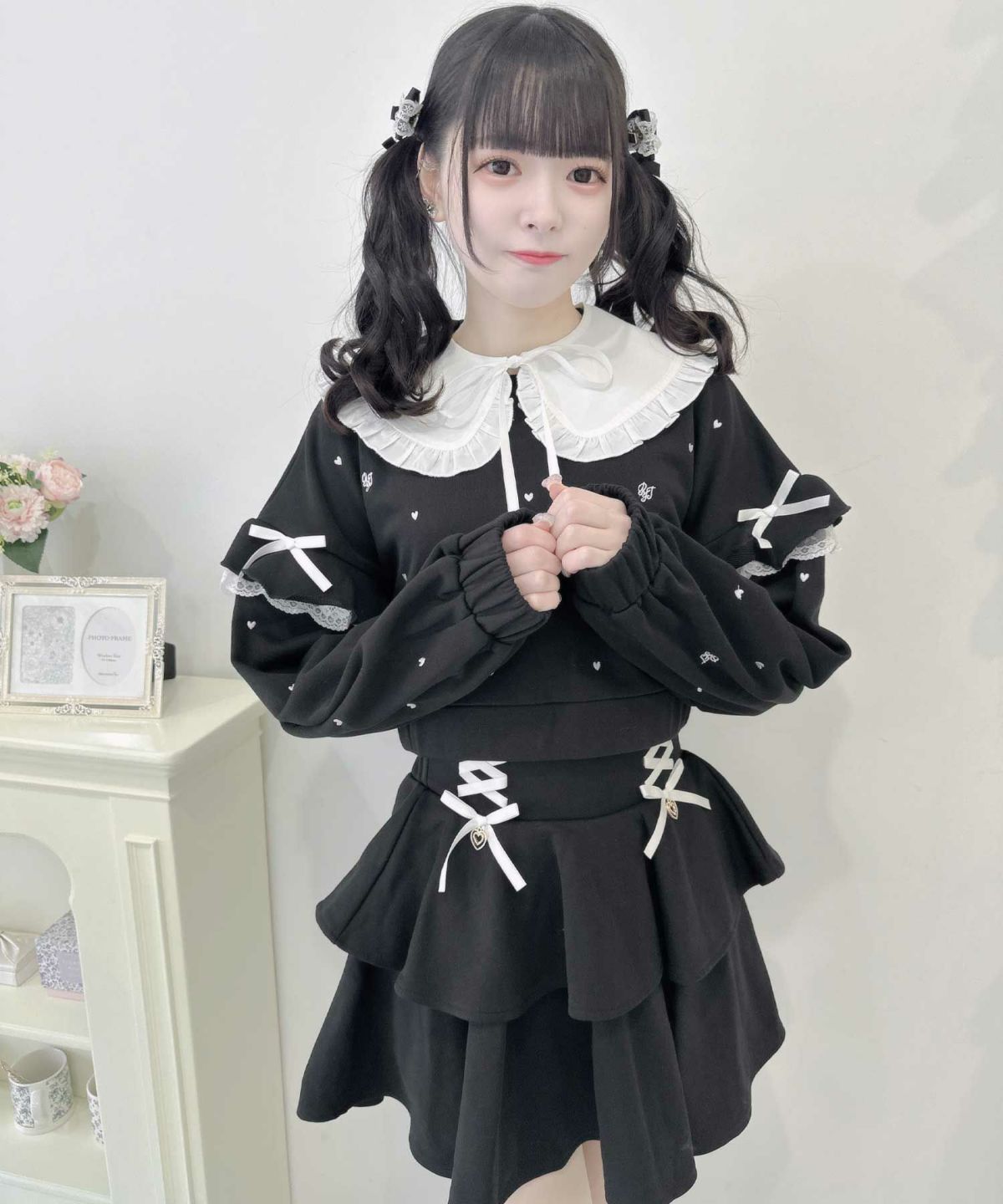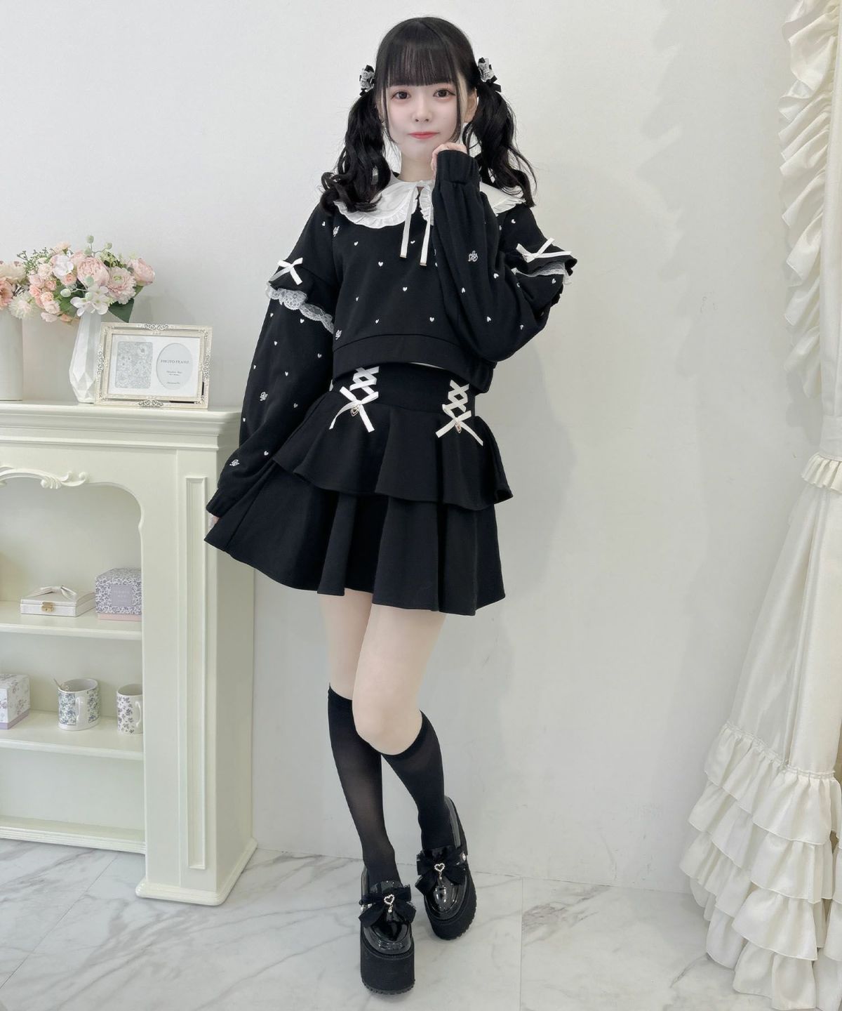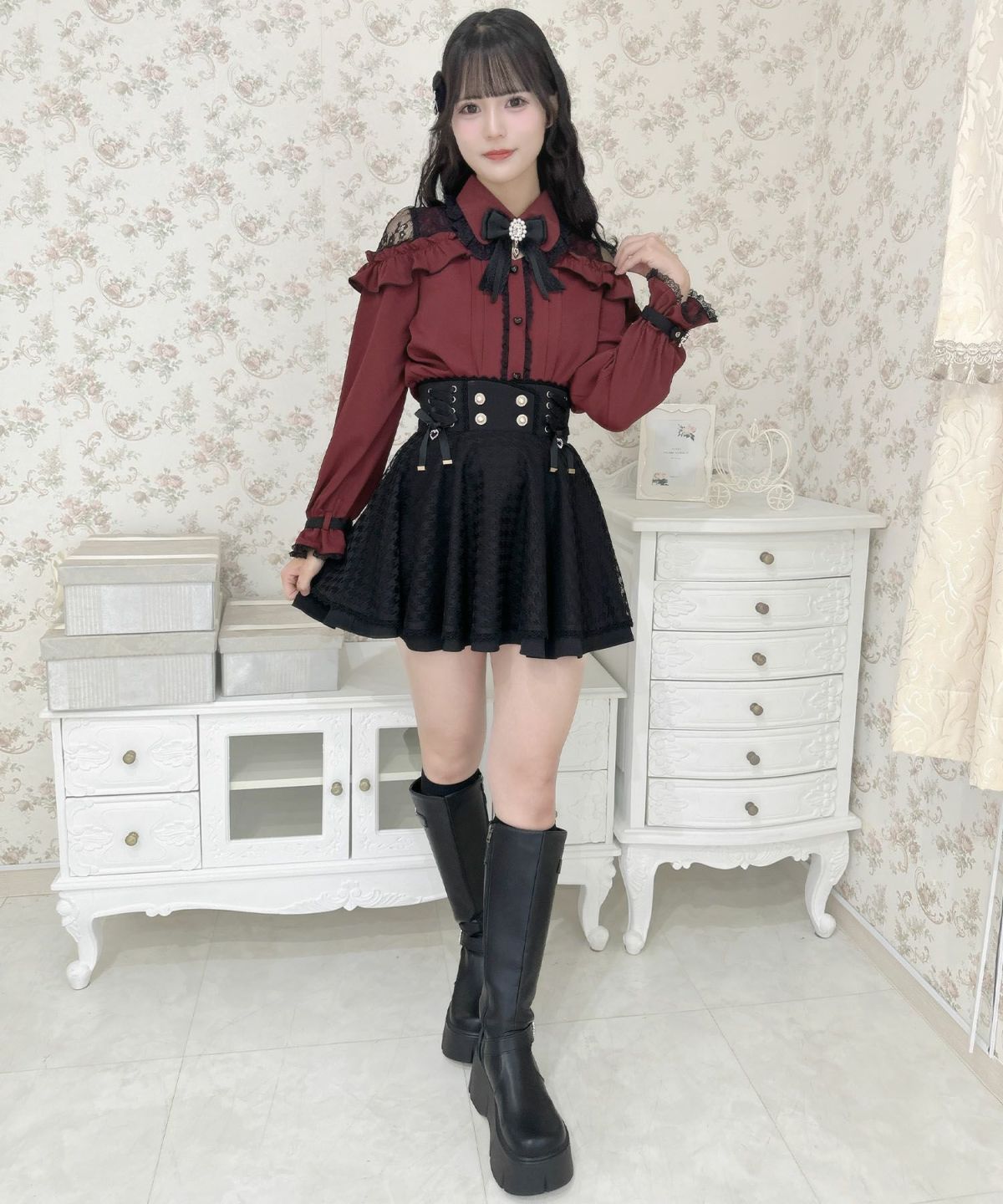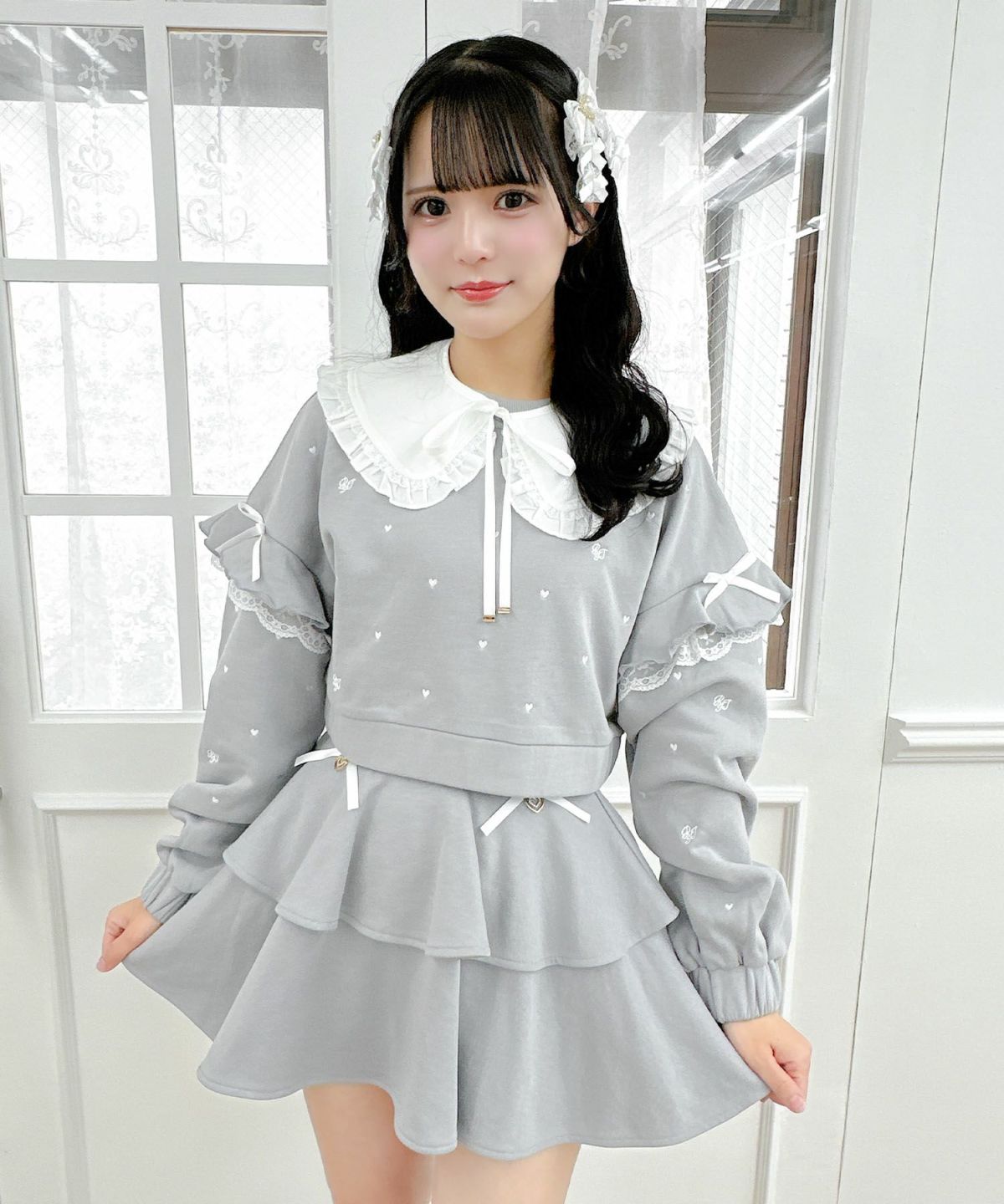 裏毛ティアードレースアップスカート