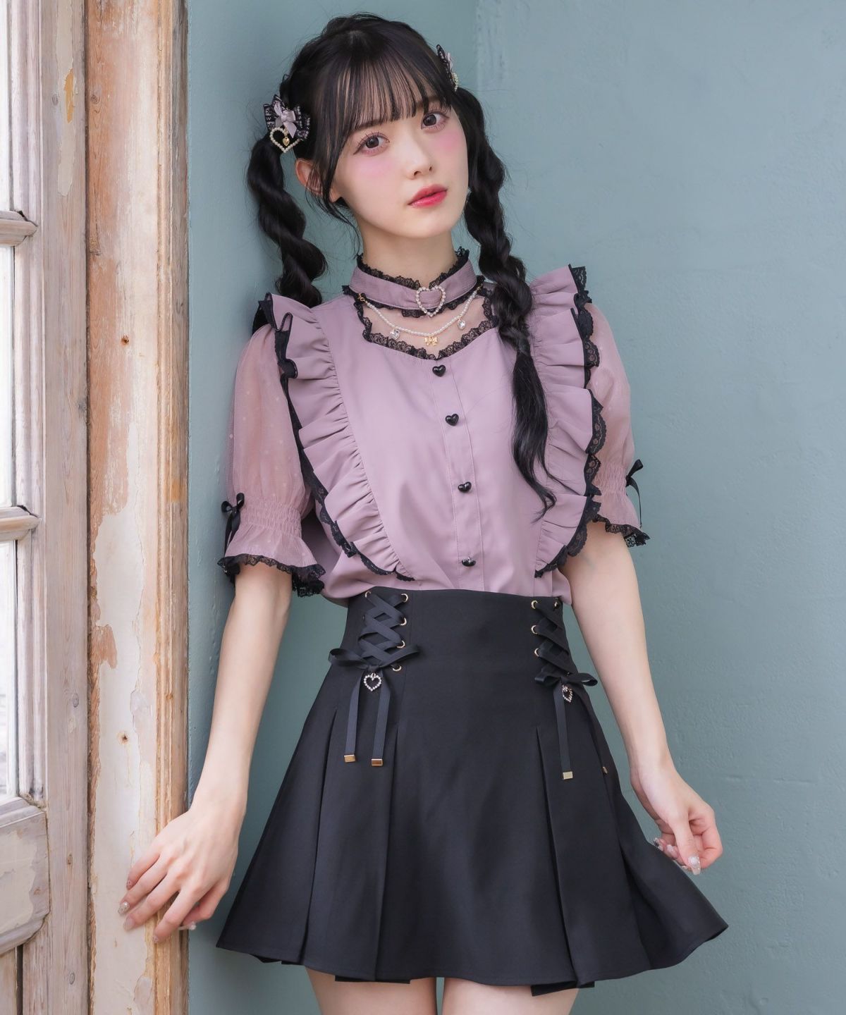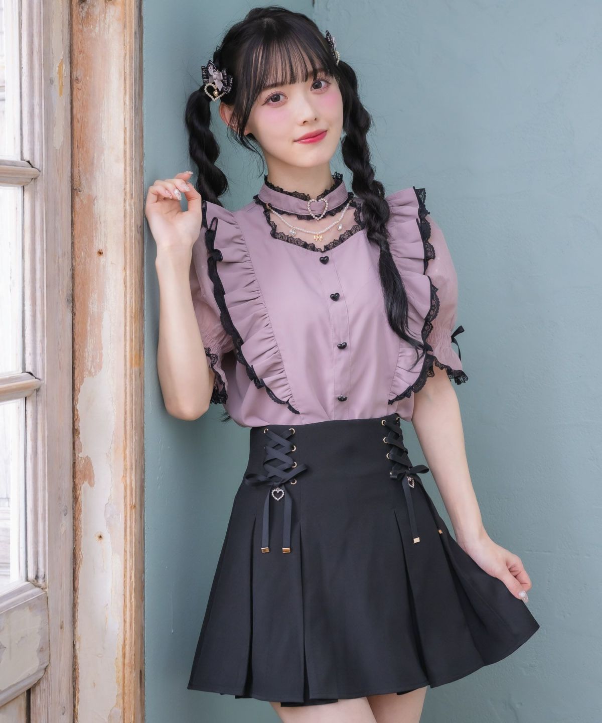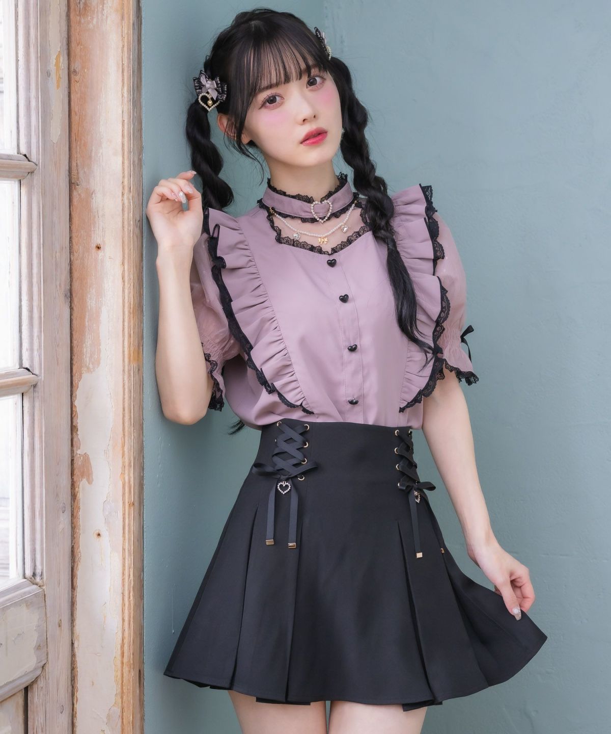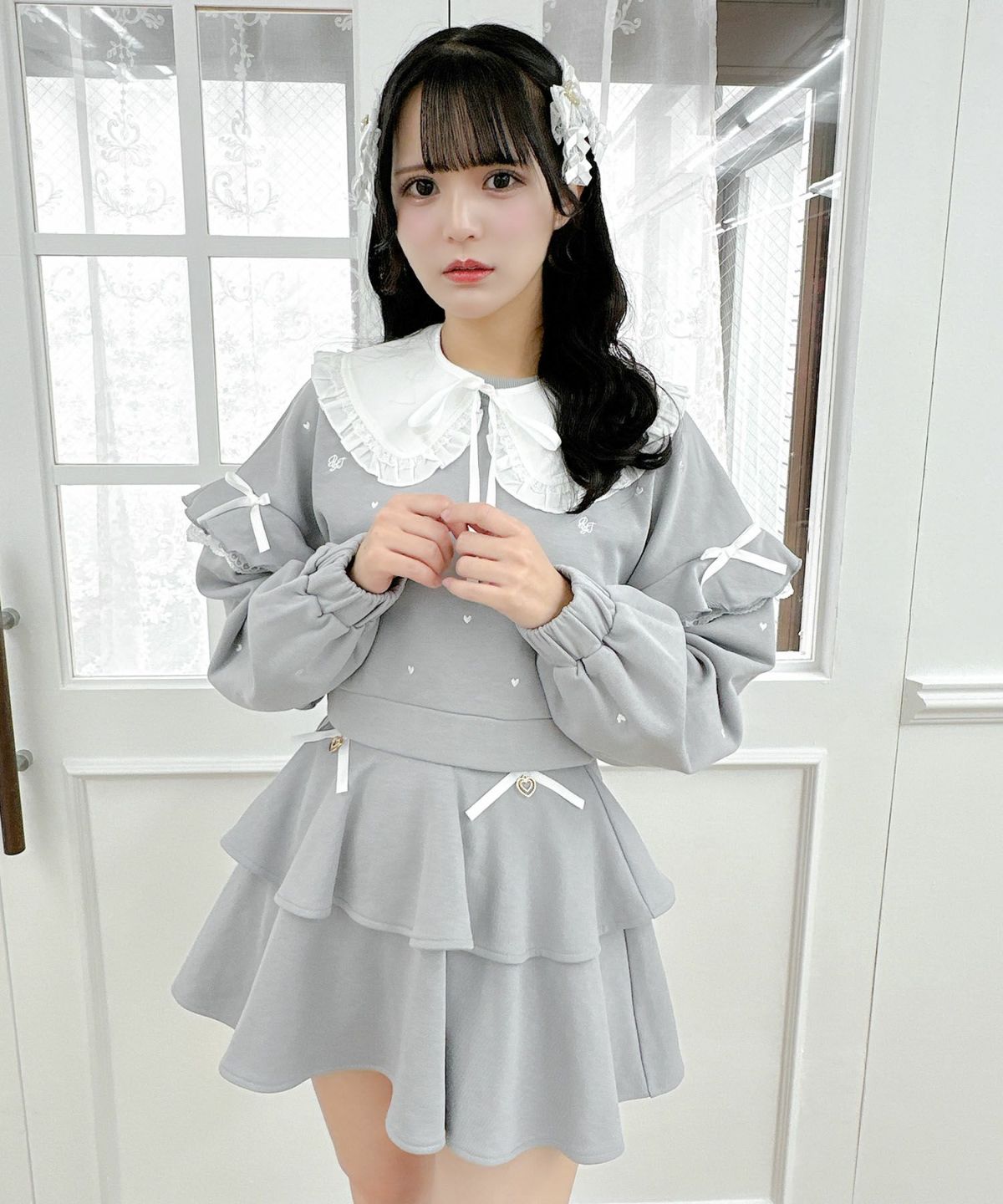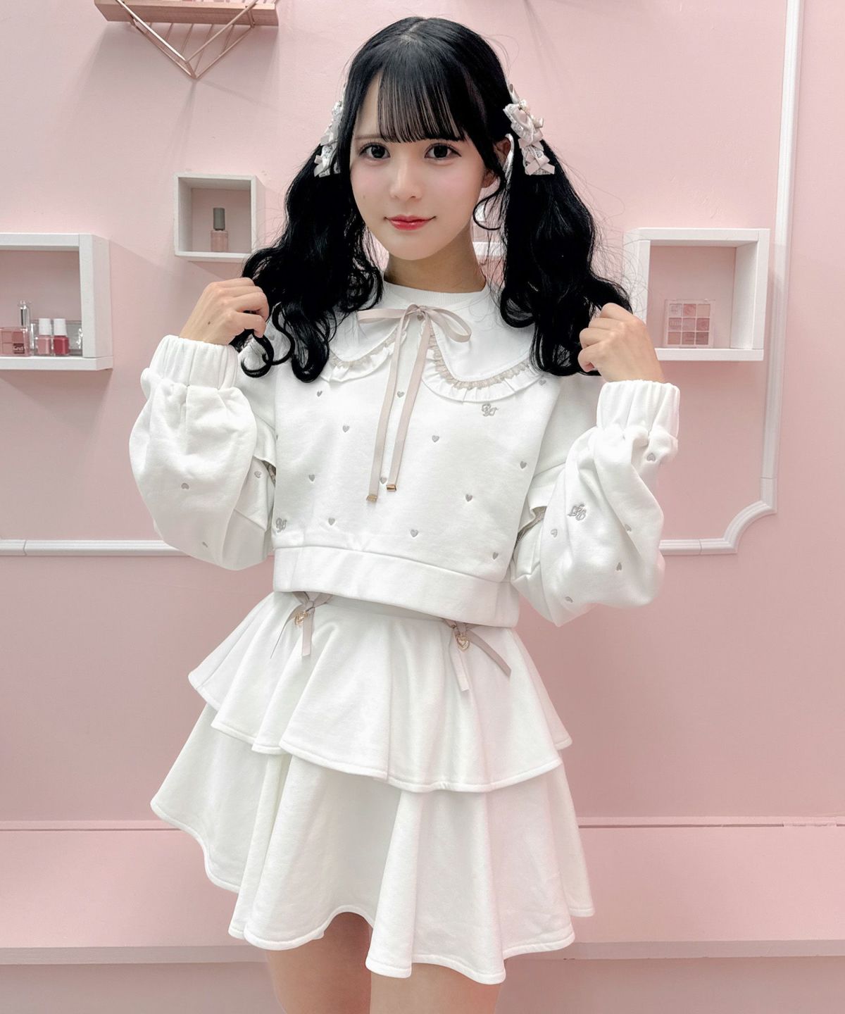 裏毛ティアードレースアップスカート