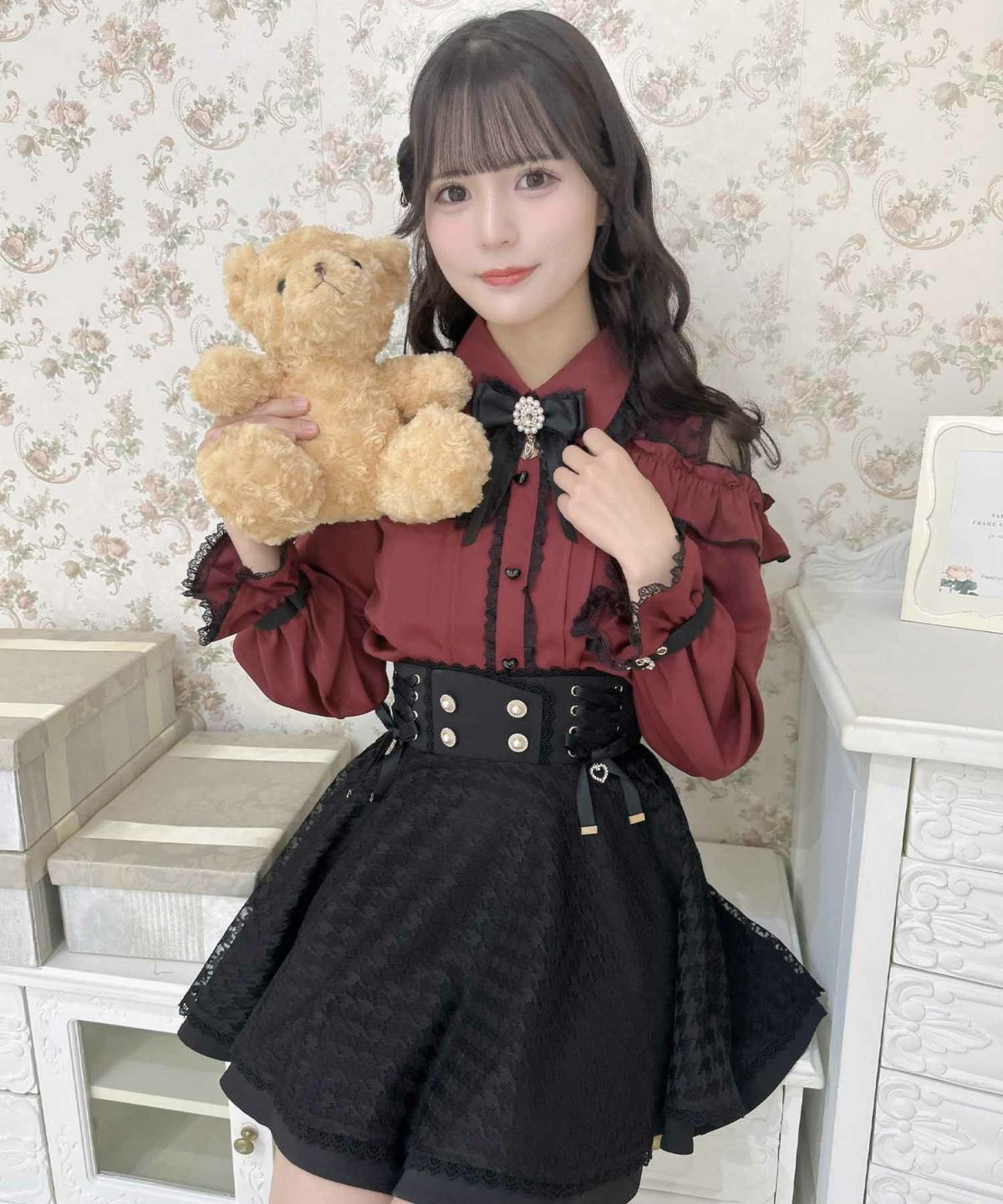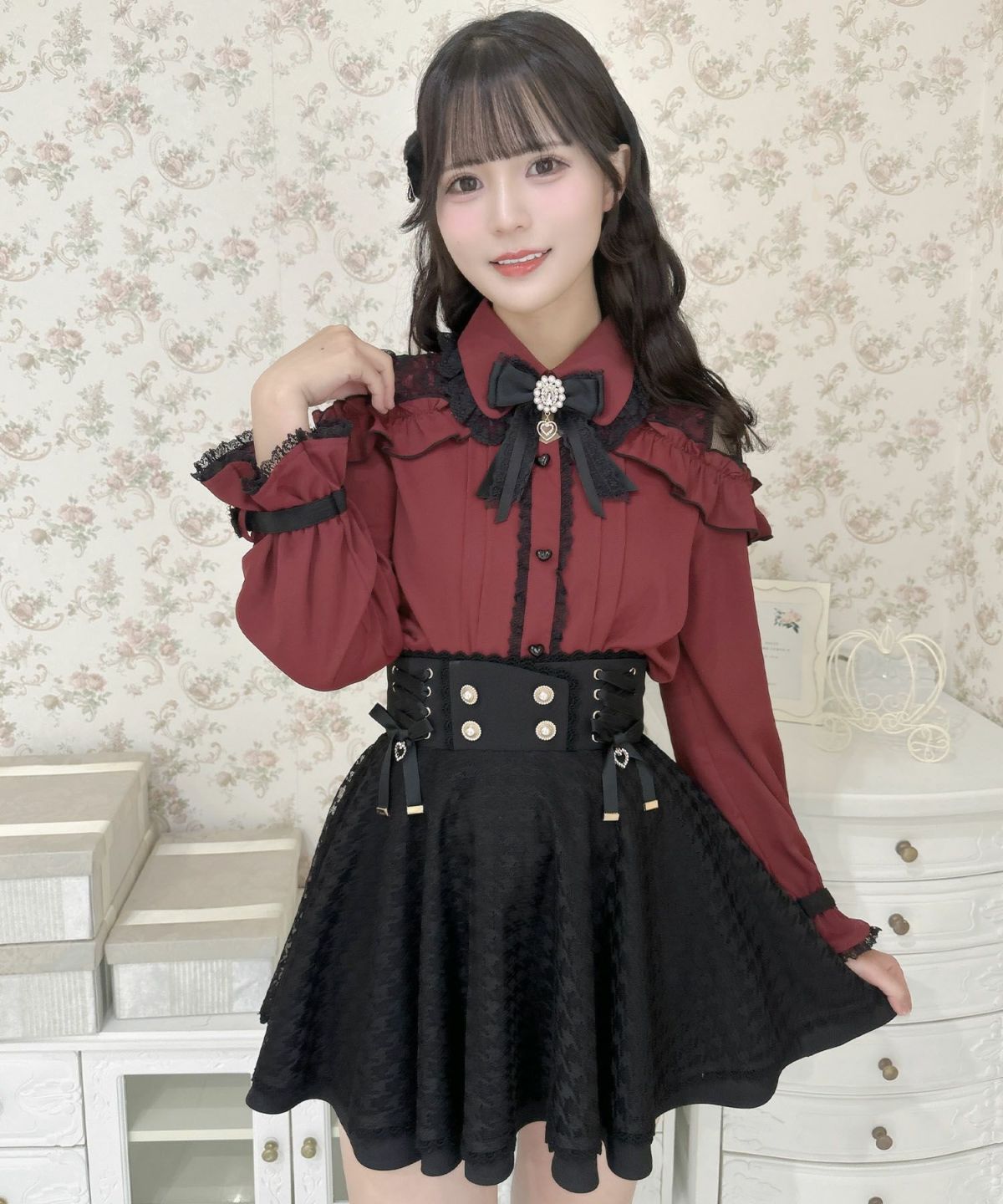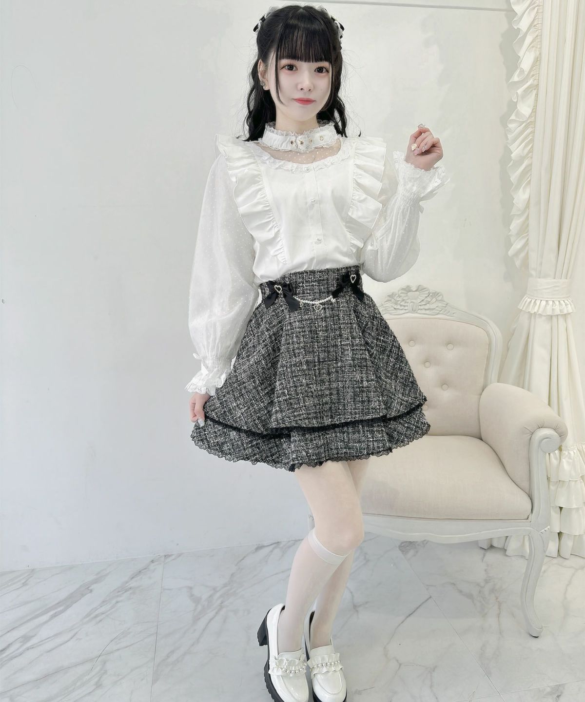 ブローチチェーン付きダブルフレアスカート