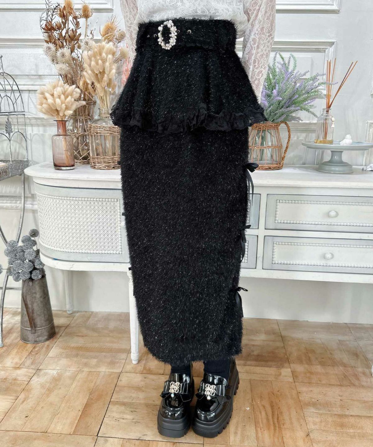 ラメフェザーペプラムタイトスカート