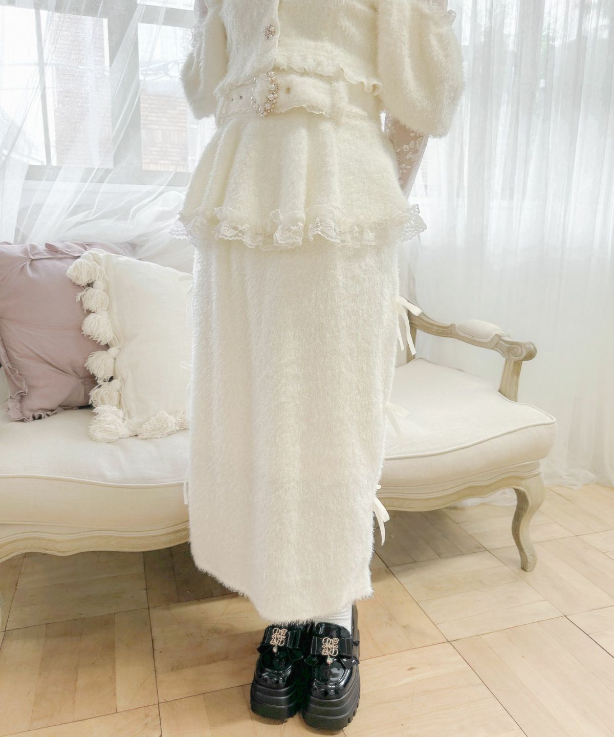バックリボンチュールスカート