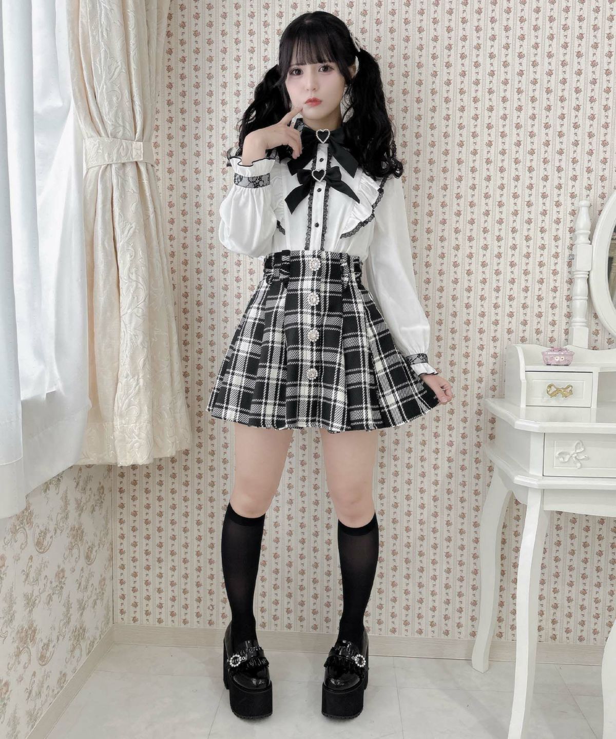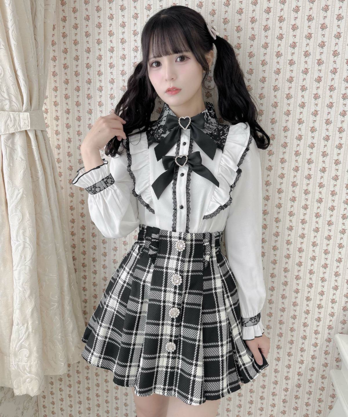 ハートバックルシアーチェックスカート