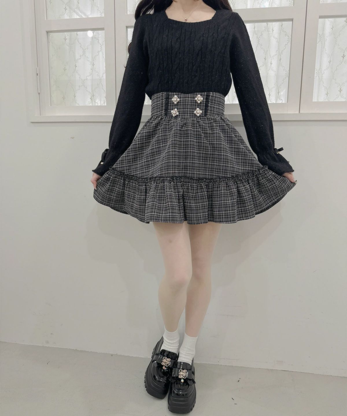 バックレースアップチェックスカート