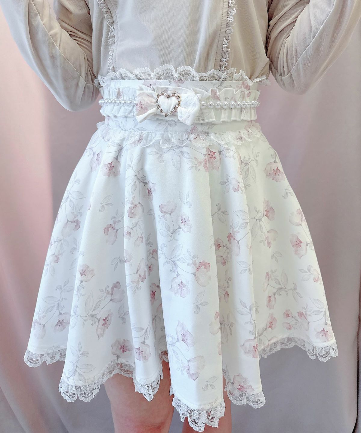 花柄パールデザインスカート
