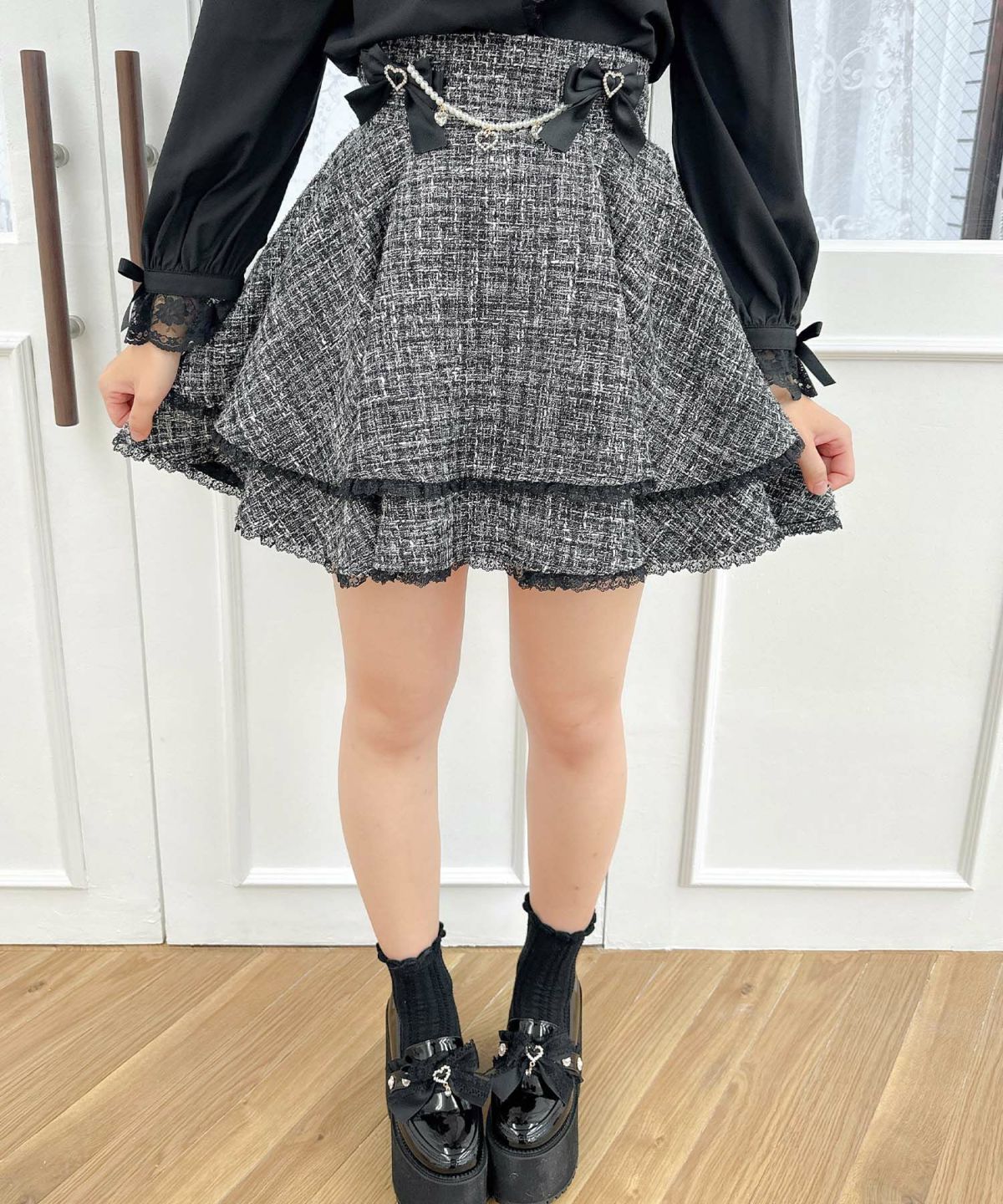 レースアップツイードスカート