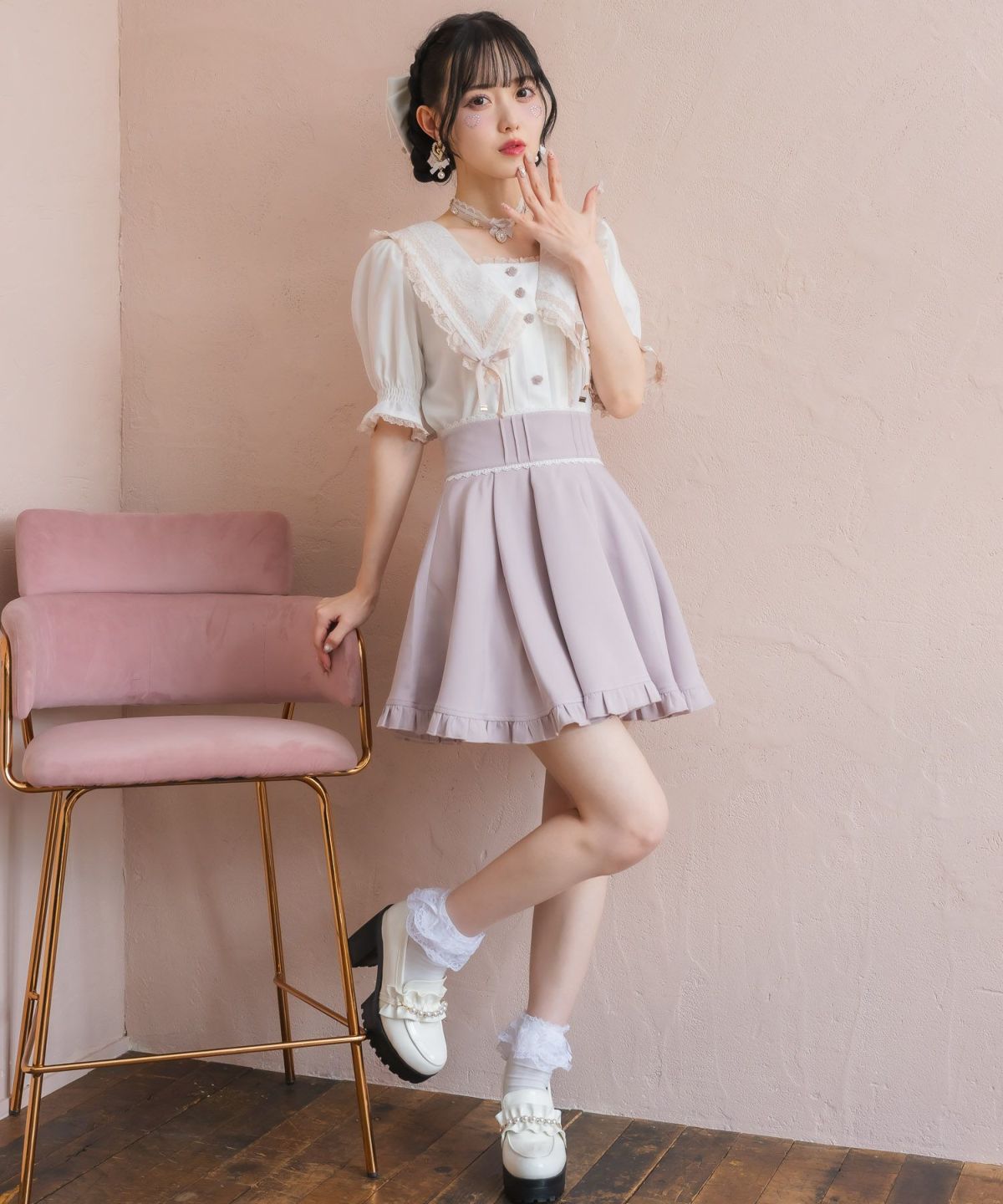 パールバックルタッキングフレアスカート