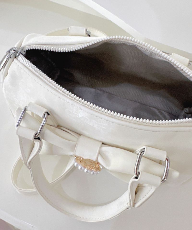 ハンド&ショルダーの2WAY♡マットな質感で上品可愛いディテールが装飾されたバックのお目見えです。コロンとした丸みのあるビジュアルでふんわり優しい印象をアップデート♡マチもあり、ちょうどいい使いやすいサイズ感です♪ ※照明の関係で実際のお色味と若干異なる場合がございます。 ※表示のサイズ感と実物は若干異なる場合がございますので、予めご了承ください。