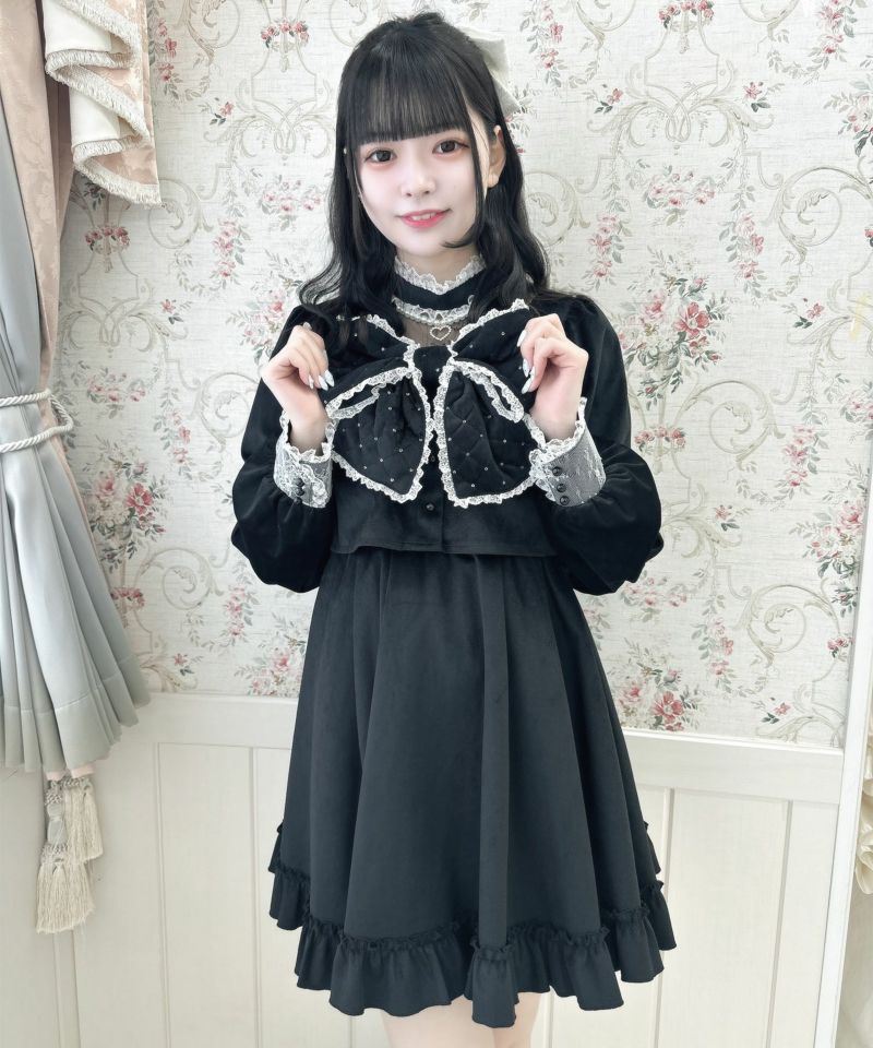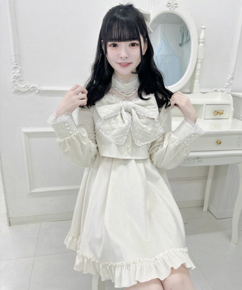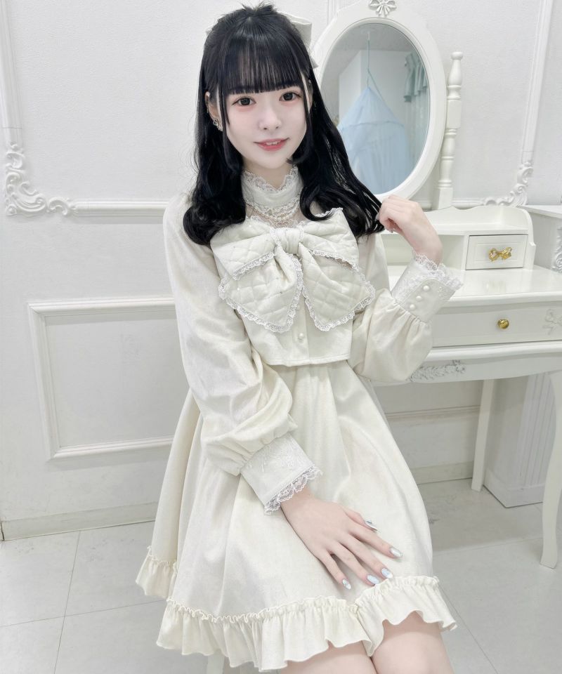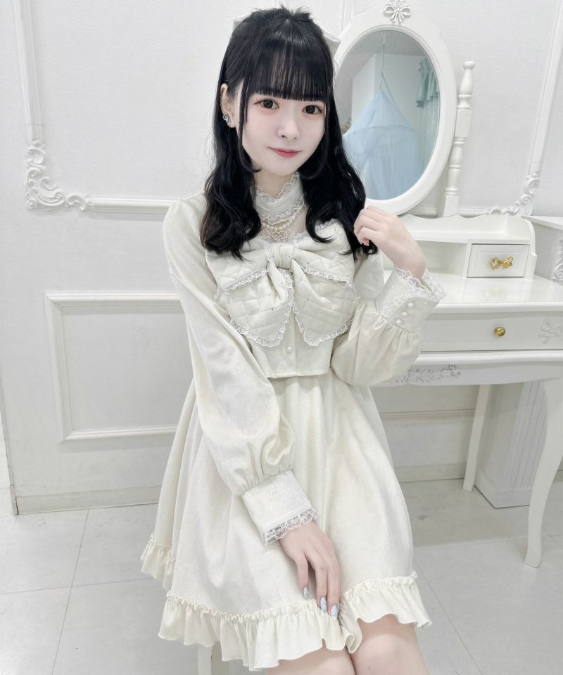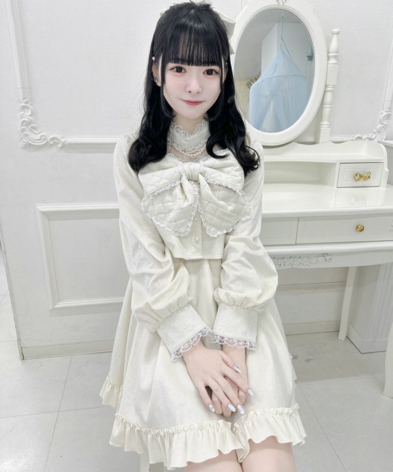 スパンコールを散りばめたキルティングのリボンが可愛い♡上品で高見えのできるウィンターワンピースのお目見えです。BIGリボンとレースで抜け感をプラスするデコルテにはパールのチェーンの装飾をON、お顔周りを華やかにメイクアップしてくれます。お呼ばれシーンにも活躍してくれそう♪ ※照明の関係で実際のお色味と若干異なる場合がございます。 ※表示のサイズ感と実物は若干異なる場合がございますので、予めご了承ください。 モデル身長:160cm