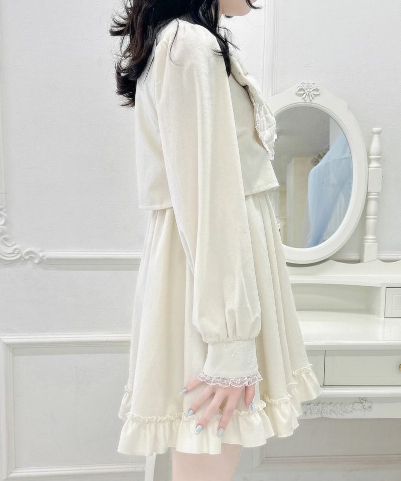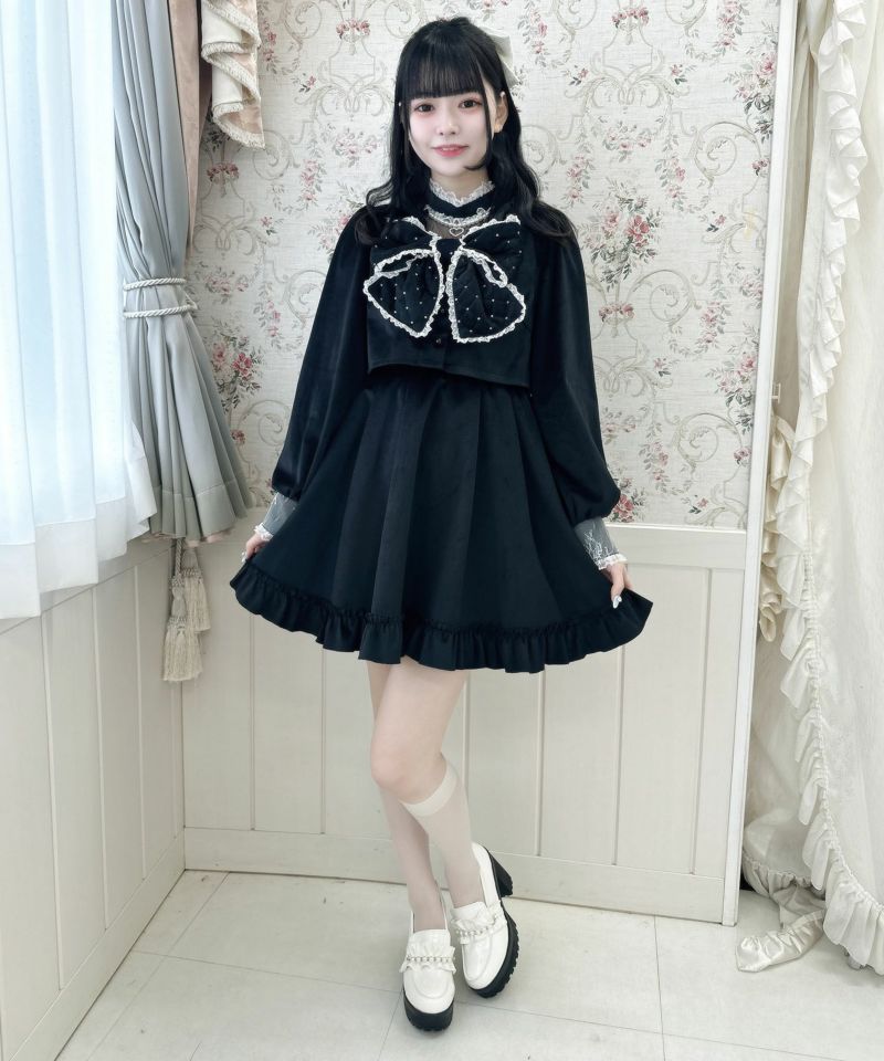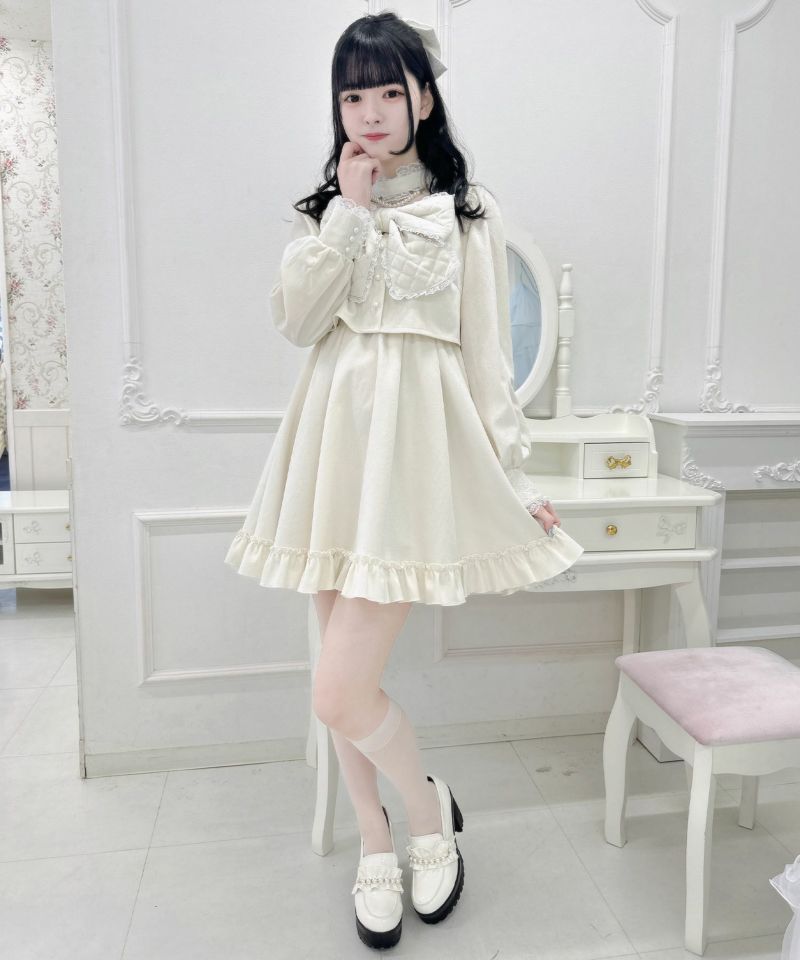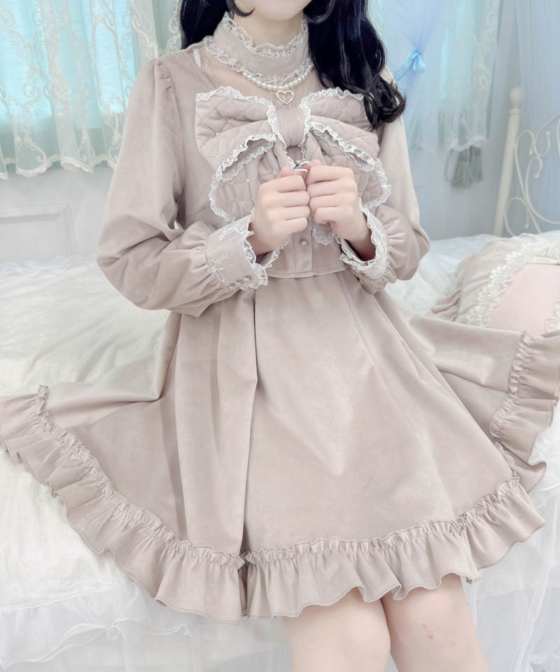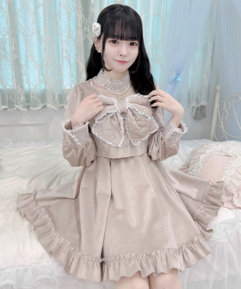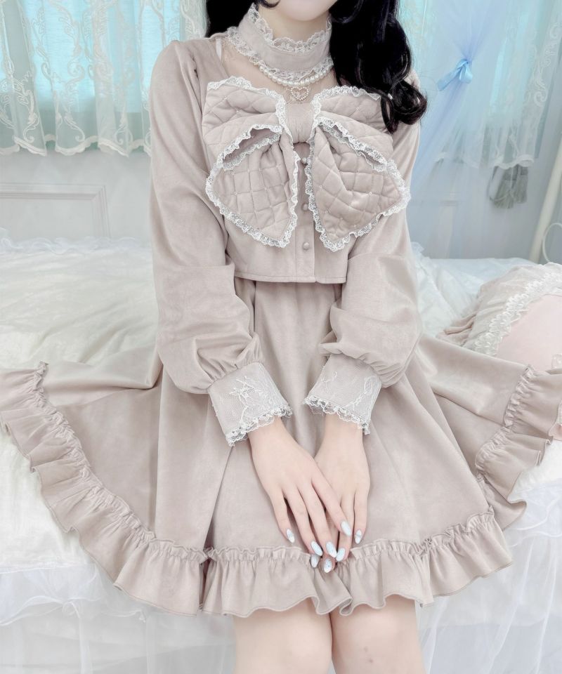 スパンコールを散りばめたキルティングのリボンが可愛い♡上品で高見えのできるウィンターワンピースのお目見えです。BIGリボンとレースで抜け感をプラスするデコルテにはパールのチェーンの装飾をON、お顔周りを華やかにメイクアップしてくれます。お呼ばれシーンにも活躍してくれそう♪ ※照明の関係で実際のお色味と若干異なる場合がございます。 ※表示のサイズ感と実物は若干異なる場合がございますので、予めご了承ください。 モデル身長:160cm