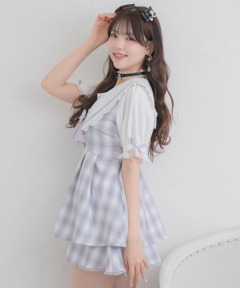 大きめセーラーが特徴♪二次元級の可愛らしさを感じるチュニックとパンツのセットアップです。お尻周りを隠せる着丈&パンツスタイルで安心感も◎ウエストにはタックを入れているので上半身がすっきりと見え、裾フレアがフェミニンな印象に導きます。 ※照明の関係で実際のお色味と若干異なる場合がございます。 ※表示のサイズ感と実物は若干異なる場合がございますので、予めご了承ください。 モデル身長ネイビー159cm/グレー・ピンク163cm