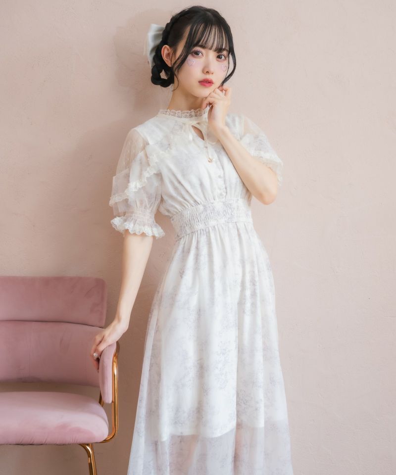 大人っぽさを匂わせるエレガントなプリントフラワーのロングワンピース。ウエストはシャーリングでフィット感抜群♪上品に広がる裾で、リラクシーなムードを醸します。主役級の存在感を演出してくれる1着、身頃は裏地付きのためインナーが透けにくいのも嬉しいポイントです。 ※照明の関係で実際のお色味と若干異なる場合がございます。 ※表示のサイズ感と実物は若干異なる場合がございますので、予めご了承ください。 モデル身長アイボリー159cm/ブルー・ピンク163cm