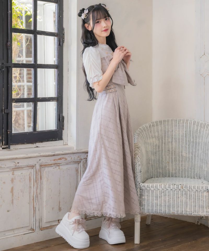 トップスとセットになったドッキングワンピース♡リボンをつけた可愛いネックレス付きでアクセも不必要、大きなBIGリボンが映えてガーリーにメイクしてくれます。裾にかけて自然に広がる美しいフレアシルエットがポイント♪ ※照明の関係で実際のお色味と若干異なる場合がございます。 ※表示のサイズ感と実物は若干異なる場合がございますので、予めご了承ください。 モデル身長ピンク159cm/ブラック163cm/ホワイト162cm