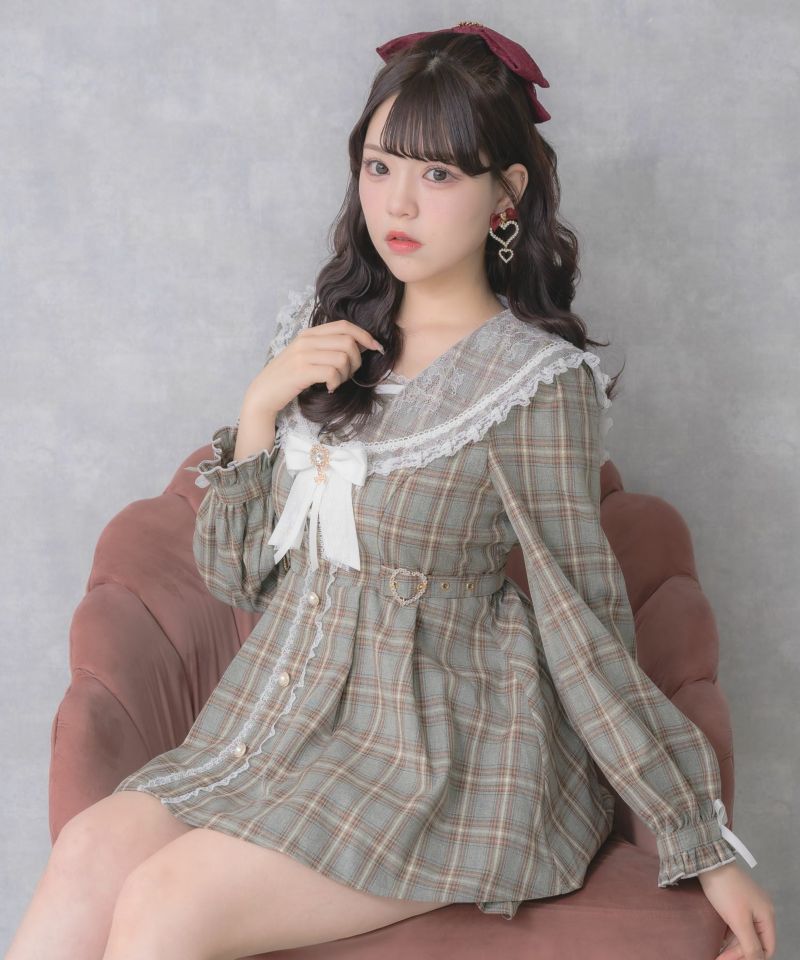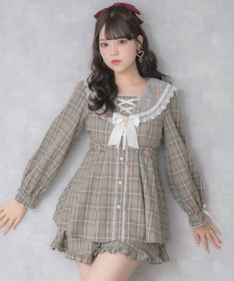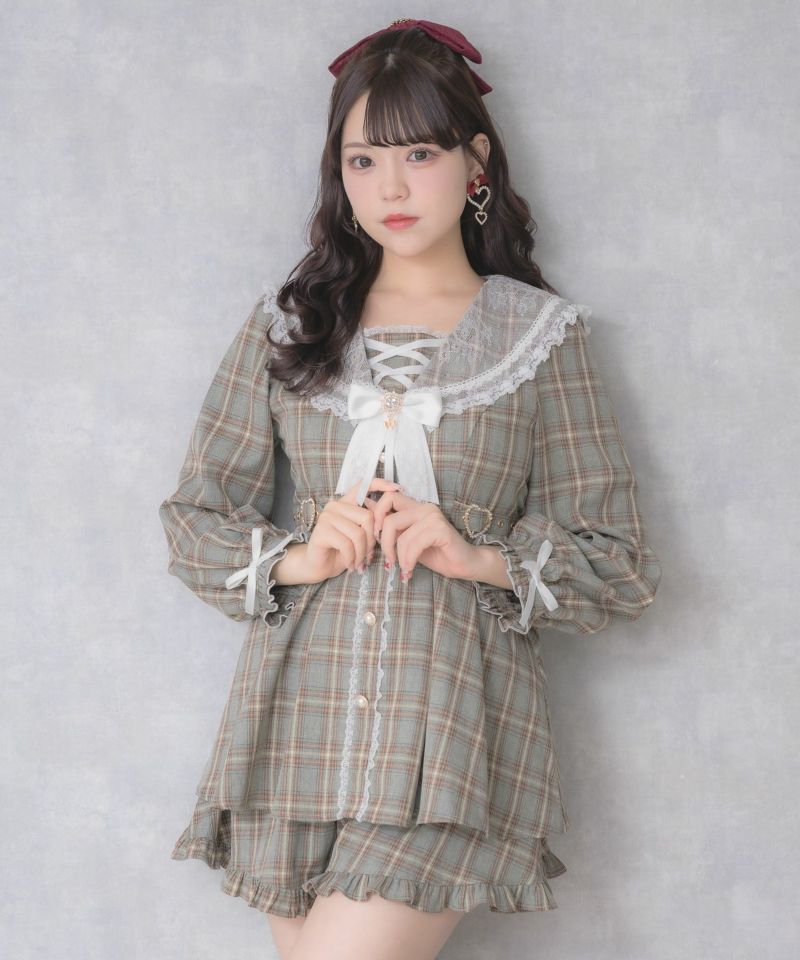 レース配色のセーラー衿でガーリー度120%♡繊細なレースをあしらったセーラー衿が、顔まわりを華やかに魅せてくれます。王道ガーリーなピンク、大人可愛いブラック、トレンド感たっぷりのチェック、どのカラーもコーデの主役になる可愛さです。メリハリのあるトップスと、ふんわり広がるボトムのシルエットでスタイルアップ効果も抜群◎甘さの中に上品さを感じる、ROJITAらしいときめきセットアップです。