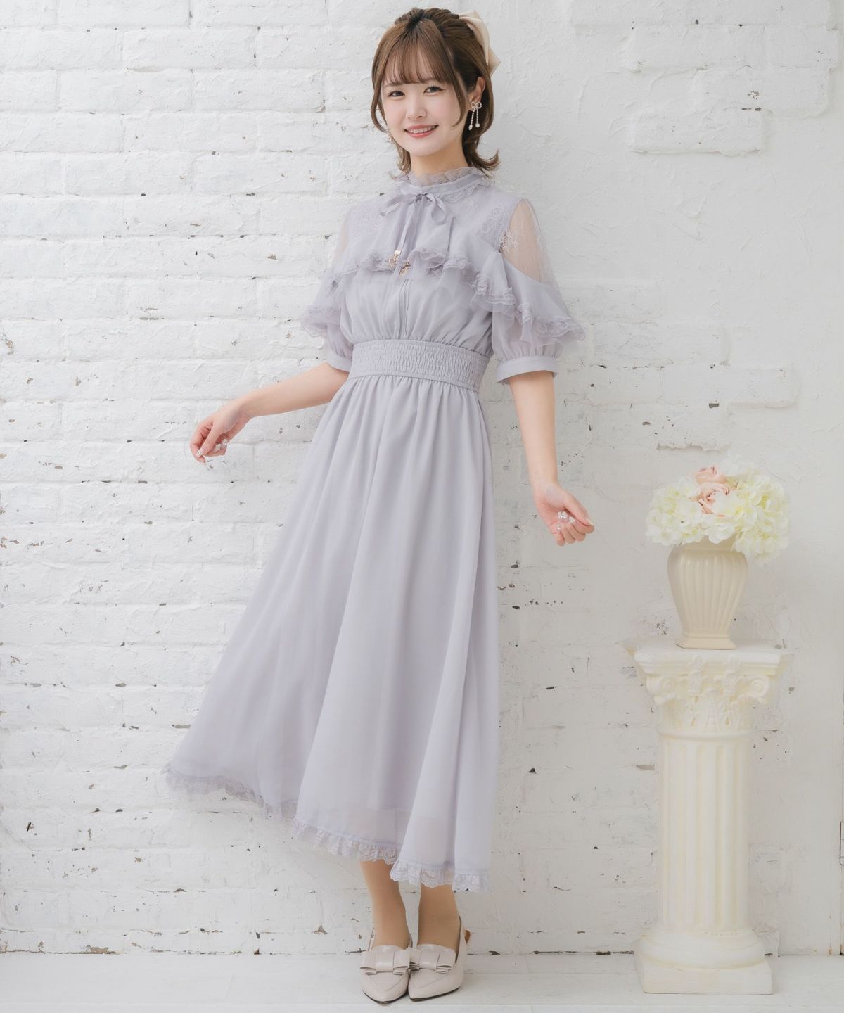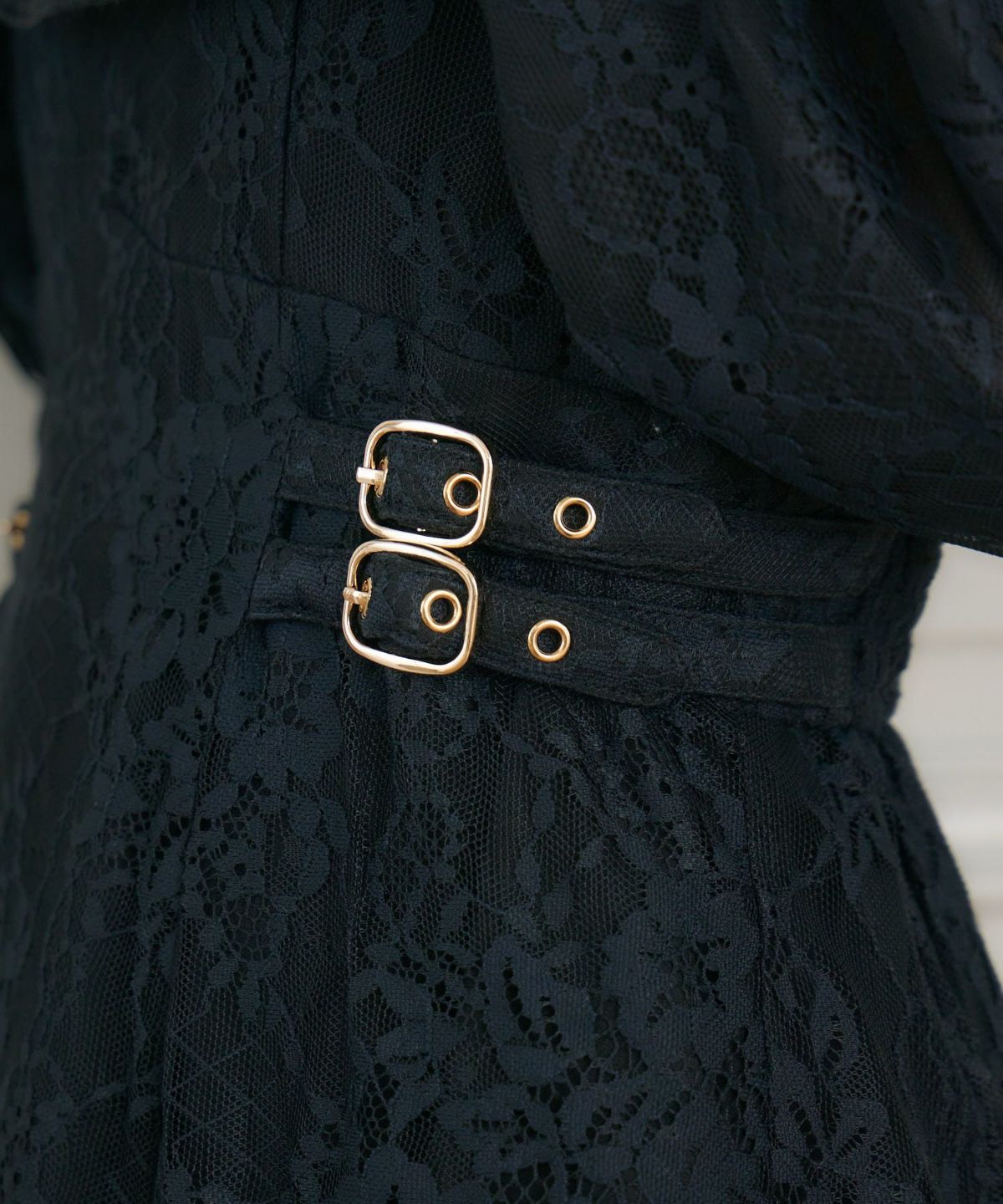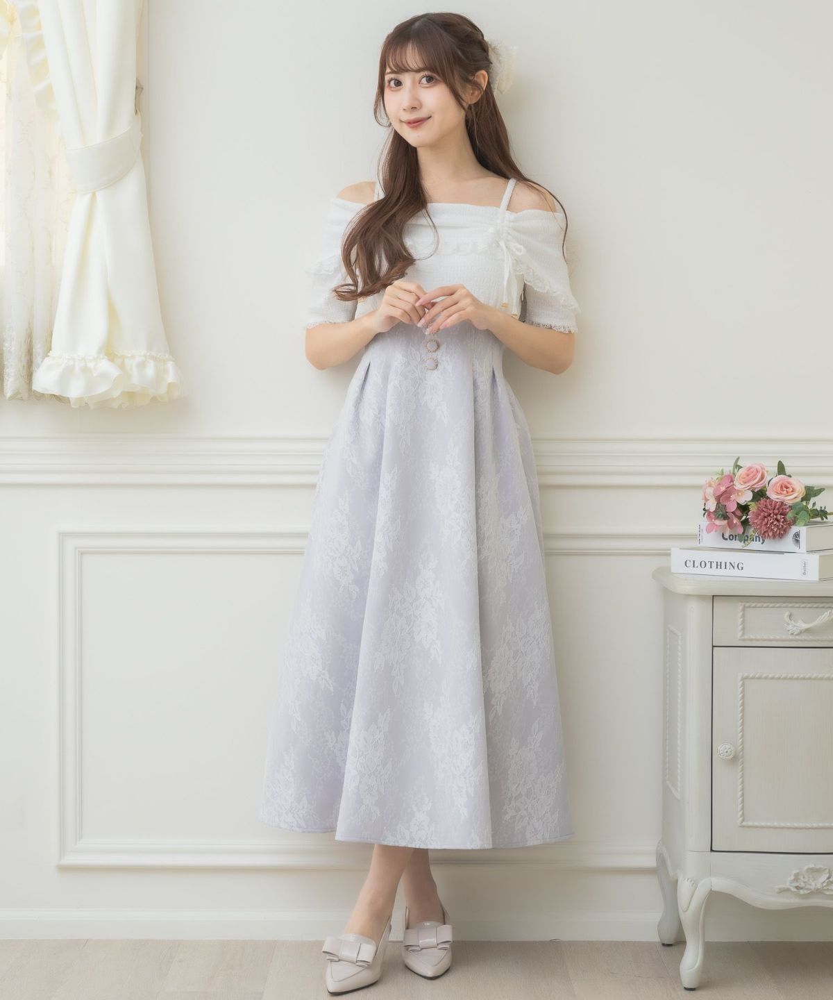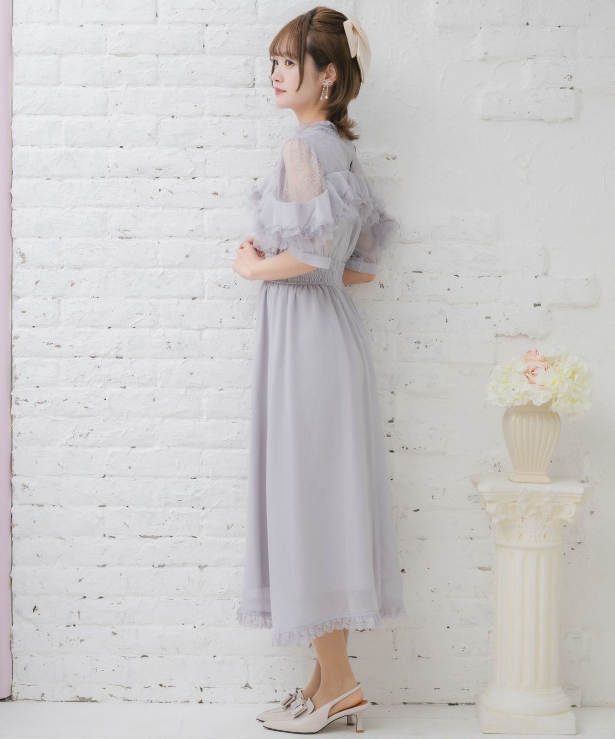 肩開き総レースワンピース