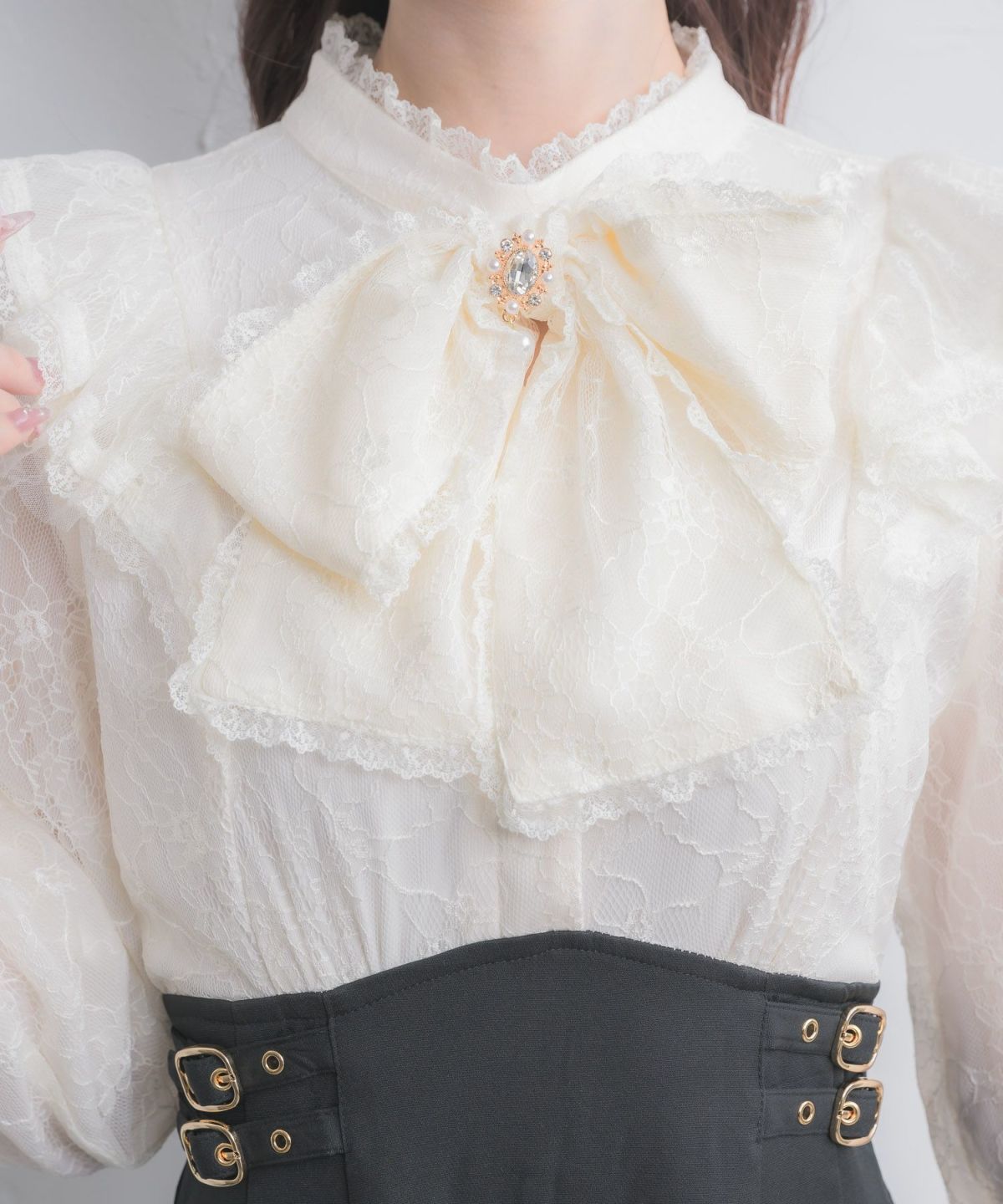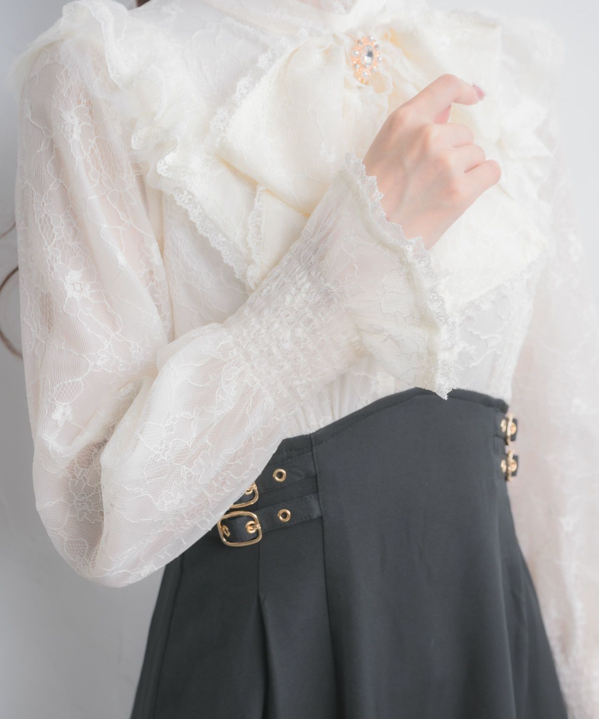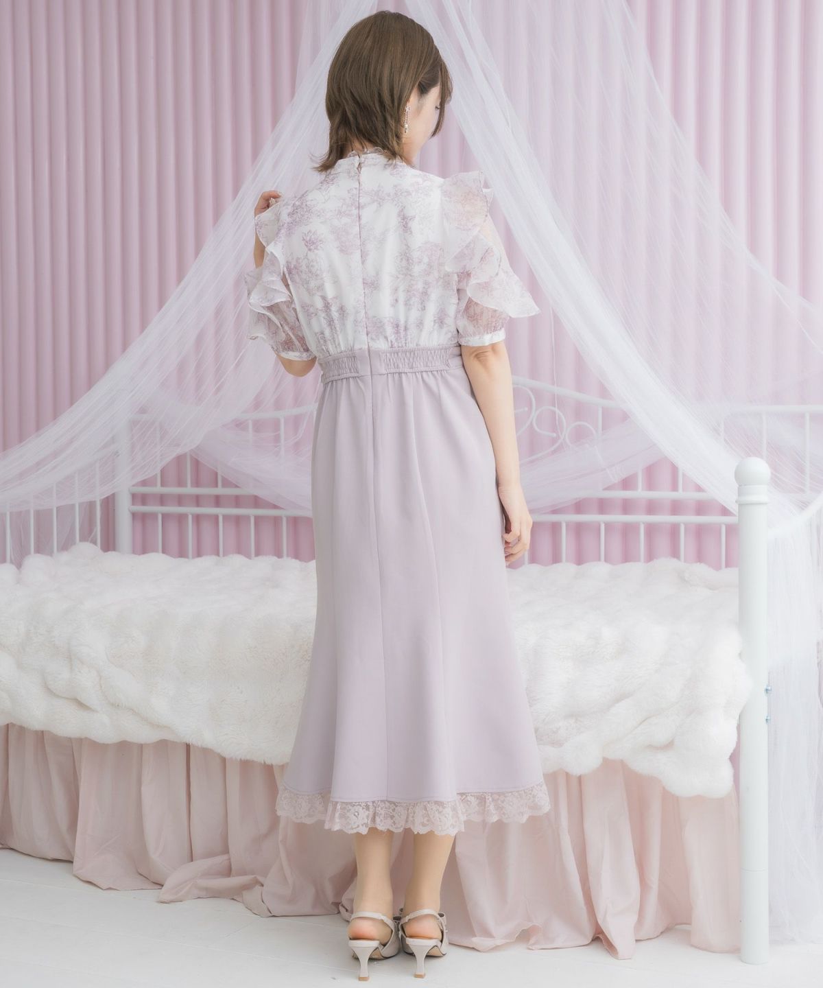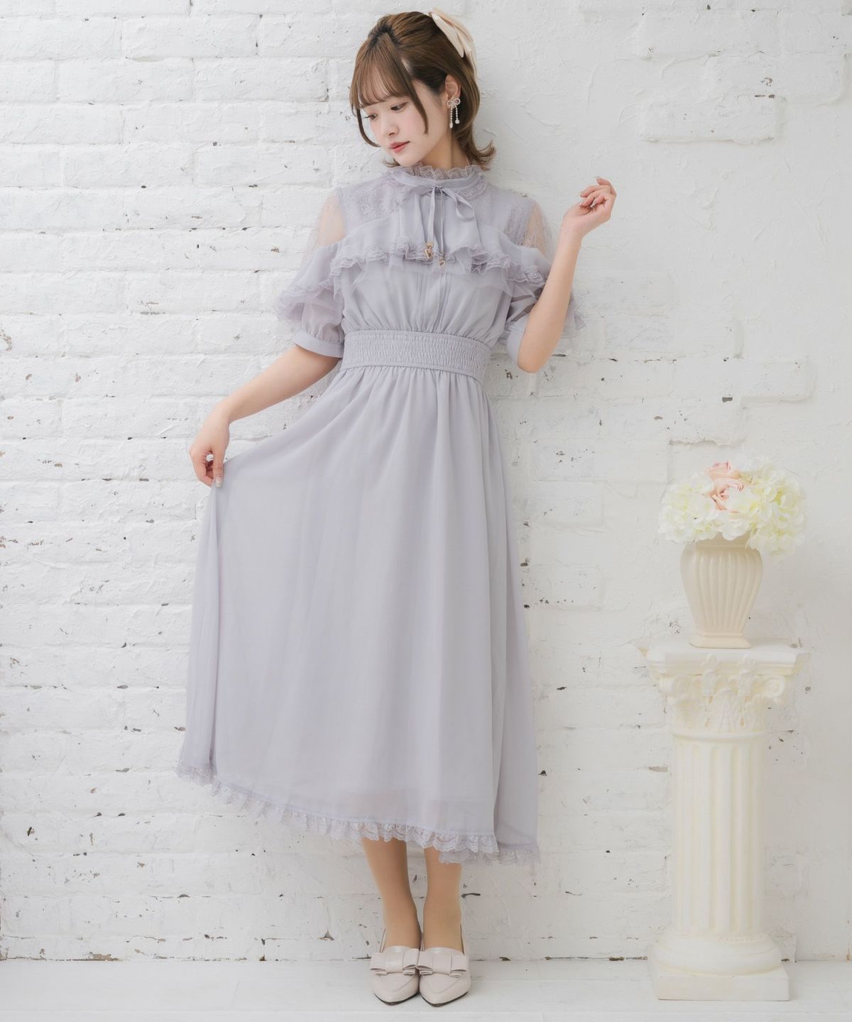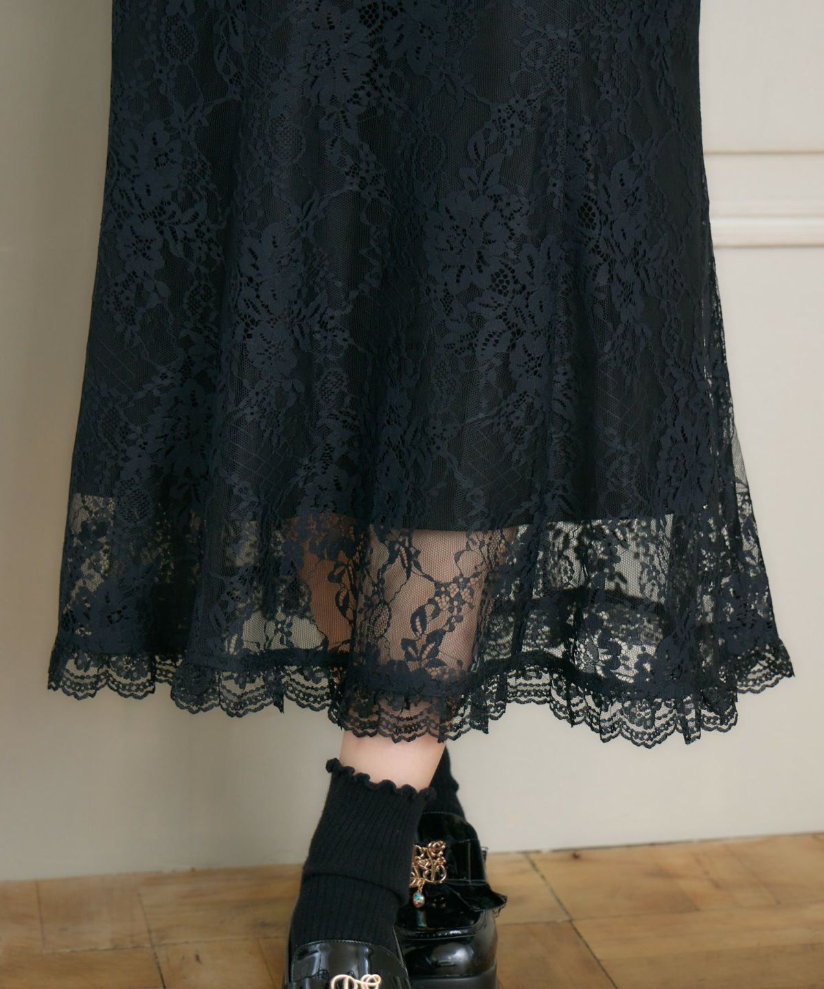 肩開き総レースワンピース