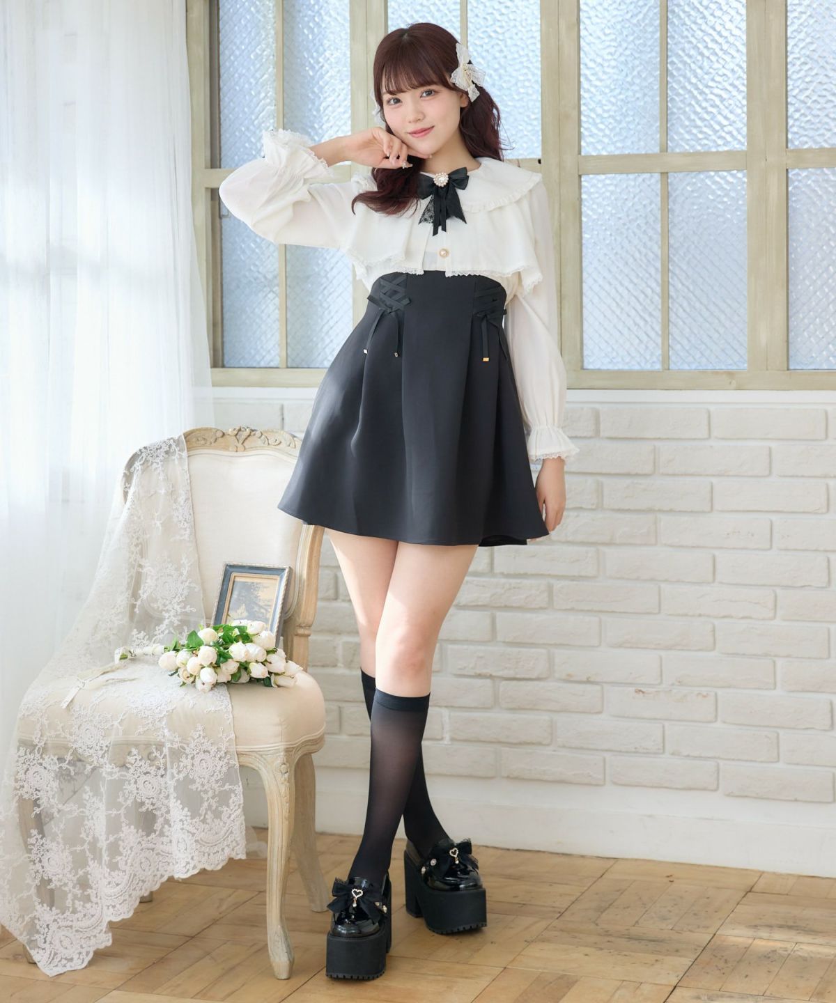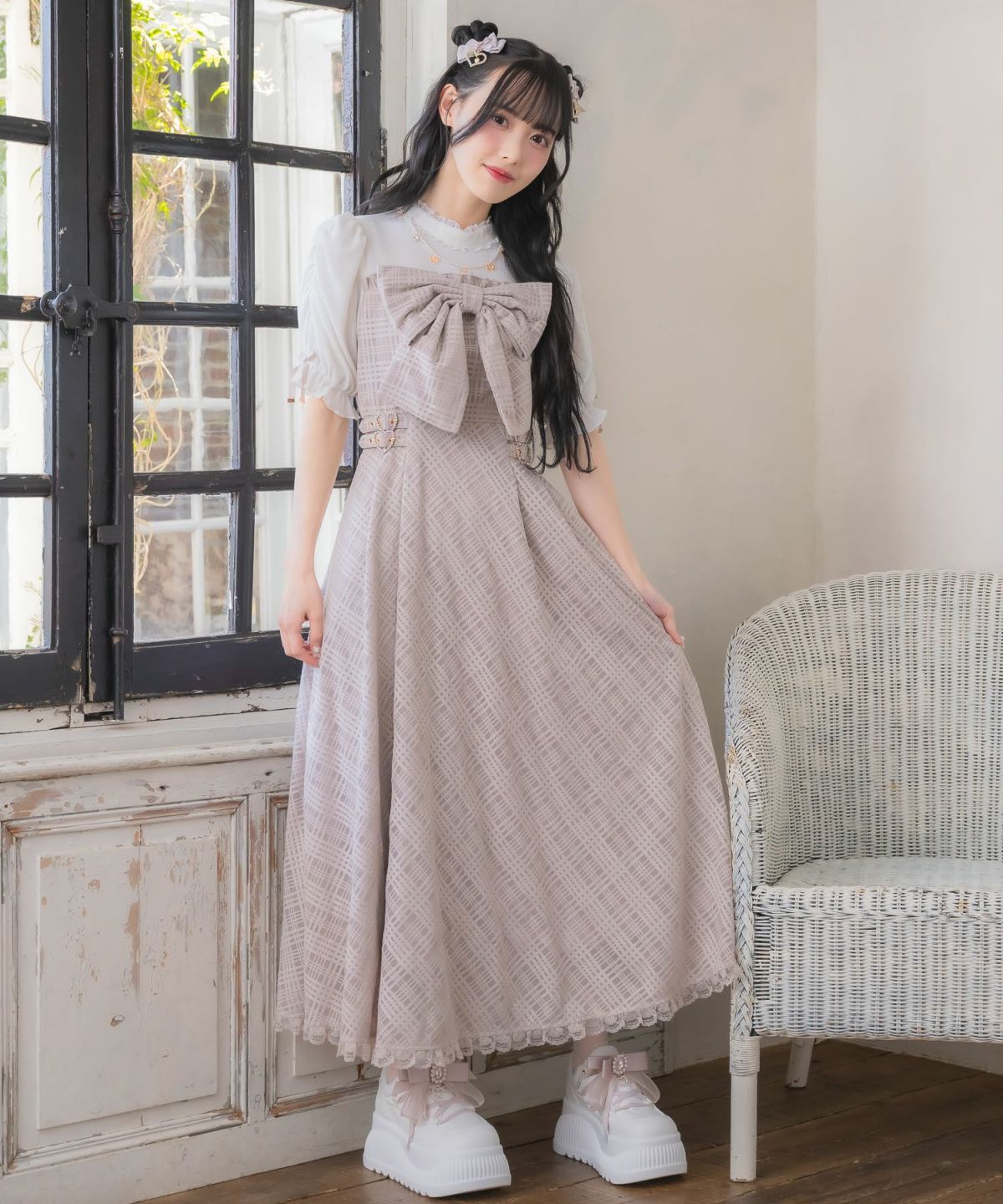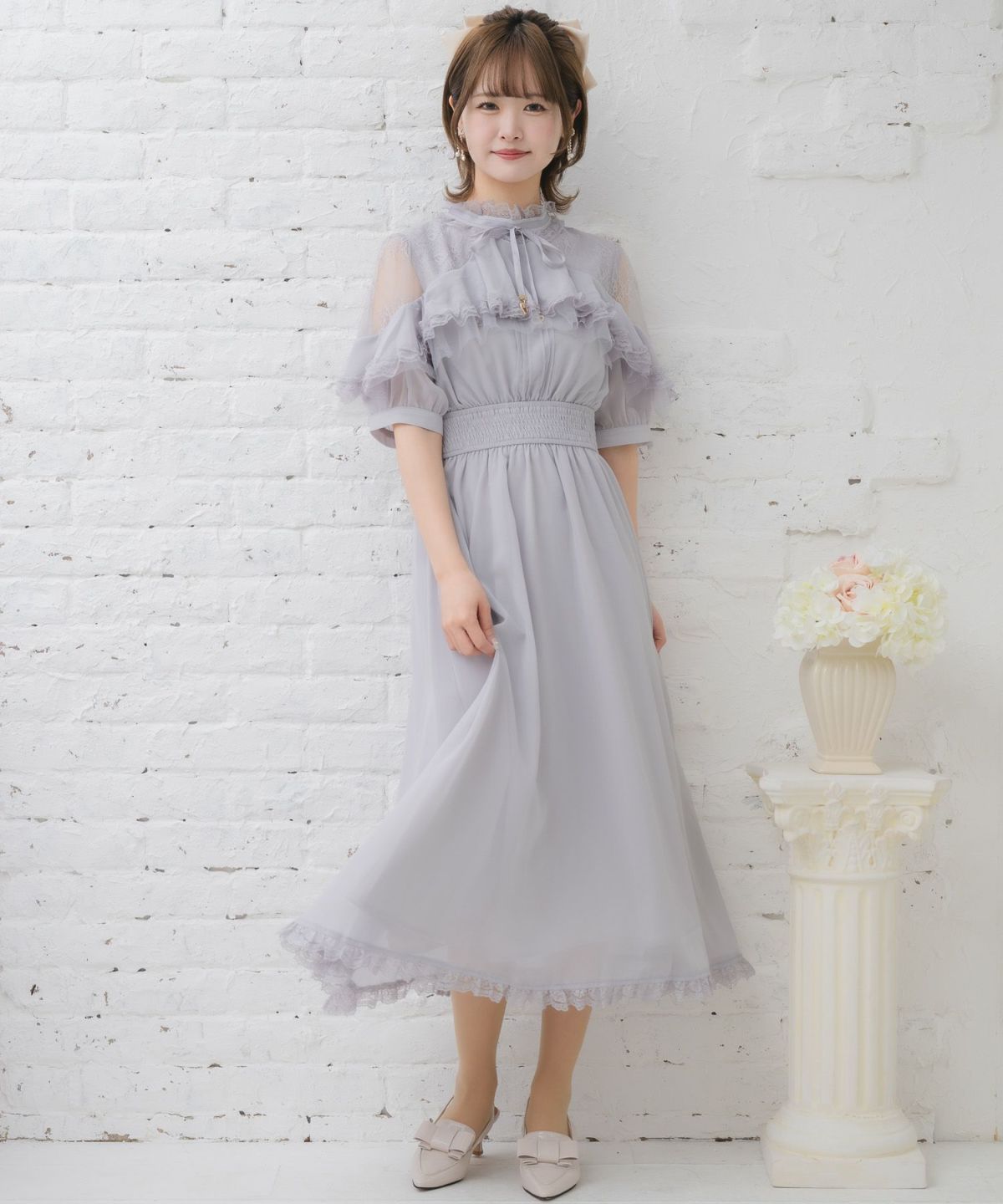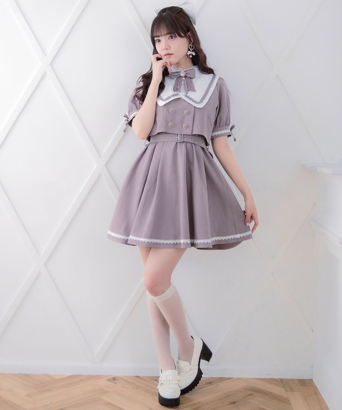 フラップリボン付レイヤードワンピース