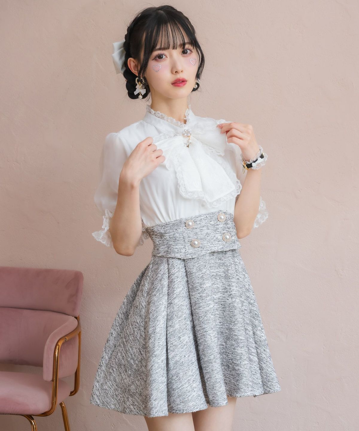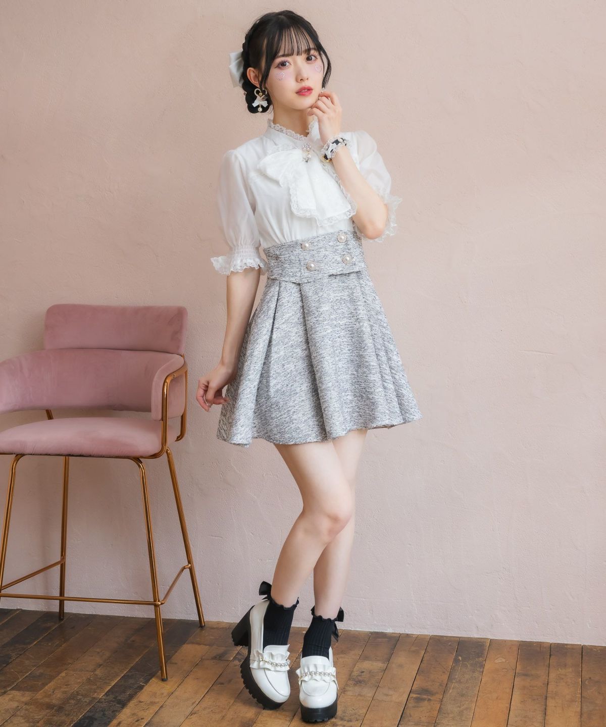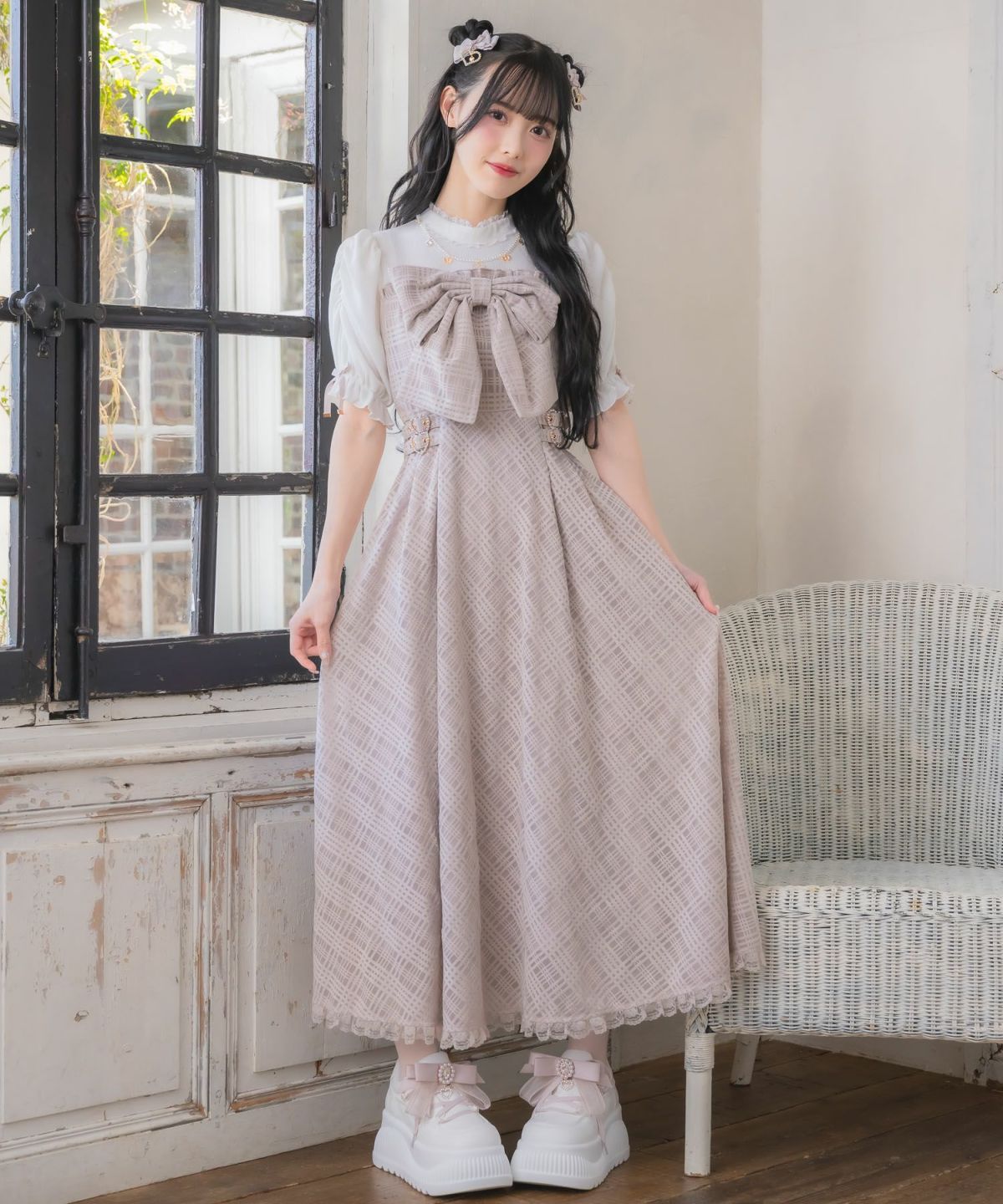 シアーチェックボウタイツイードワンピース