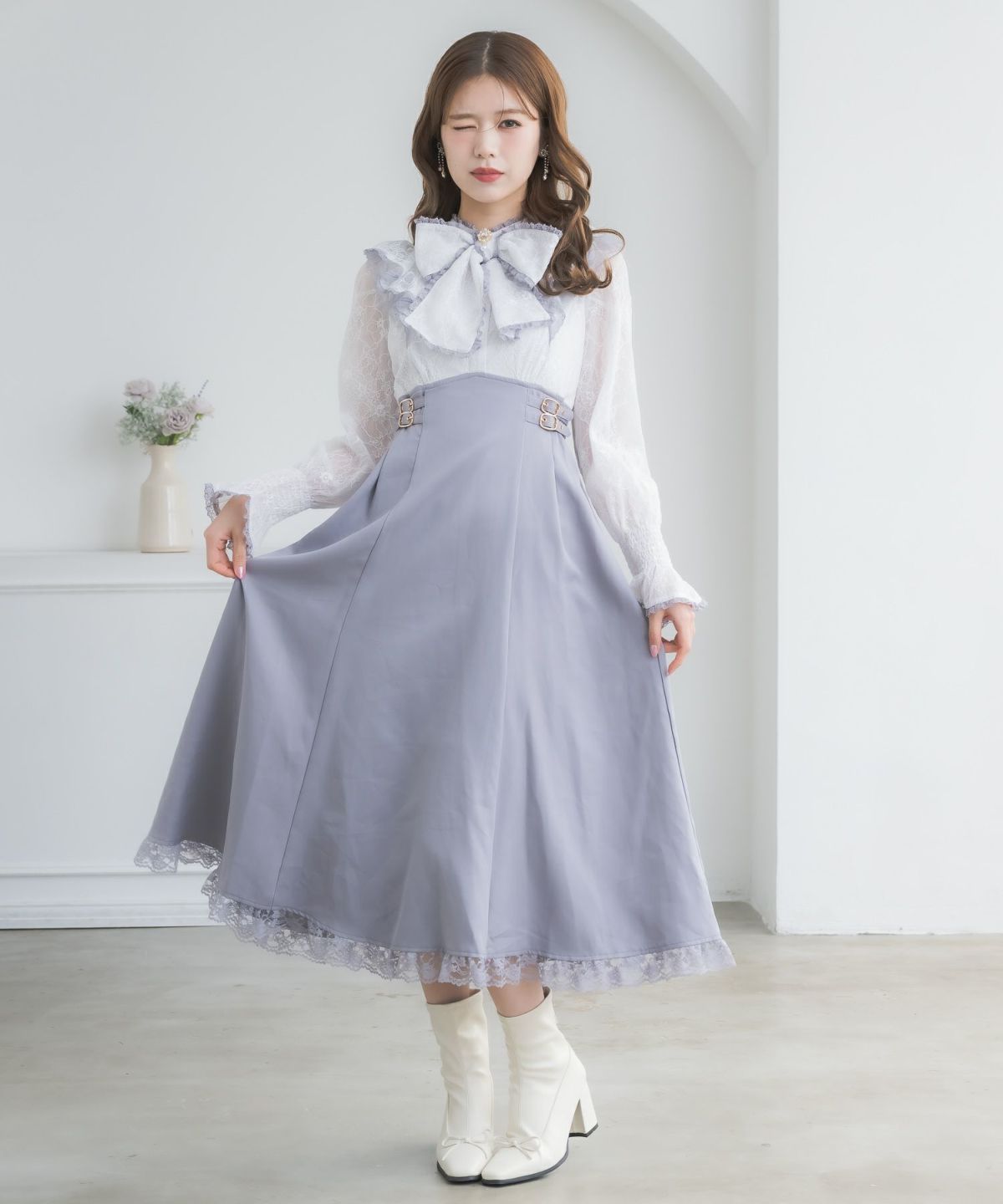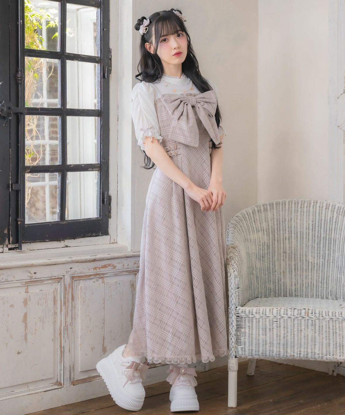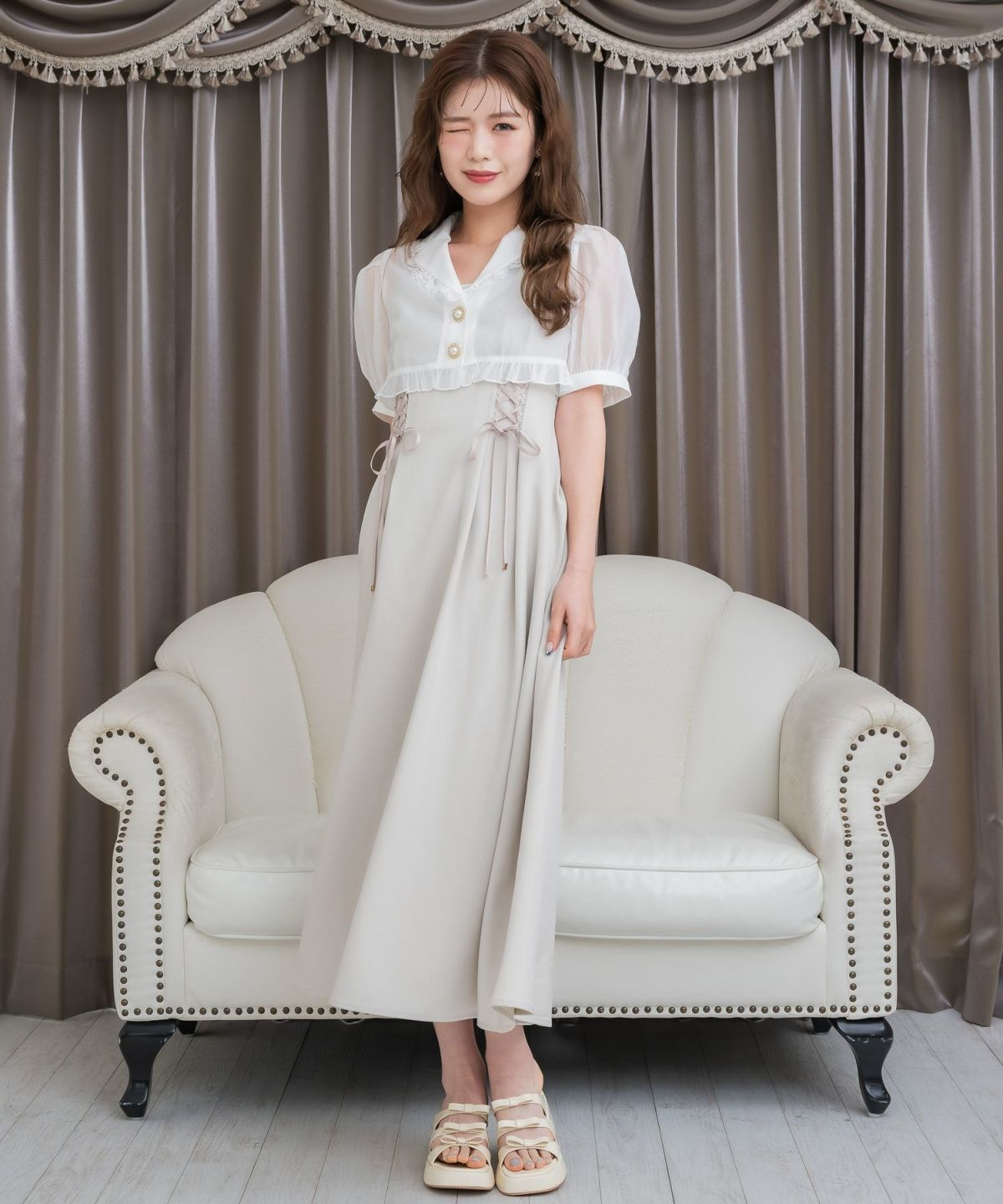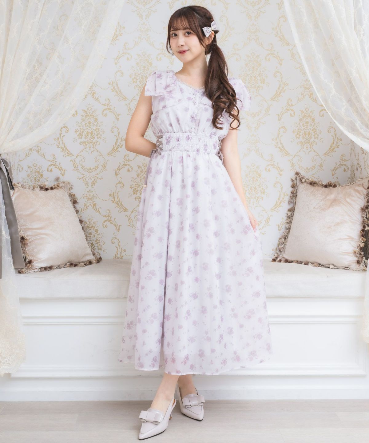 ビッグリボンポイントドッキングロングワンピース