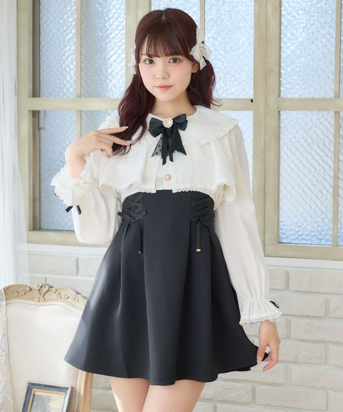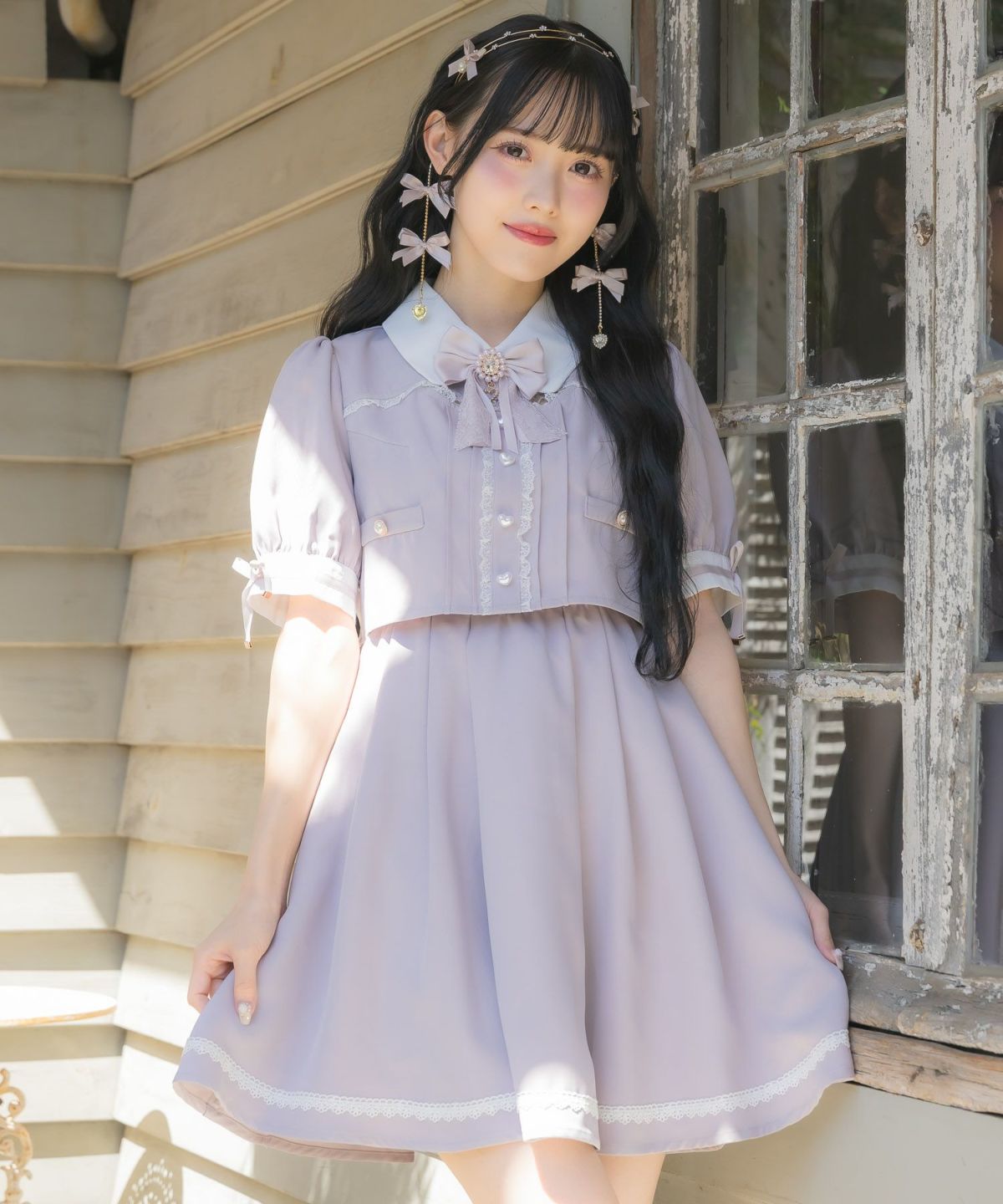 ボレロ風ダブルリボンワンピース