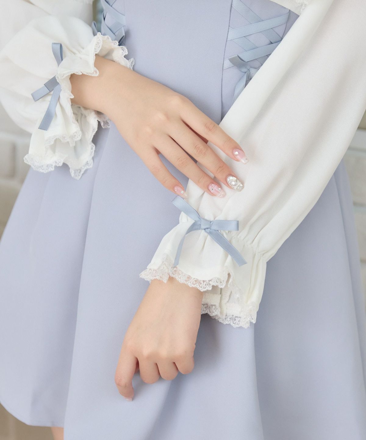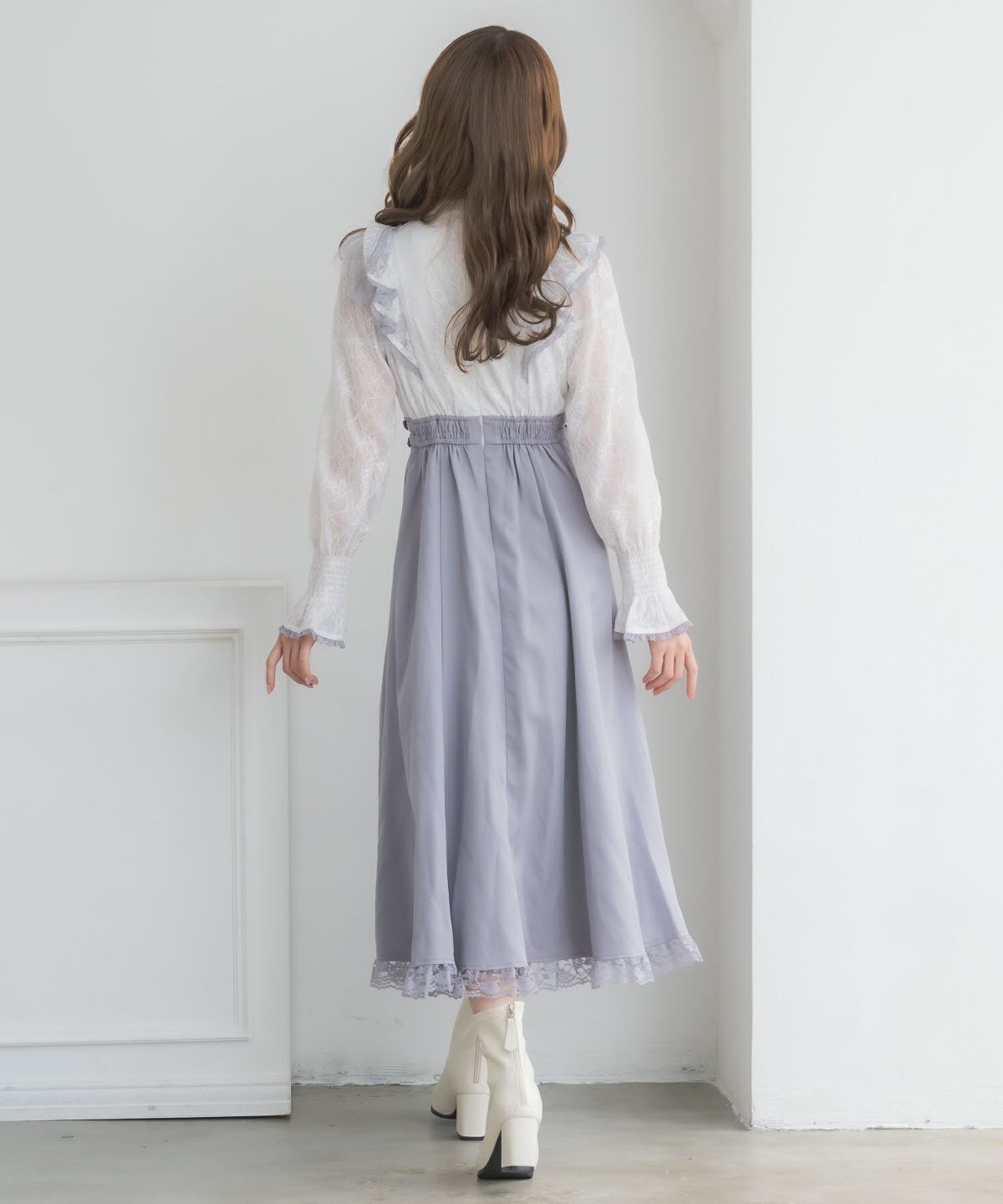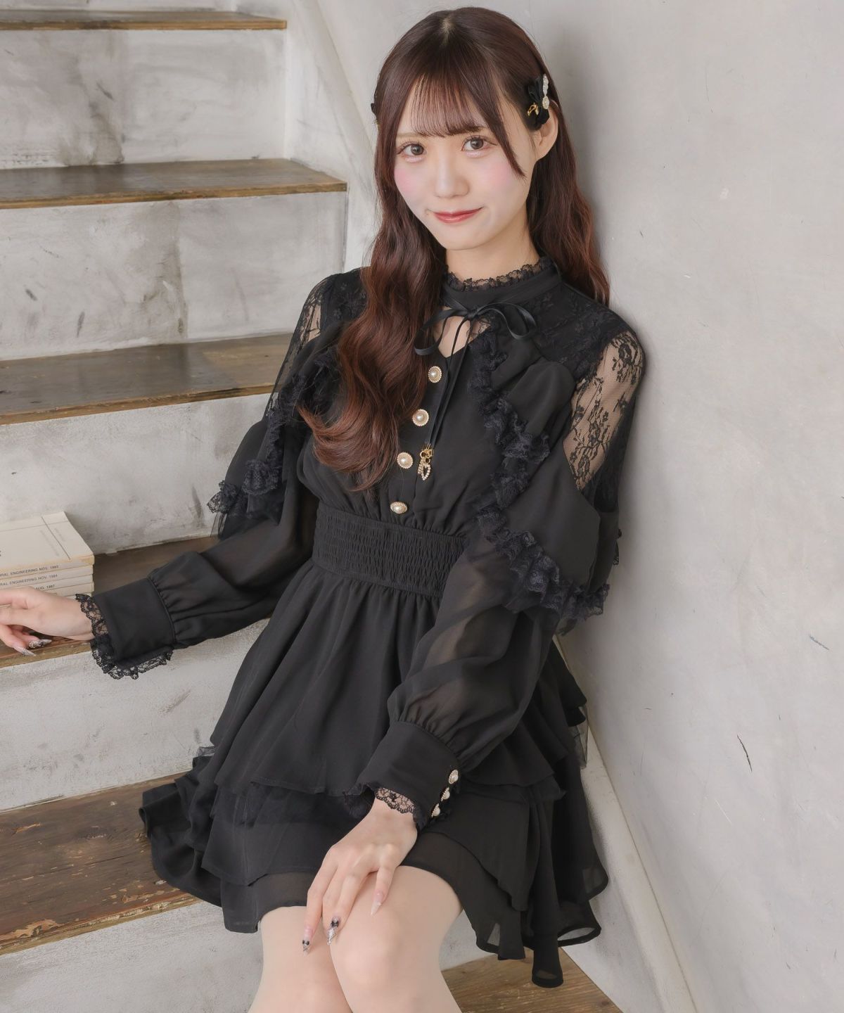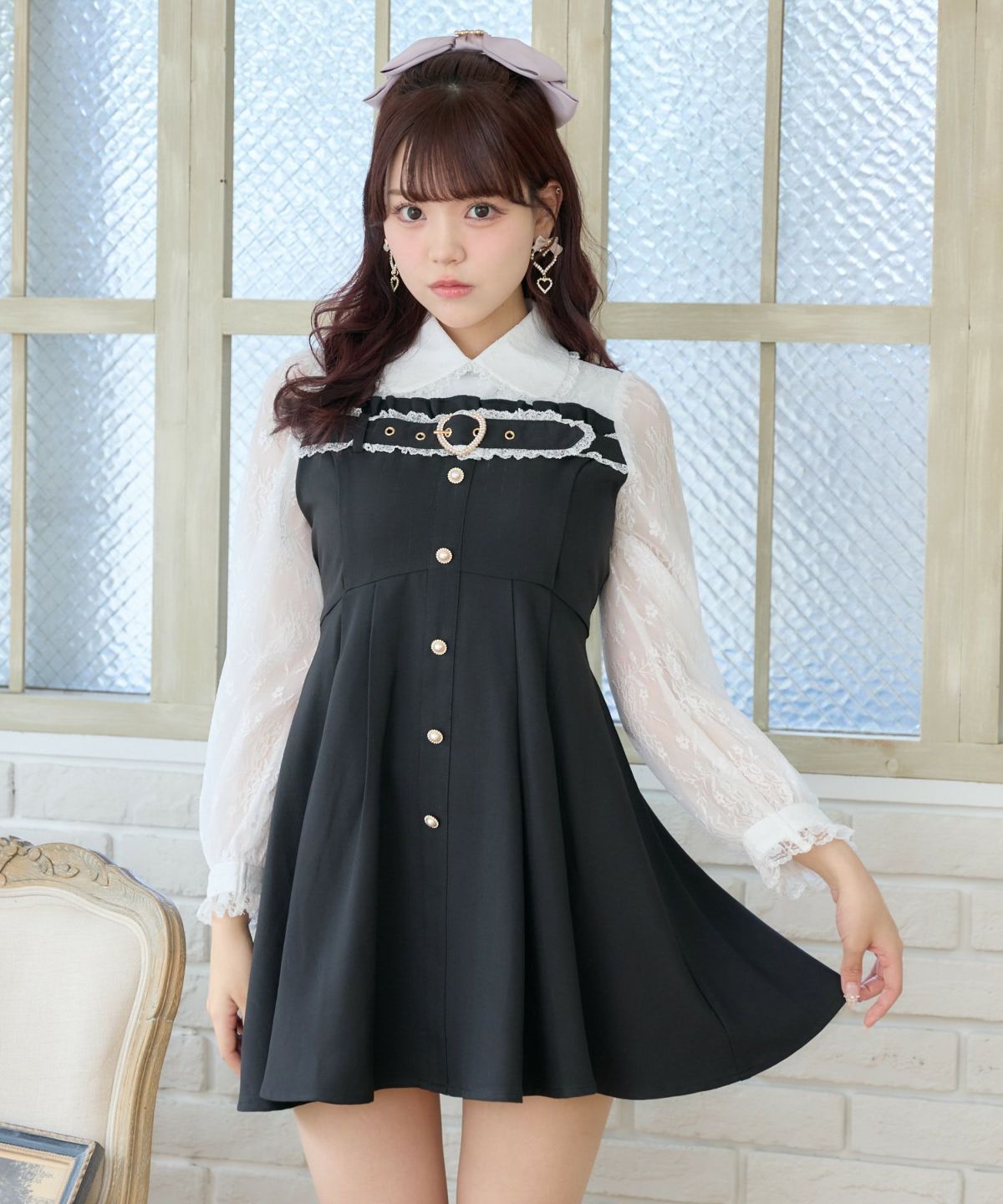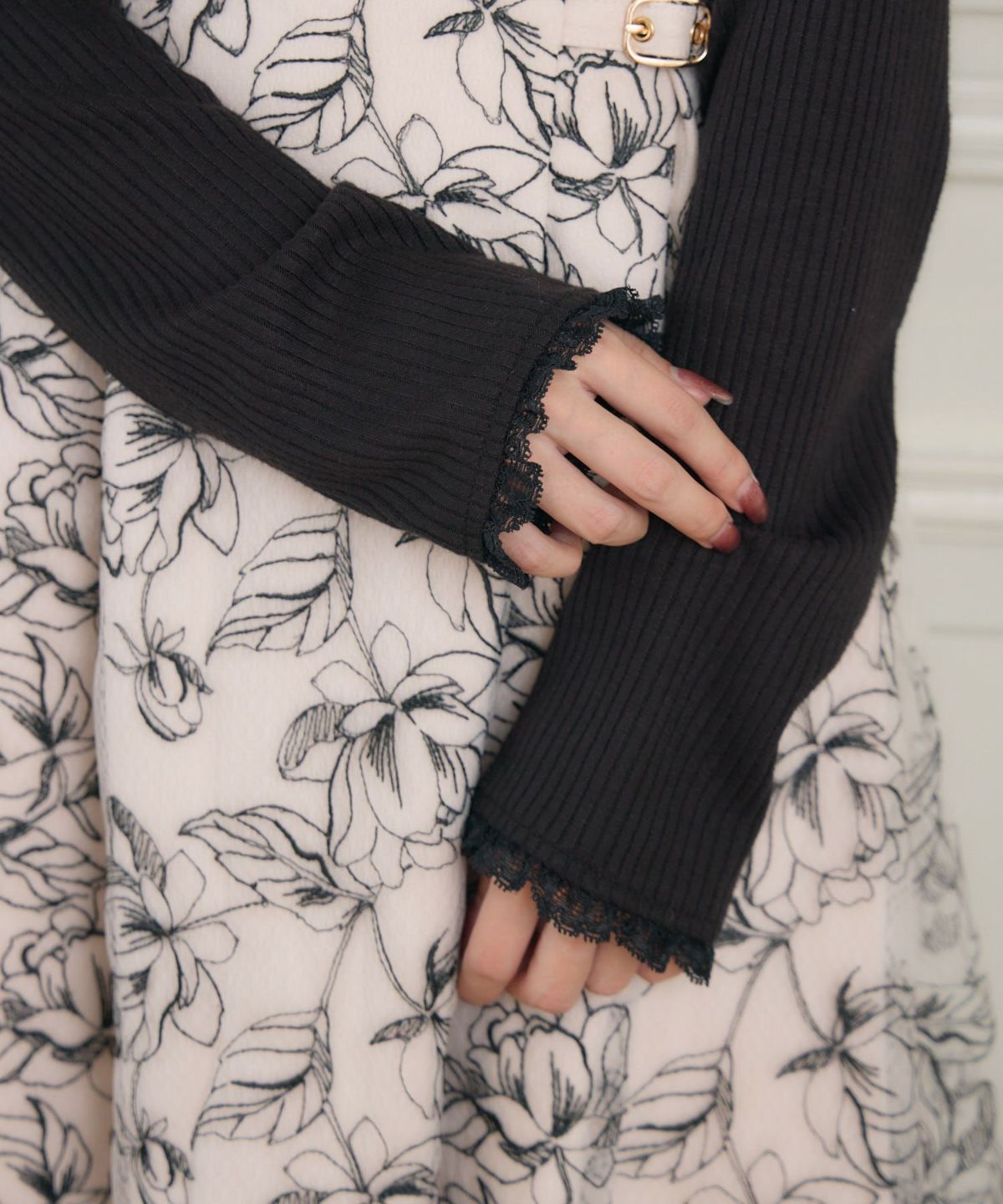 レーシードッキング長袖ワンピース