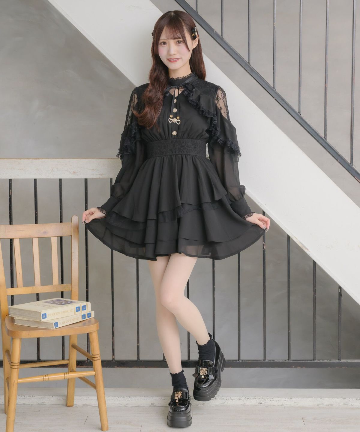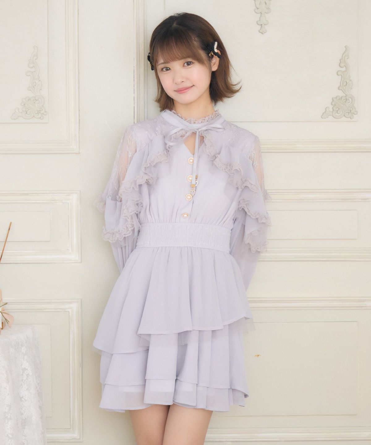 ラッフルティアードフレアミニワンピース