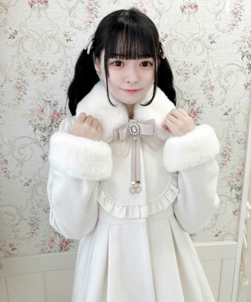 ドーリーなヨークフリルと、バックリボンが可愛いウィンターコート。ブローチにはきらきらと光るハートのビジューがON、揺れるチャームがさらに品良く映えてくれます♪衿のファーは取り外し可能◎定番カラーのブラック・ホワイト、コントラストが目立つバイカラーのピンクの3色展開です。