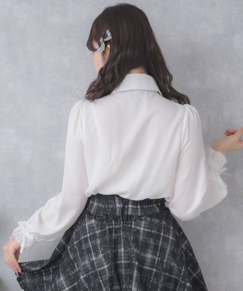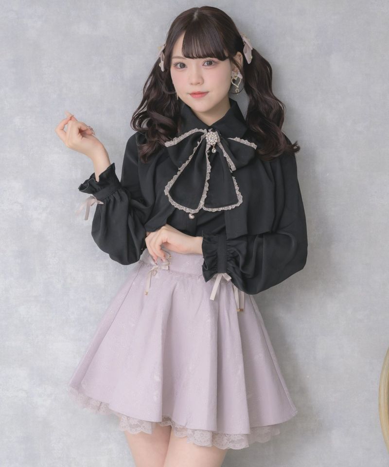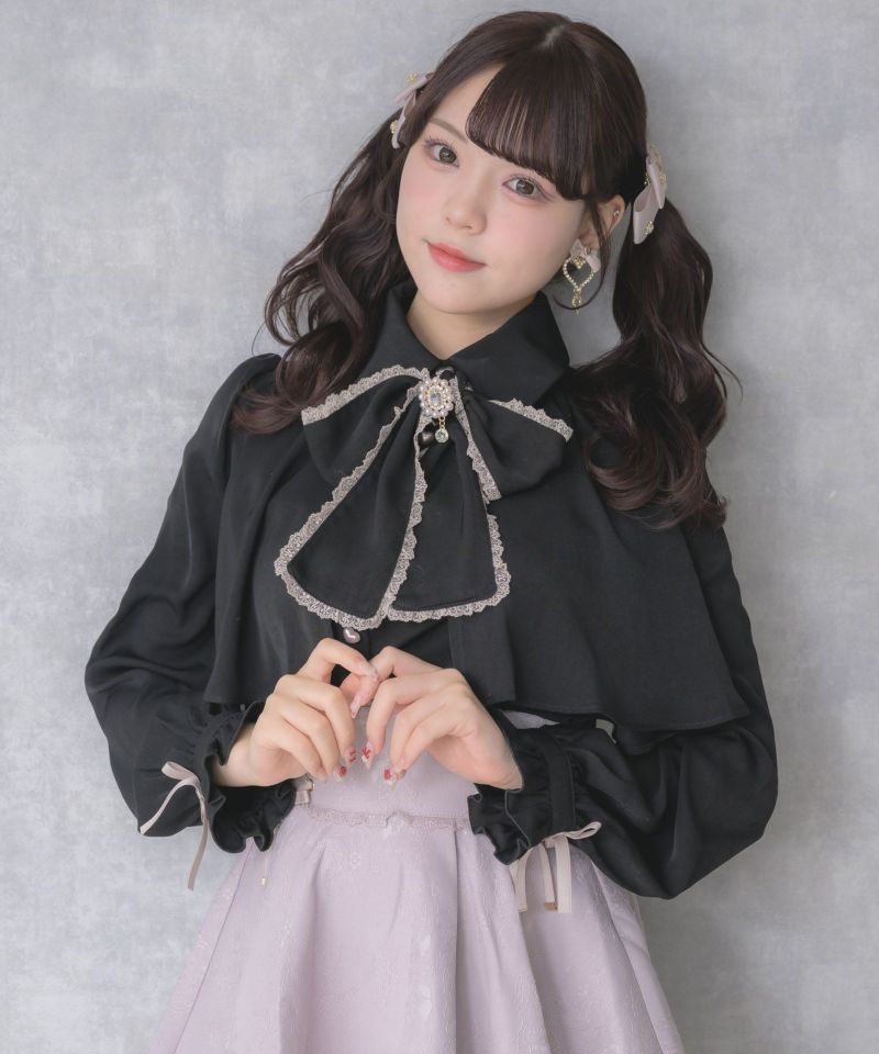 季節感アップ♡人気デザインが長袖になって再登場!首元のボウタイリボンが華やかさと可愛らしさをプラス。フレア感のあるケープデザインや艶めくハート釦で、とことん女の子らしい雰囲気に。レース配色がアクセントになった、一枚で華やぐブラウスです。 ※照明の関係で実際のお色味と若干異なる場合がございます。 ※表示のサイズ感と実物は若干異なる場合がございますので、予めご了承ください。 モデル身長:163cm