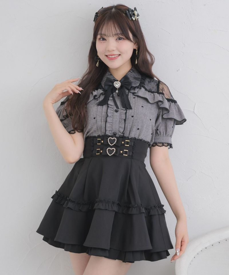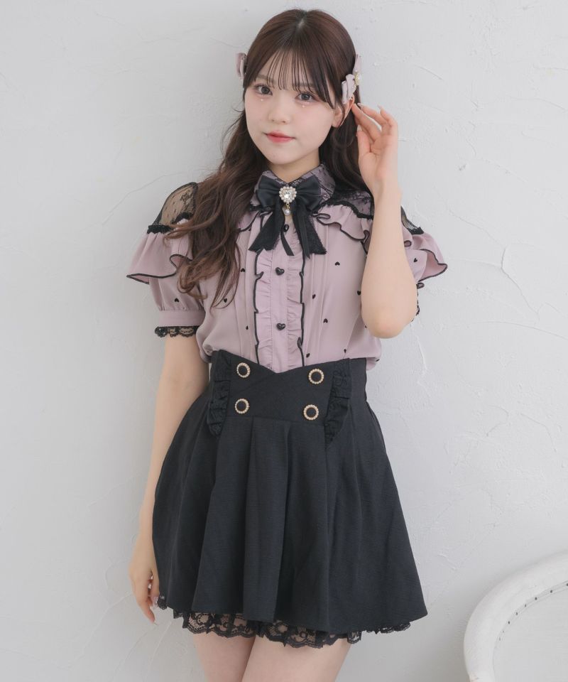 ハートフロッキーが可愛いブラウスの半袖バーションがお目見えです♡コーデの主役になるマテリアルがロマンティックな雰囲気をON。程よくレーシーなショルダーデザインがヘルシーな肌見せを叶えます。コロンとしたハートの釦が更にガーリー要素をプラス♪ ※照明の関係で実際のお色味と若干異なる場合がございます。 ※表示のサイズ感と実物は若干異なる場合がございますので、予めご了承ください。 モデル身長ホワイト159cm/ピンク・グレー163cm