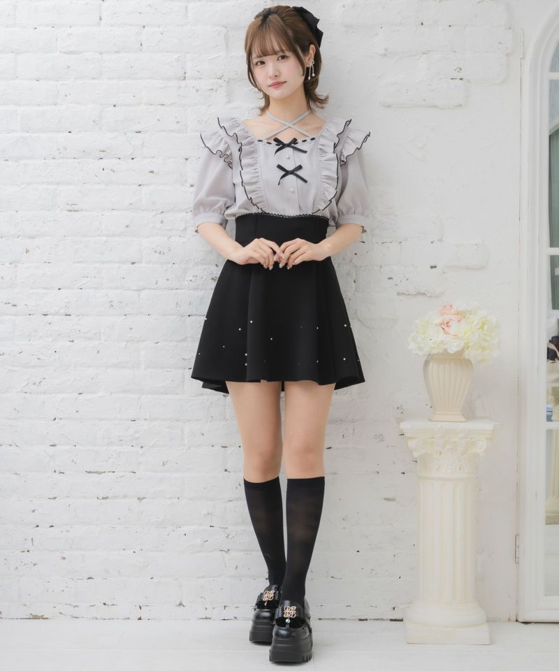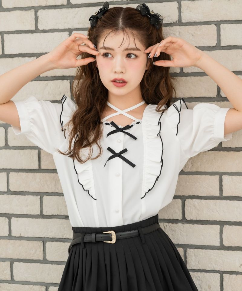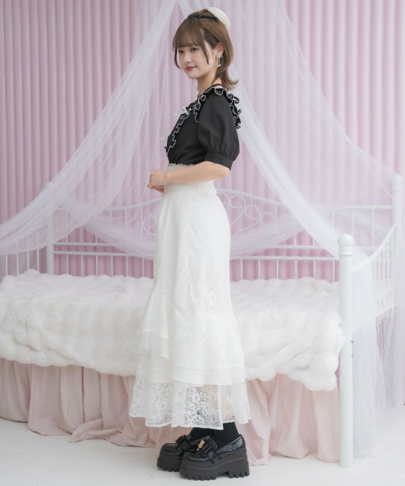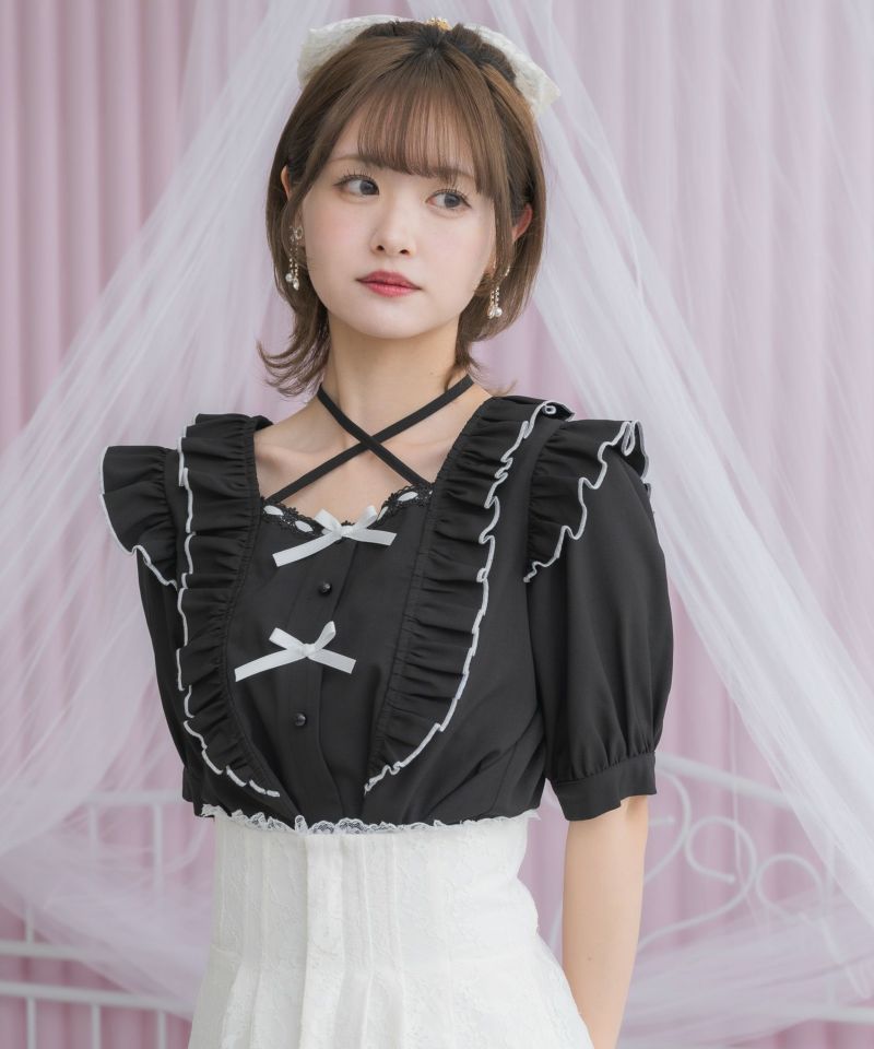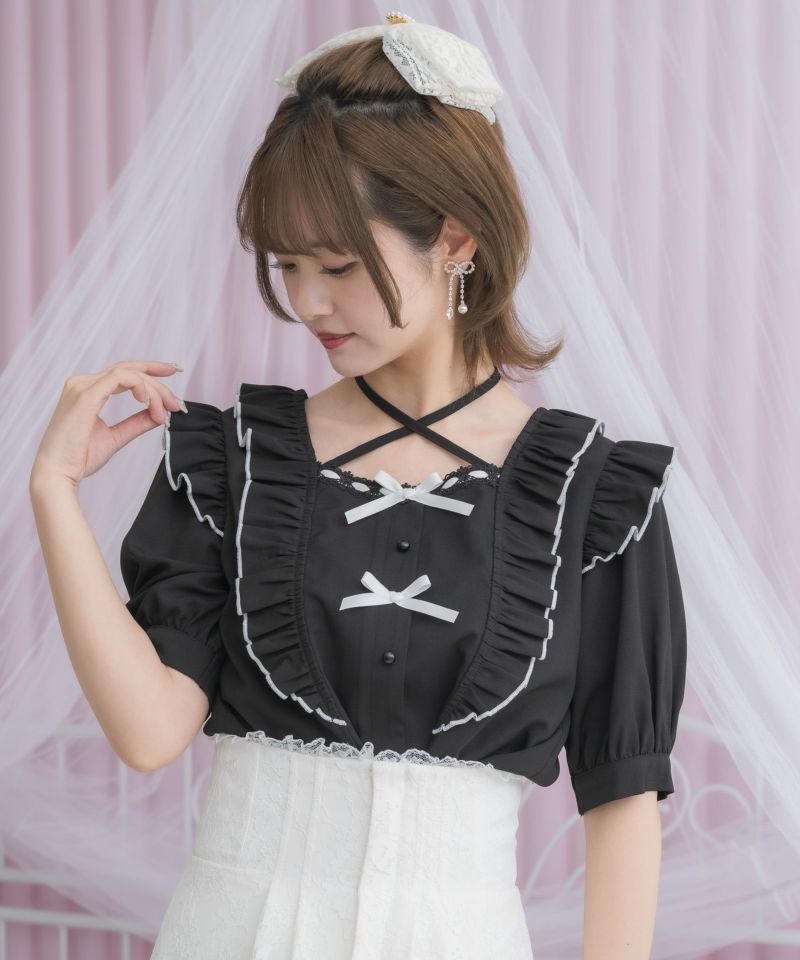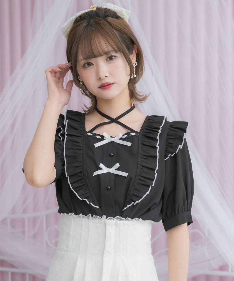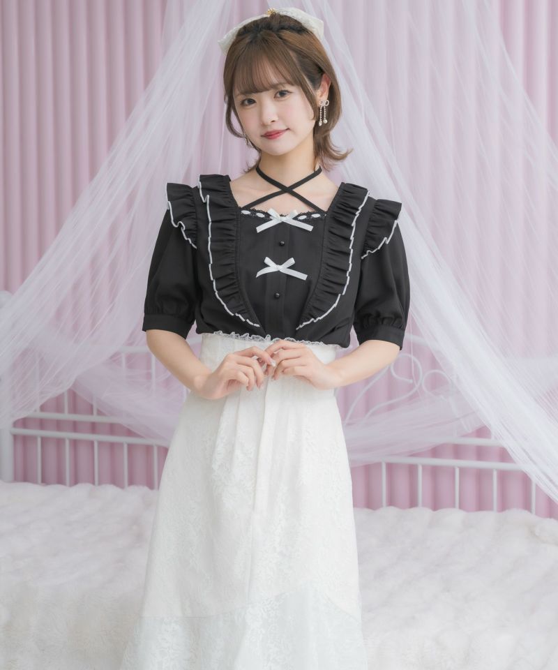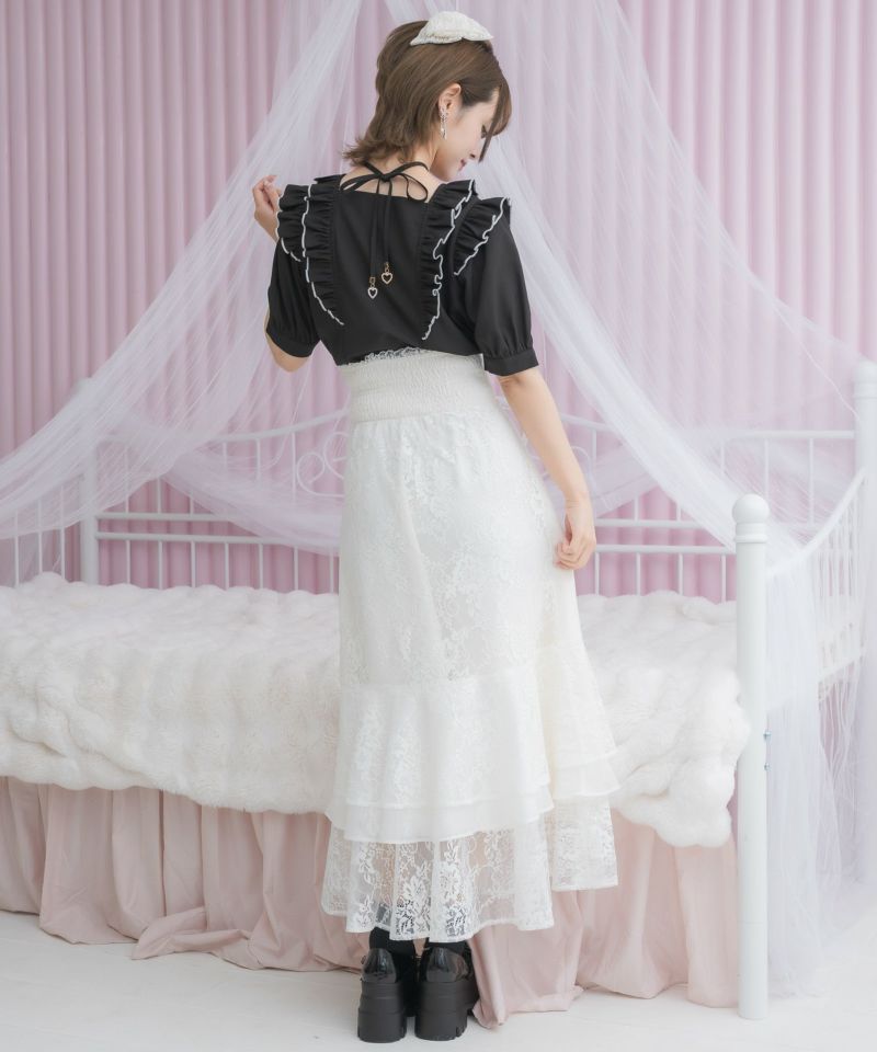 後ろ姿まで映えるハートのチャームがキャッチーなブラウスのお目見え♪ガーリーさん必見の甘さをアピールしてくれるハシゴレースと、バイカラー配色がアクセント◎ナチュラルな雰囲気感と、落ち着いたトーンのラインナップで大人っぽく仕上げてくれます。 ※照明の関係で実際のお色味と若干異なる場合がございます。 ※表示のサイズ感と実物は若干異なる場合がございますので、予めご了承ください。 モデル身長ブラック・パープル160cm/ホワイト161cm