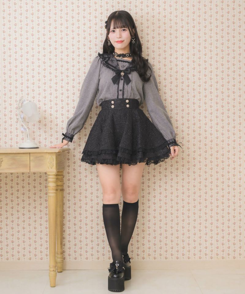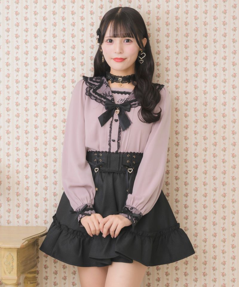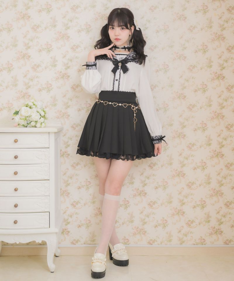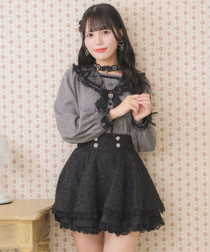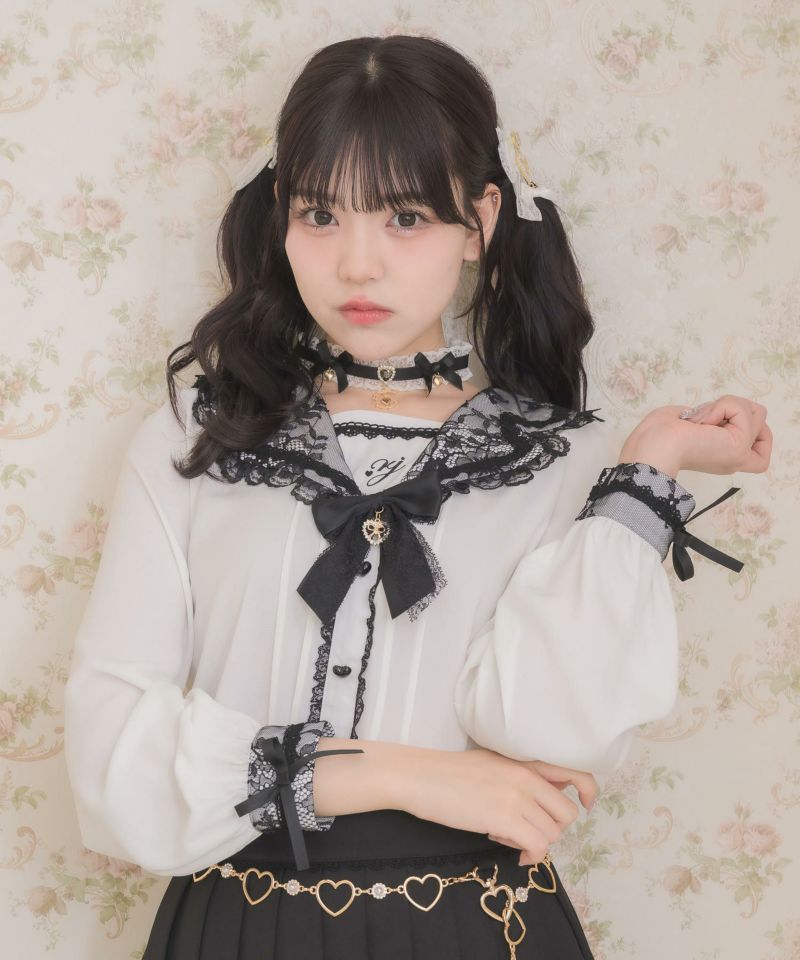 School likeなセーラーカラー♡レース配色でさらにお顔周り&手元を上品可愛くアップデート。胸あて部分にはポイント刺繍が施され、ガーリー度をグッと高めてくれます♪清楚な雰囲気をONするとともに、甘いディテールがたっぷりとつまって、どこから見てもキュートに映える逸品です。