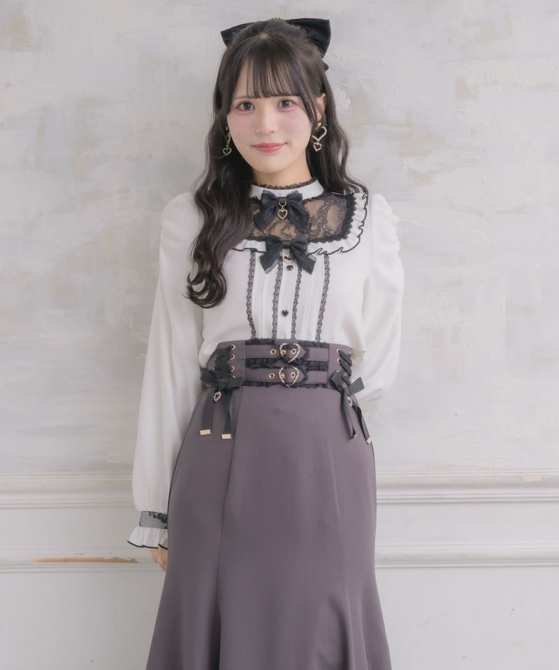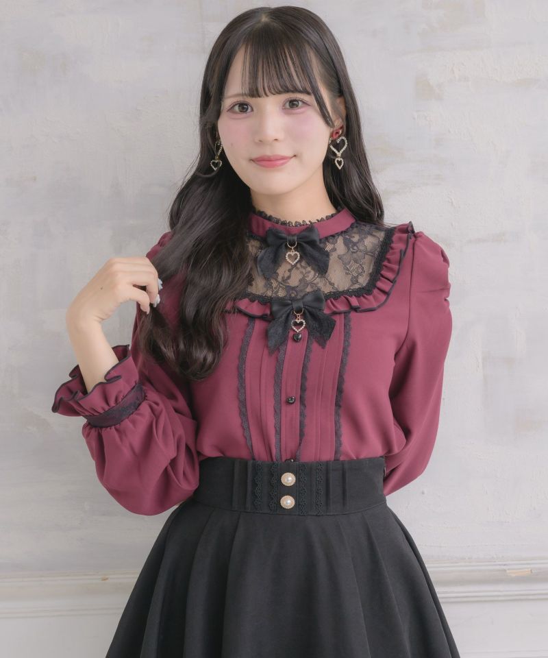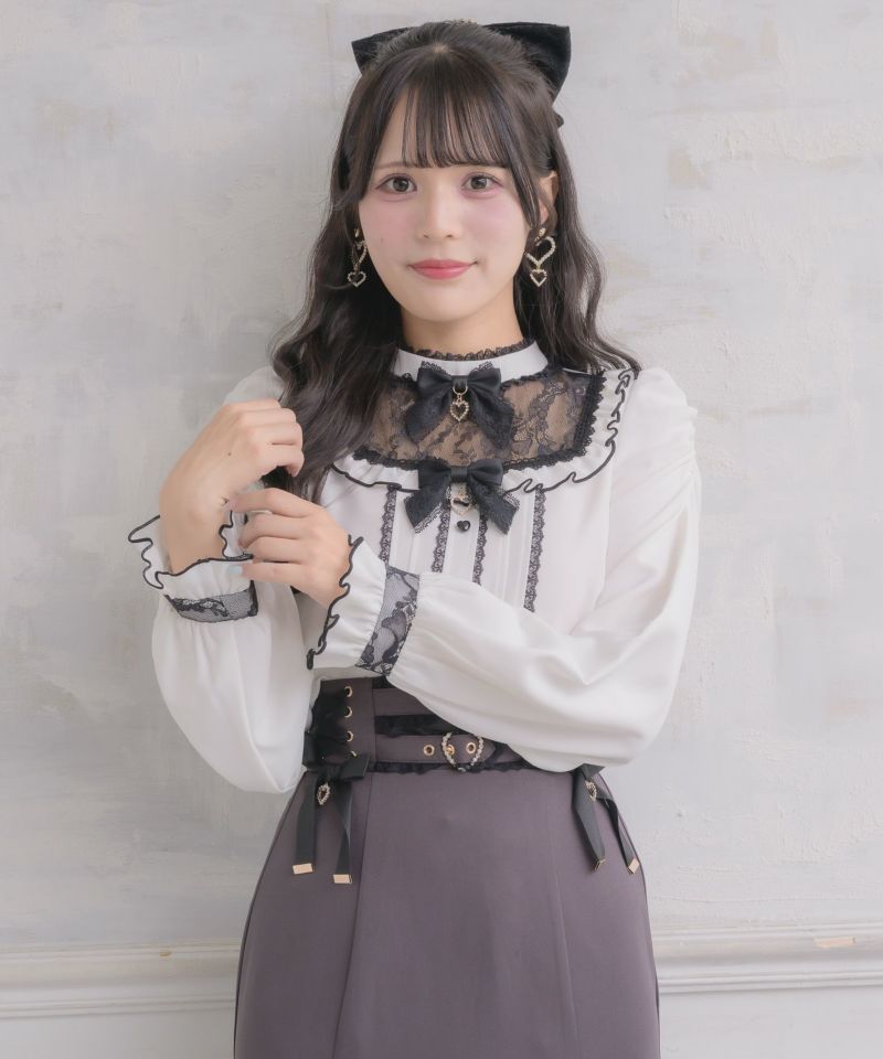 ダブルリボンと繊細なレース使いが目を惹くブラウスのお目見えです♡配色デザインが程よい甘さを演出し、フリル袖やハイネックディテールが“キレイめ感”をプラス。シーズン好みなボルドーカラーを添えて3色のラインナップです。