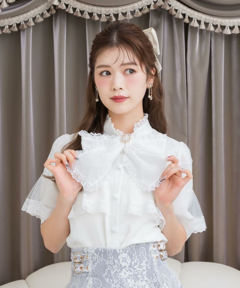 夏の装いにムードチェンジをしたケープブラウス。チュールで涼しげ&洗練された印象、華やかなボウタイリボンが上品可愛く着飾ります♡ベーシックなワンカラーなのでコーデに合わせやすく、ワードローブの強い味方になってくれること間違いなし◎ ※照明の関係で実際のお色味と若干異なる場合がございます。 ※表示のサイズ感と実物は若干異なる場合がございますので、予めご了承ください。 モデル身長ブラック・ピンク160cm/ホワイト161cm