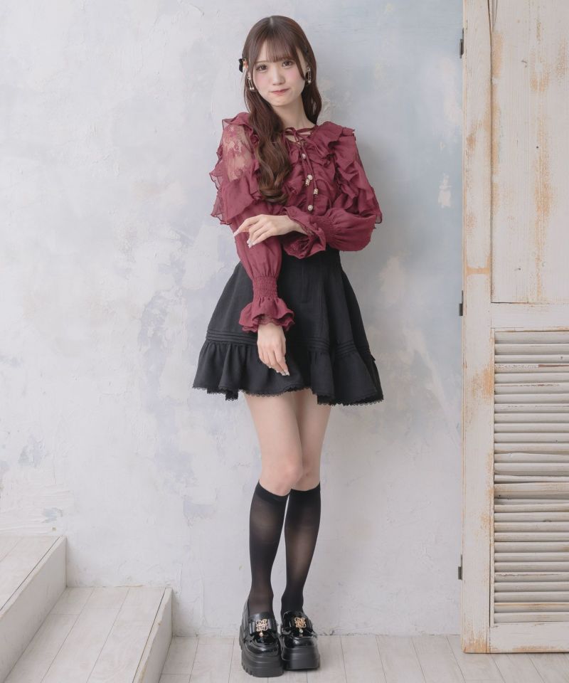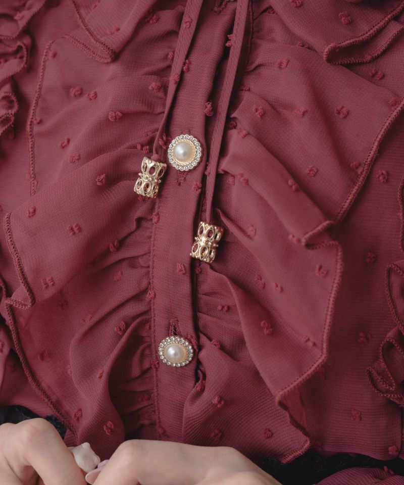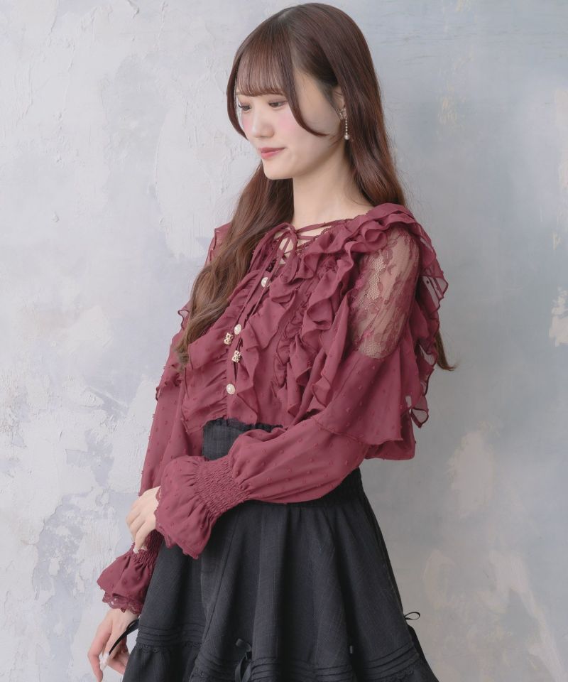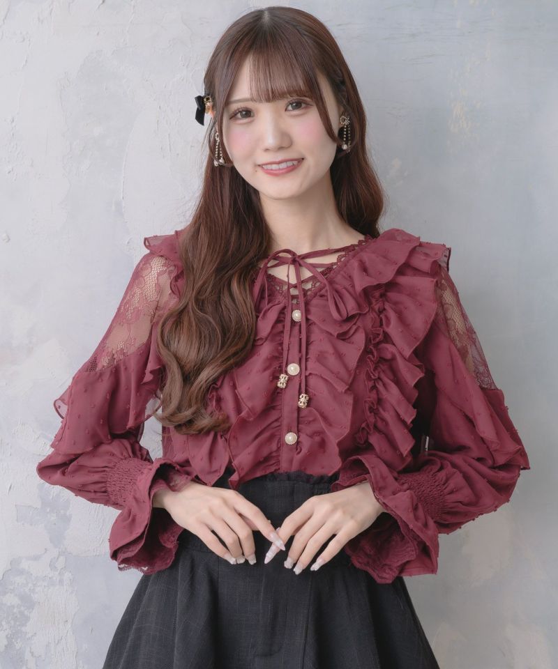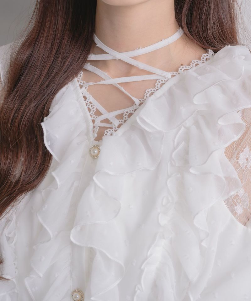 クロスネック×フリルで魅せる万能ガーリーブラウス。ドビードットが視線を惹きつけるさりげないアクセントに♪ホワイトのみ無地もラインナップ、合わせるアイテムを選ばずきちんと感もあるので、デイリー使いからオフィスカジュアルまで幅広く活躍します。クロスネックのリボンは前後自由に結べて、表情の変化も◎
