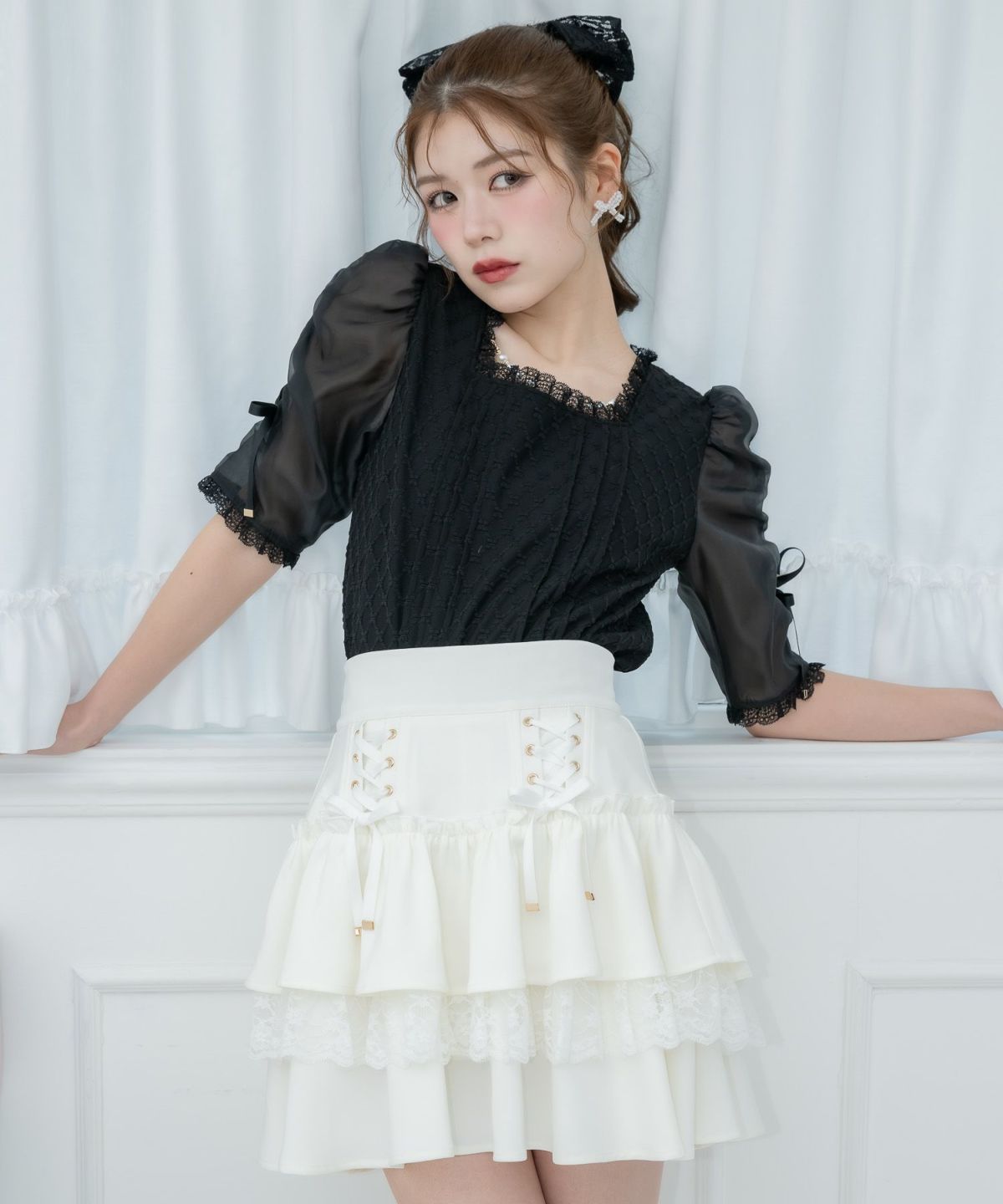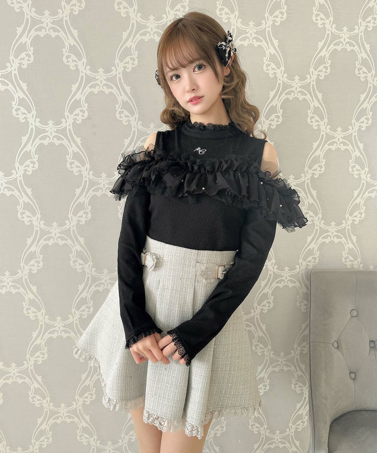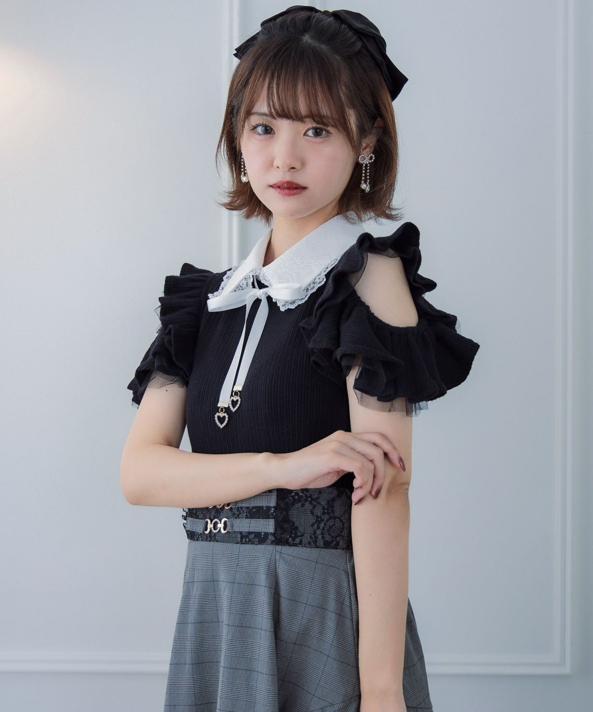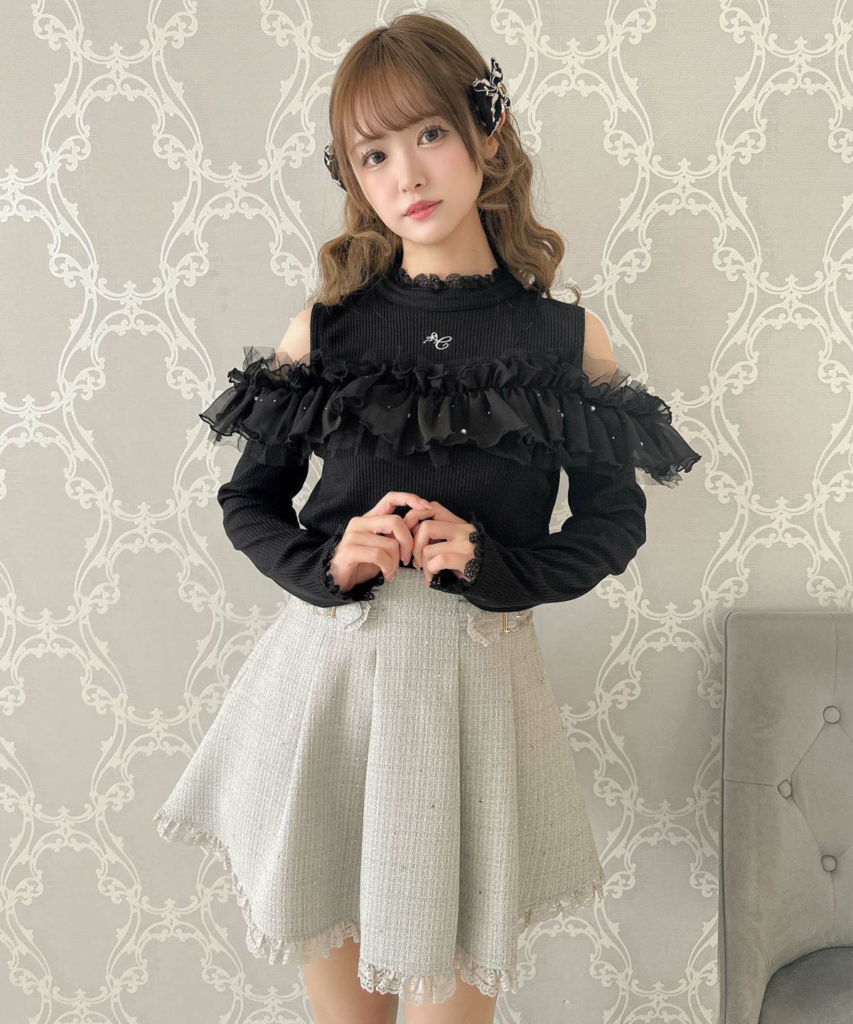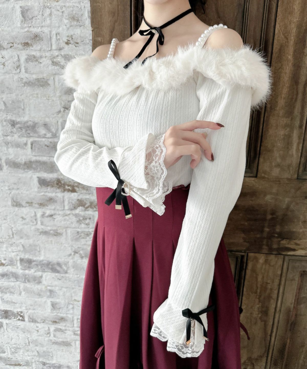 【30%off】 チュールリボンビスチェ×デコルテ開きトップスセット